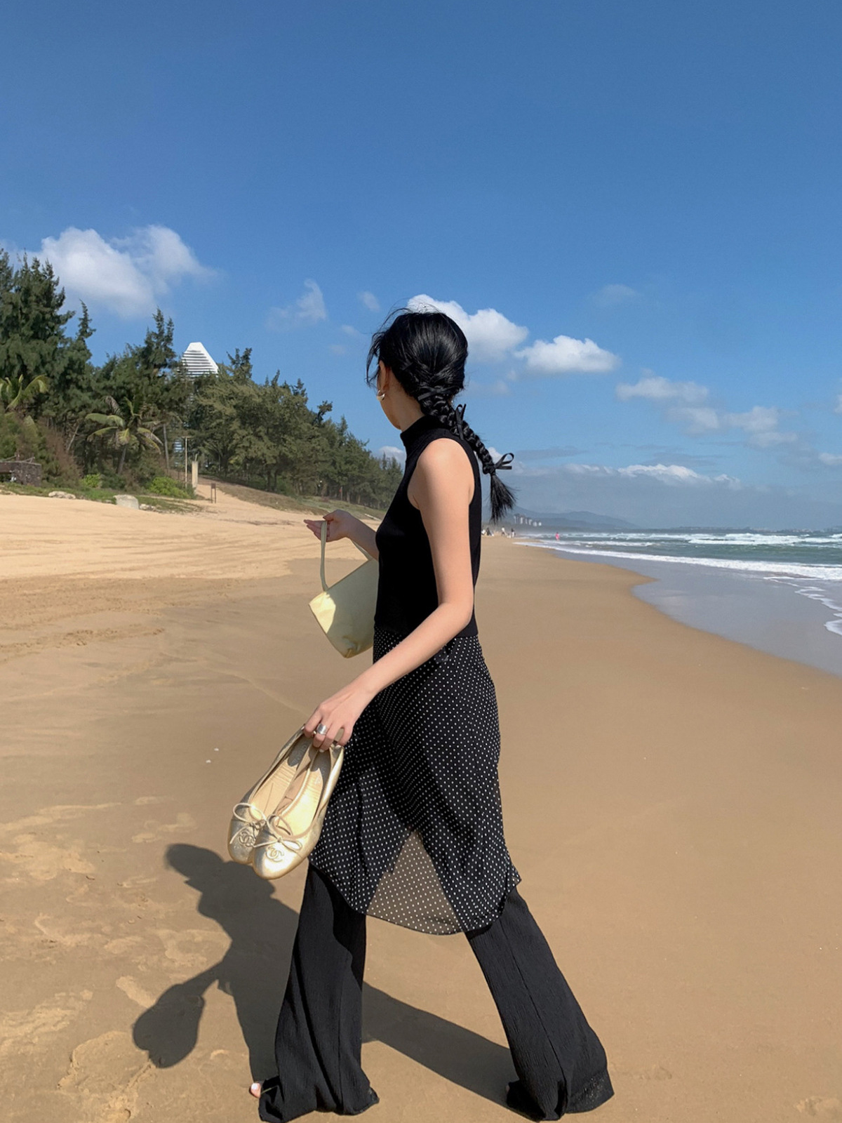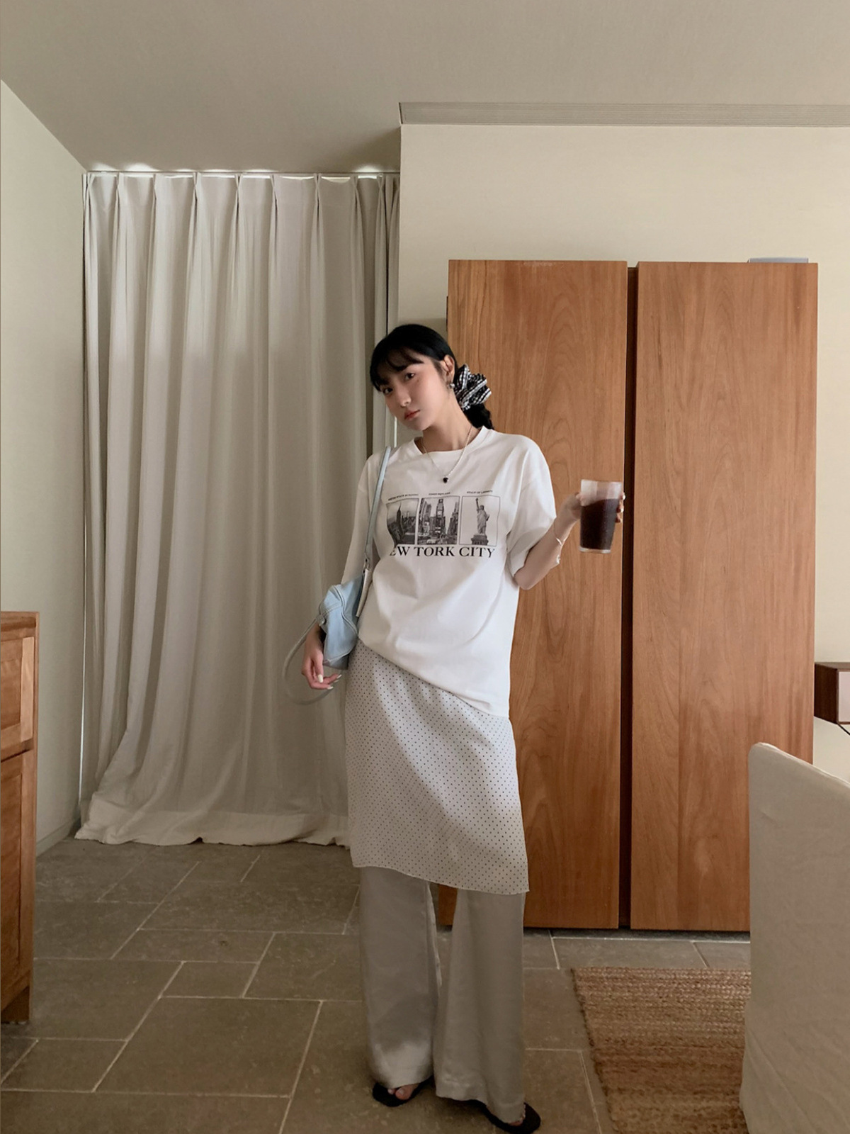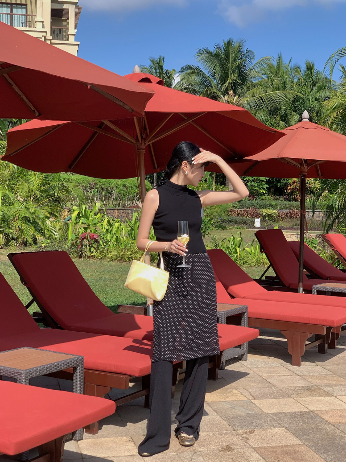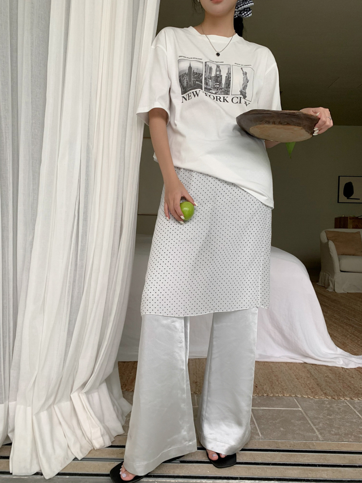 【Без возможности возврата или обмена】Юбка миди в горошек в стиле Miu с прислойной прозрачной шифоновой юбкой для женщин, весенняя прямая юбка для стройного силуэта