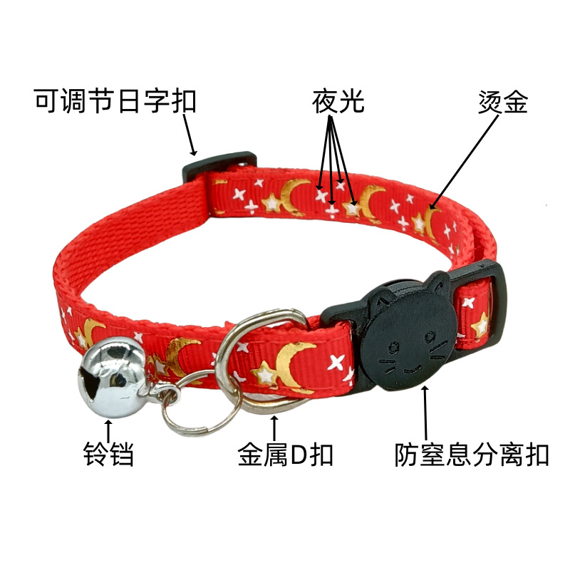 Домашние животные позолоченные лунные звезды кошачий ошейник отделенный светящийся защитный пряжка кошачий ошейник для домашних животных оптом
