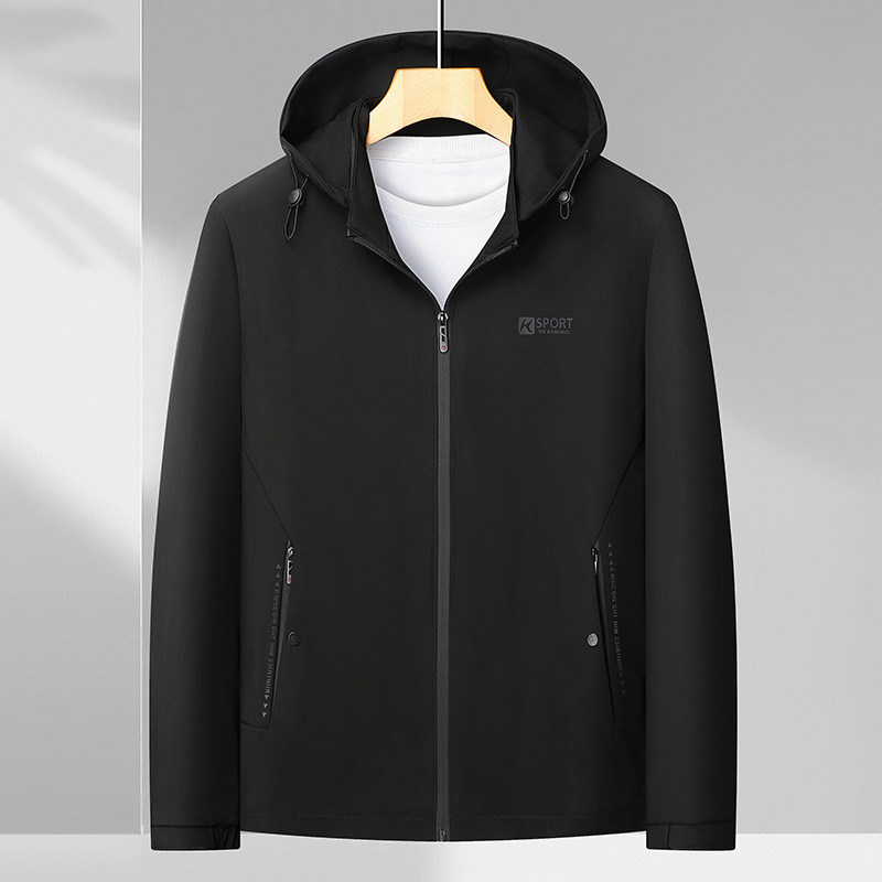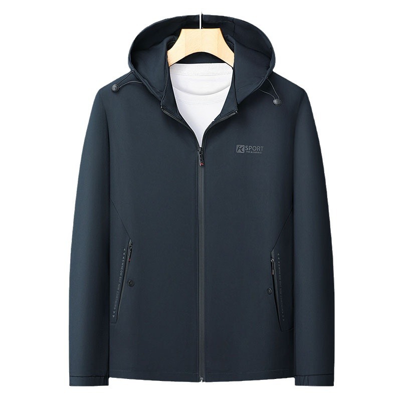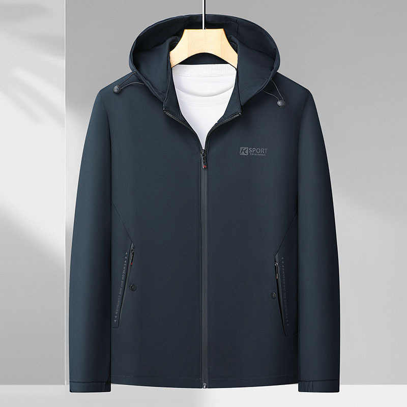 Папа носит весеннюю новую куртку, пальто, шляпу, съемную пятилетнюю или шестилетнюю десятилетнюю папу-мужчину, весенне-осеннее пальто