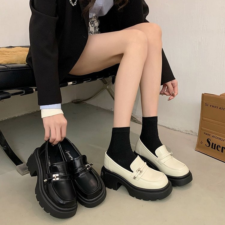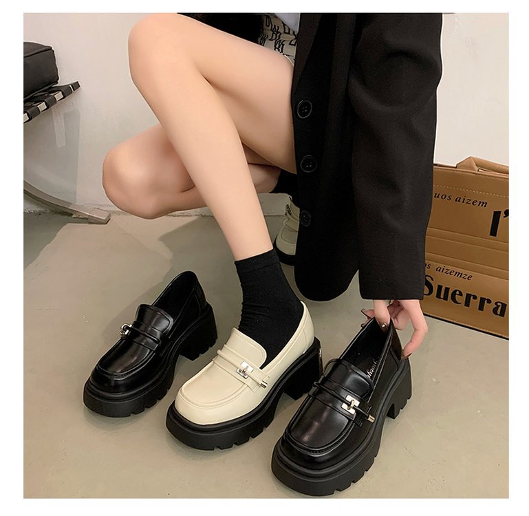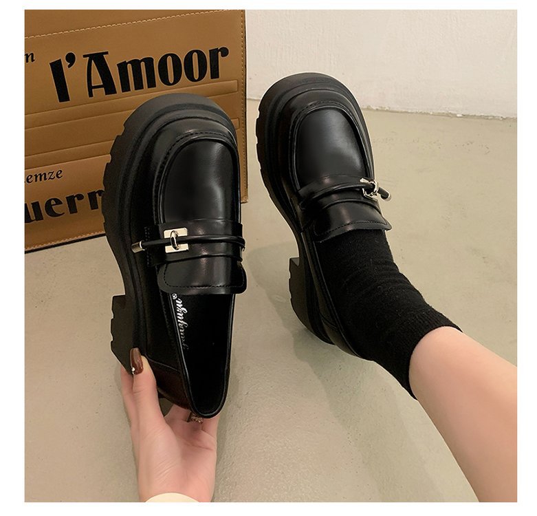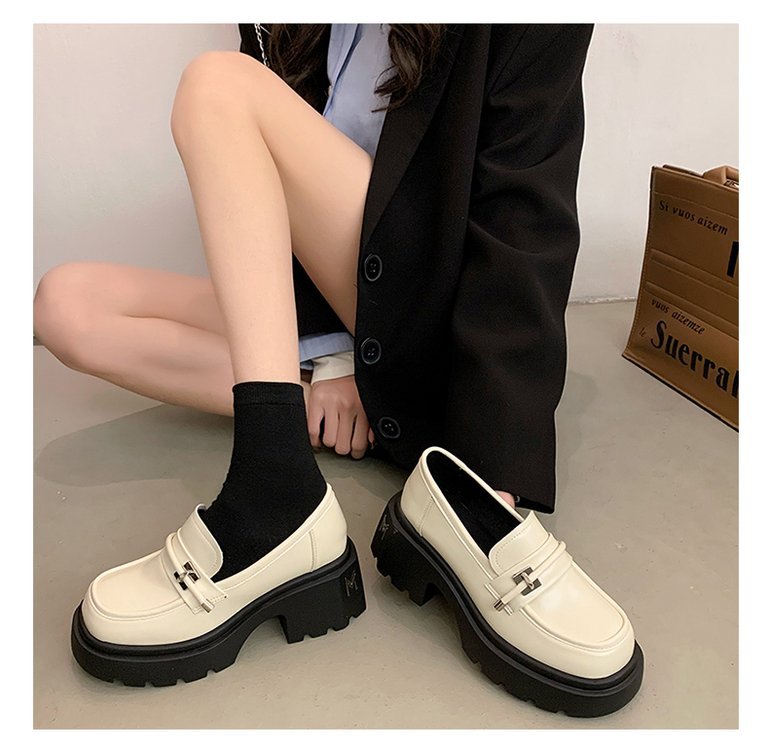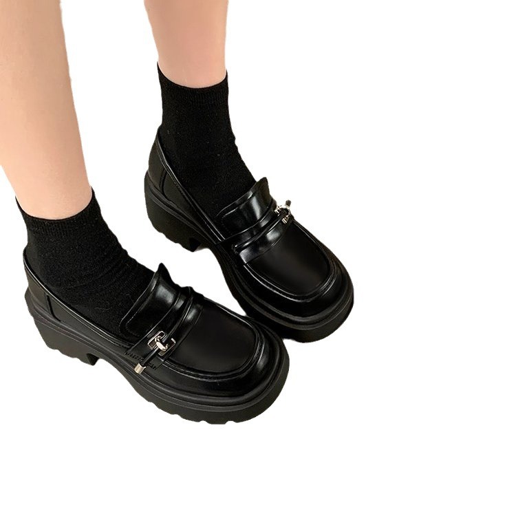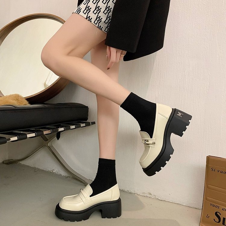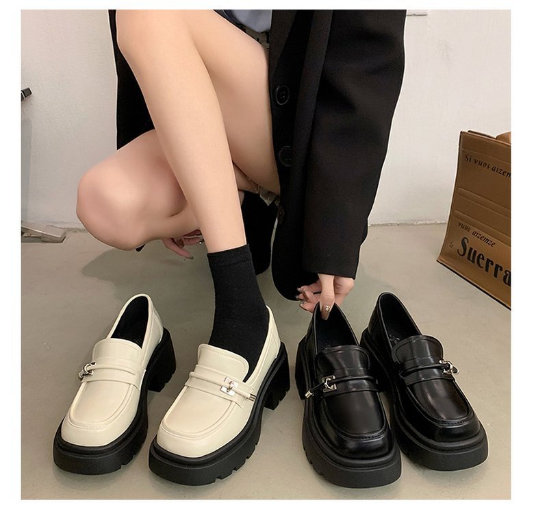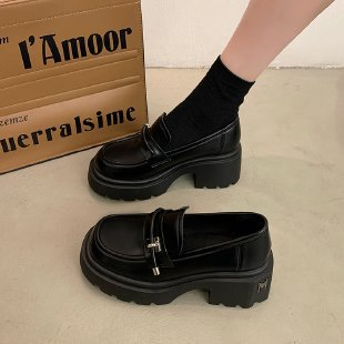Французские Лоферы женские на толстой подошве 2024 Весна Новые Британские кожаные туфли на платформе и высоком каблуке кожаные туфли с круглым носком однослойные туфли