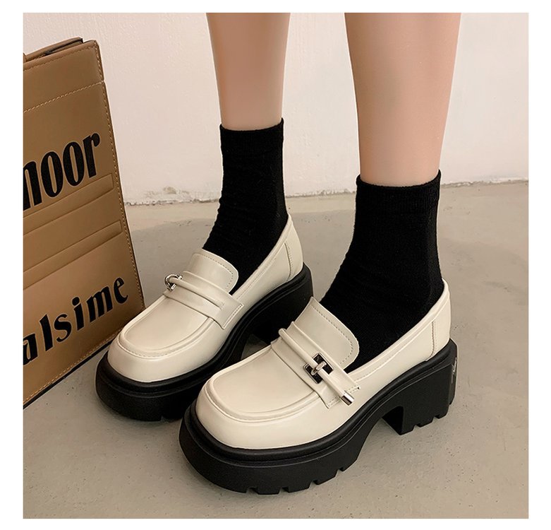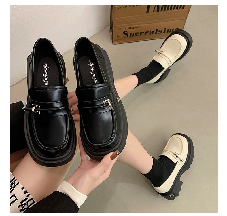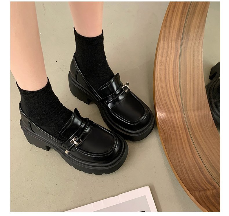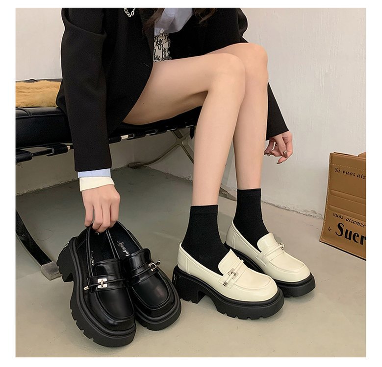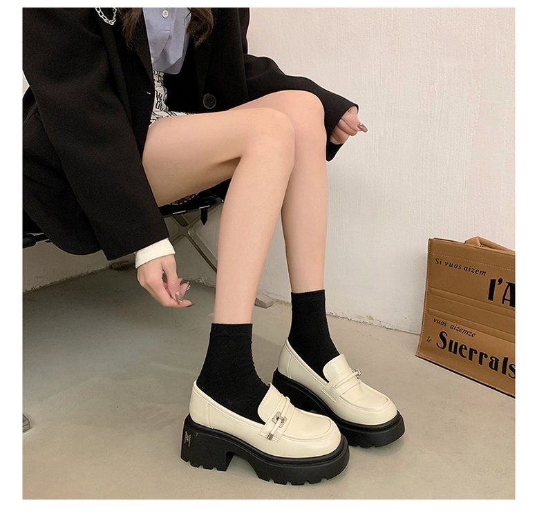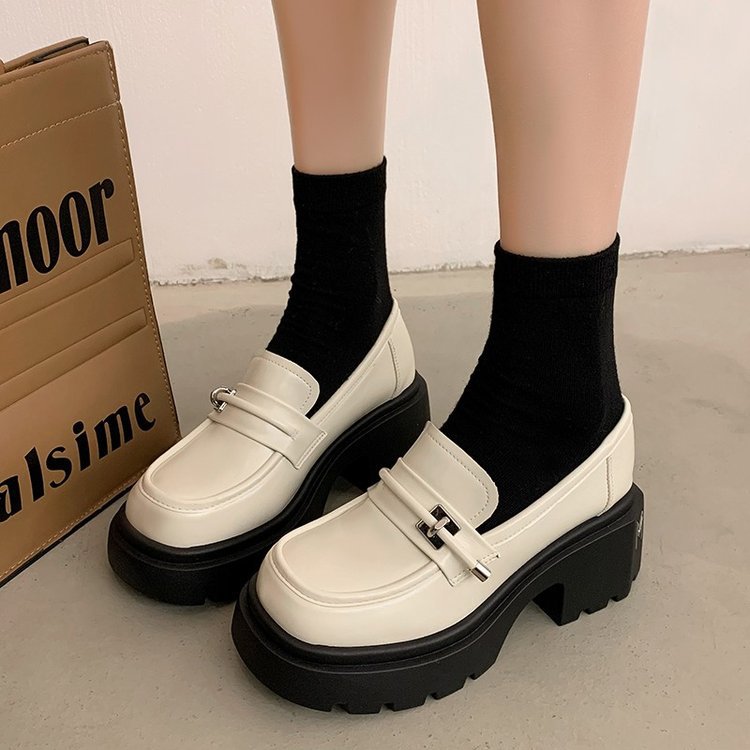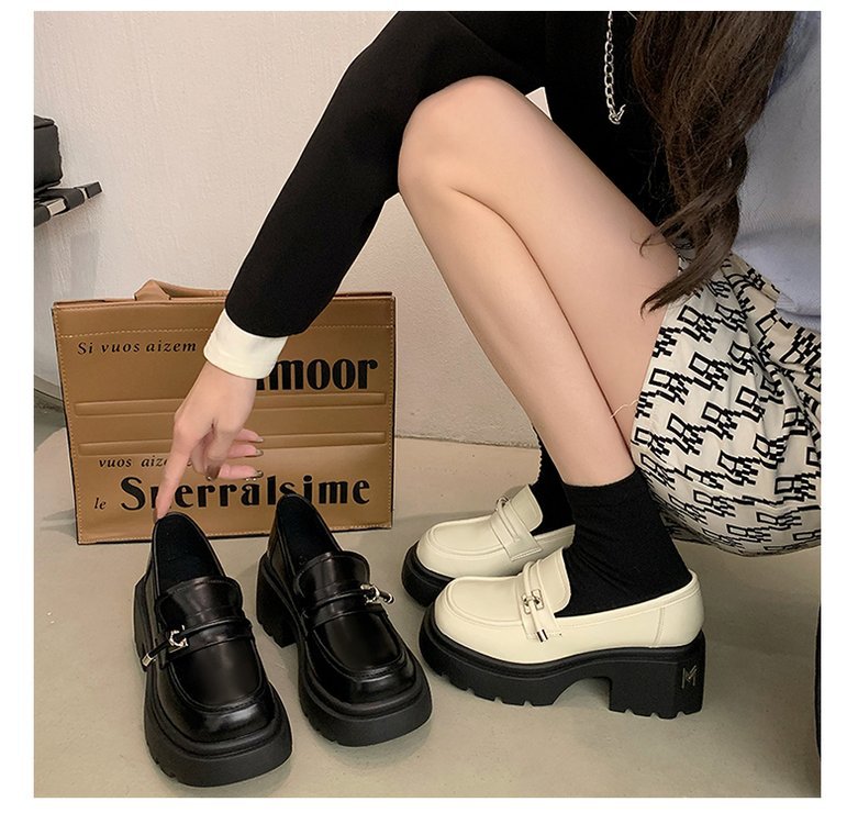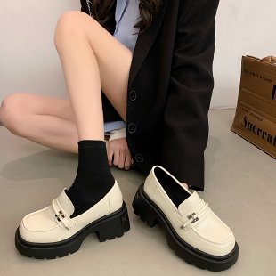 Французские Лоферы женские на толстой подошве 2024 Весна Новые Британские кожаные туфли на платформе и высоком каблуке кожаные туфли с круглым носком однослойные туфли