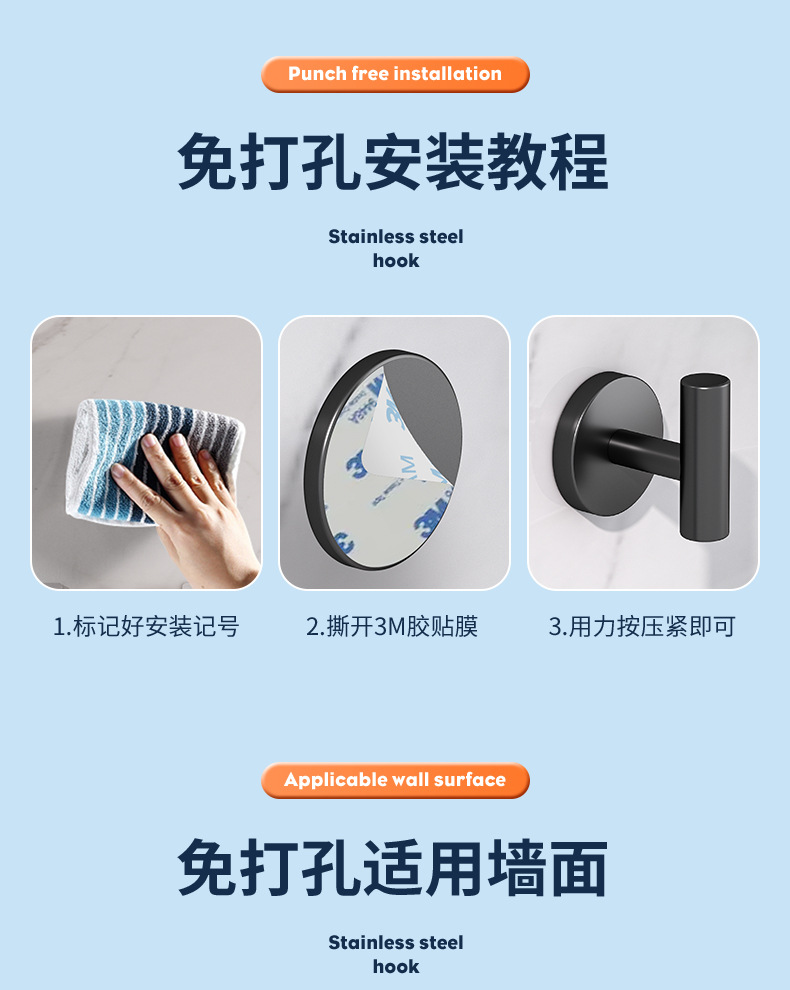 Крючок для одежды с одним крючком из нержавеющей стали Amazon, крючок без перфорации, настенный креативный металлический крючок для ванной комнаты
