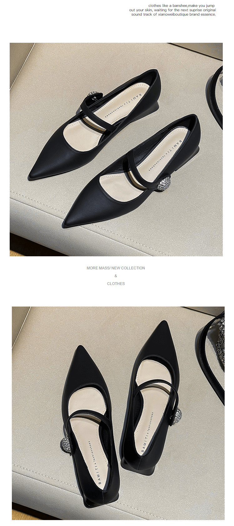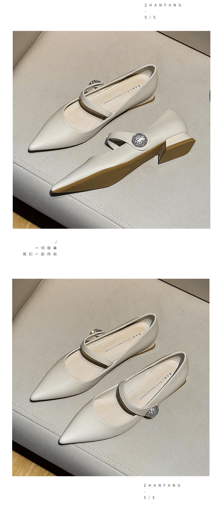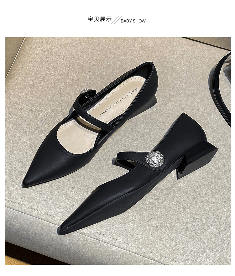 Твидовый стиль, французские туфли на плоской подошве с острым носком и толстым каблуком для женщин, 2024, новые туфли на высоком каблуке с одно слово, пряжка со стразами, низкий каблук 3 см