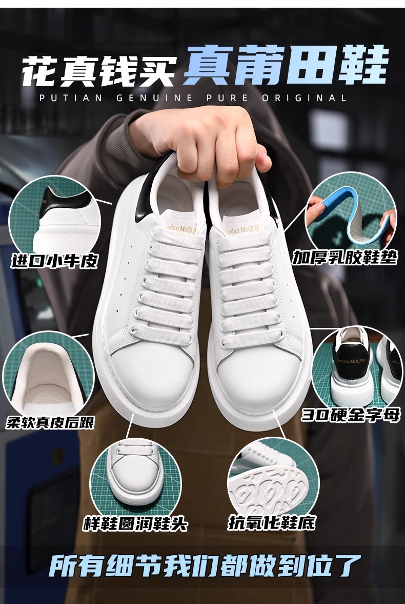 Путянь Кели Маккуин маленькие белые туфли осень-зима новые женские туфли мужские подлинные кожаные толстые подошвы для увеличения спортивной обуви