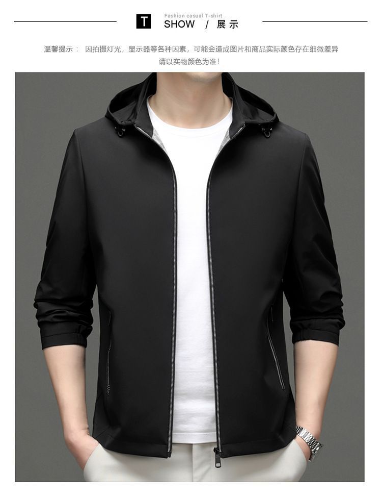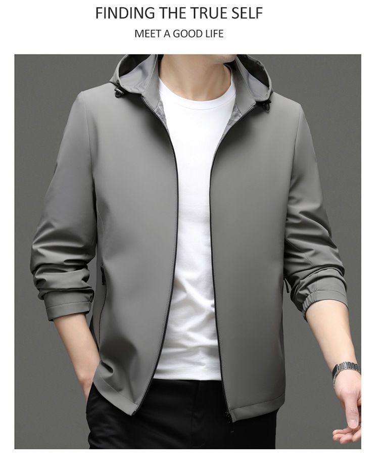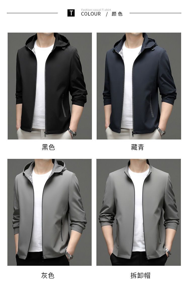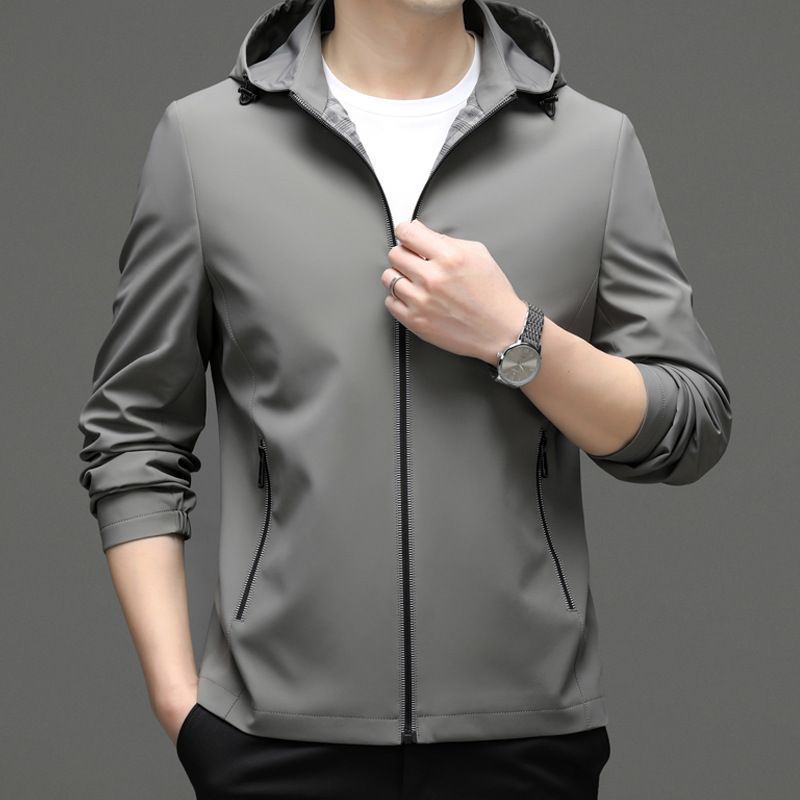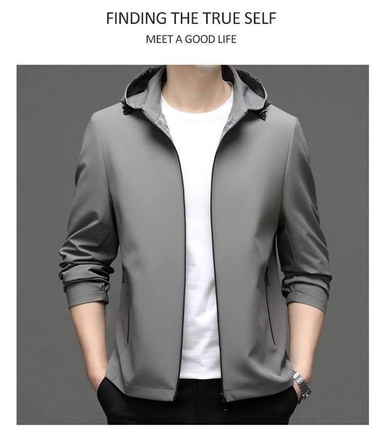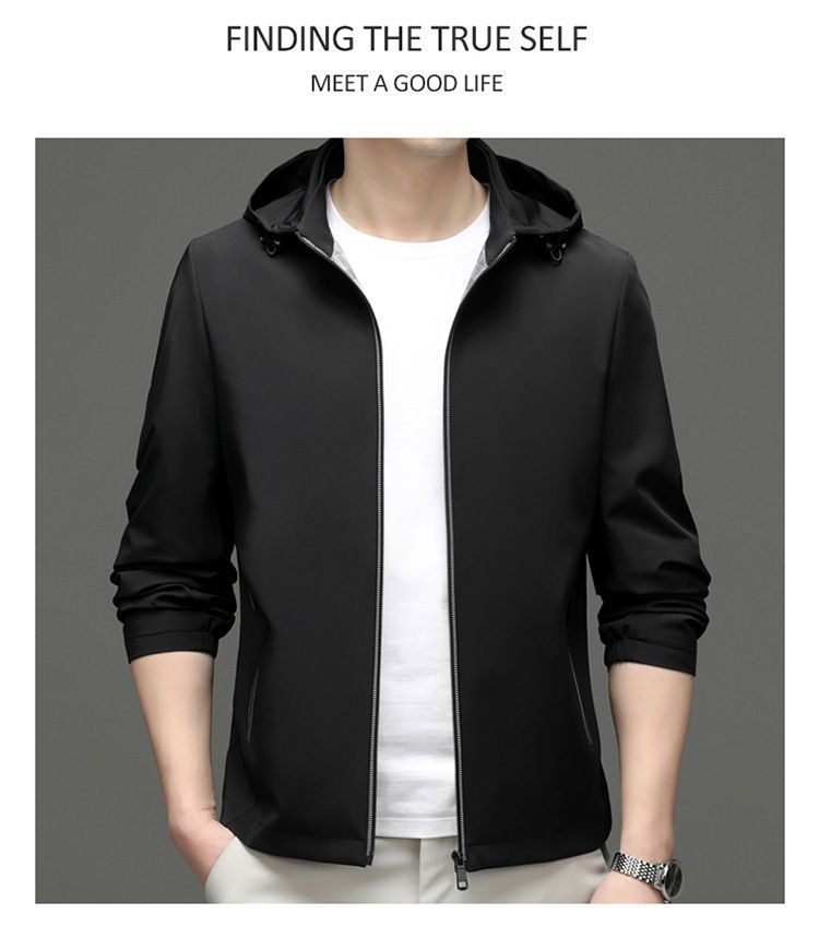 Черная весенне-осенняя куртка с капюшоном; Темно-синяя весенняя и осенняя куртка с капюшоном; Серая весенне-осенняя куртка с капюшоном