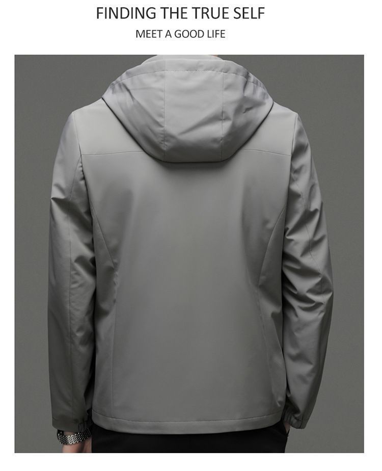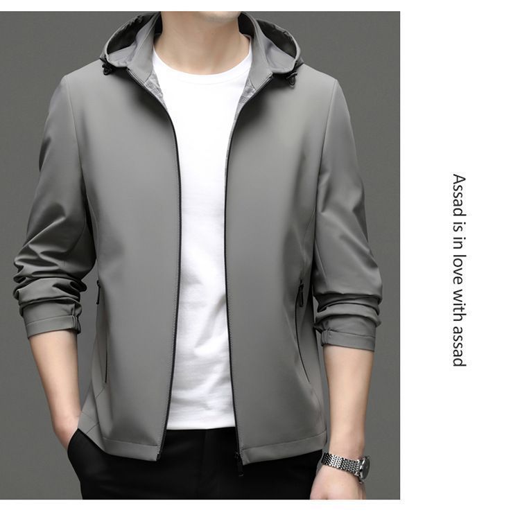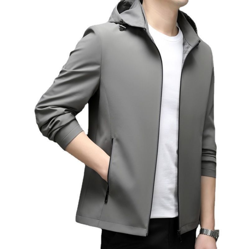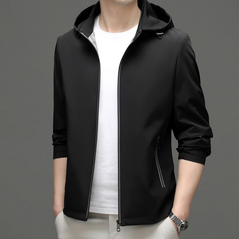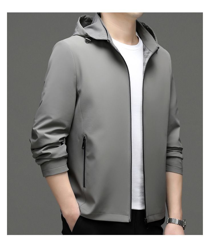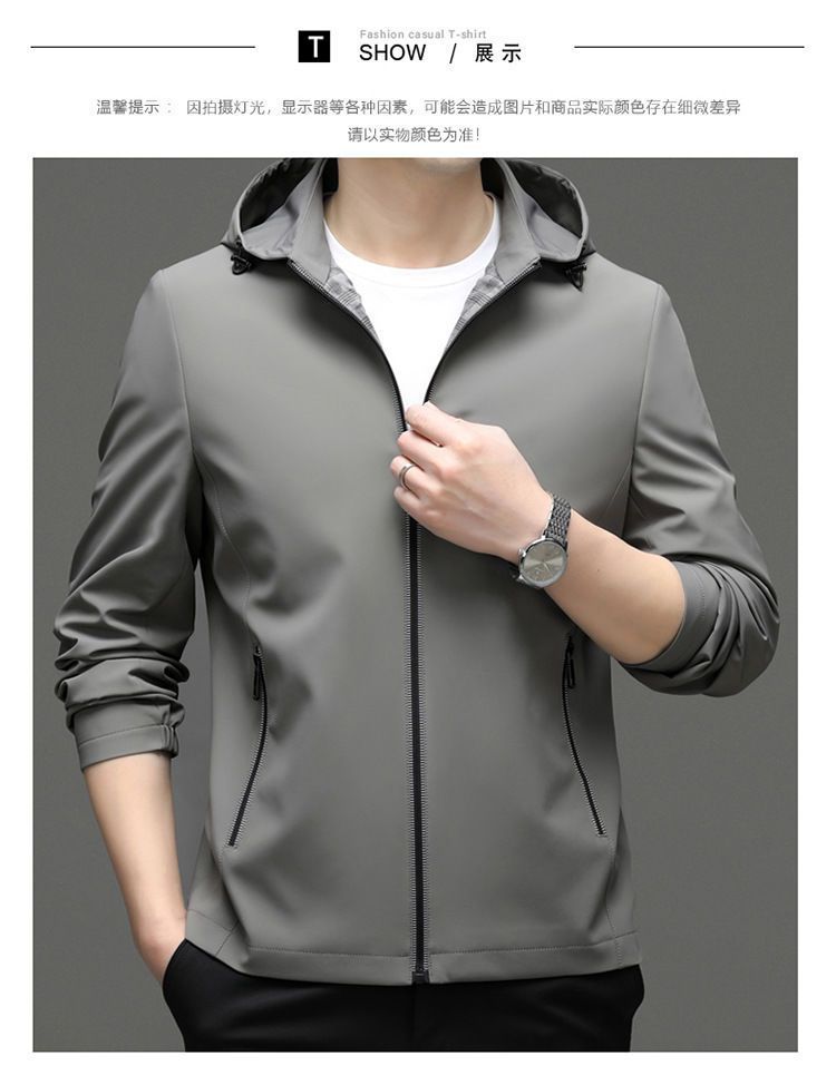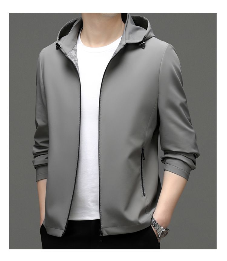 Черная весенне-осенняя куртка с капюшоном; Темно-синяя весенняя и осенняя куртка с капюшоном; Серая весенне-осенняя куртка с капюшоном