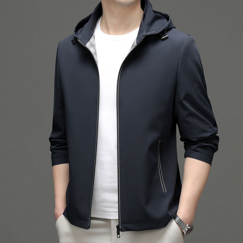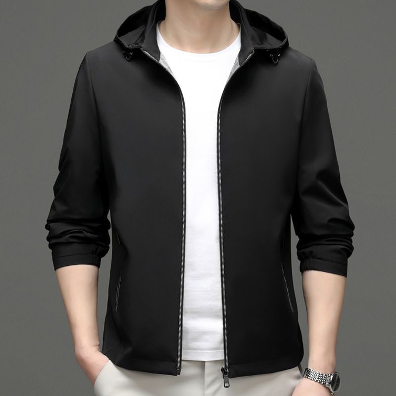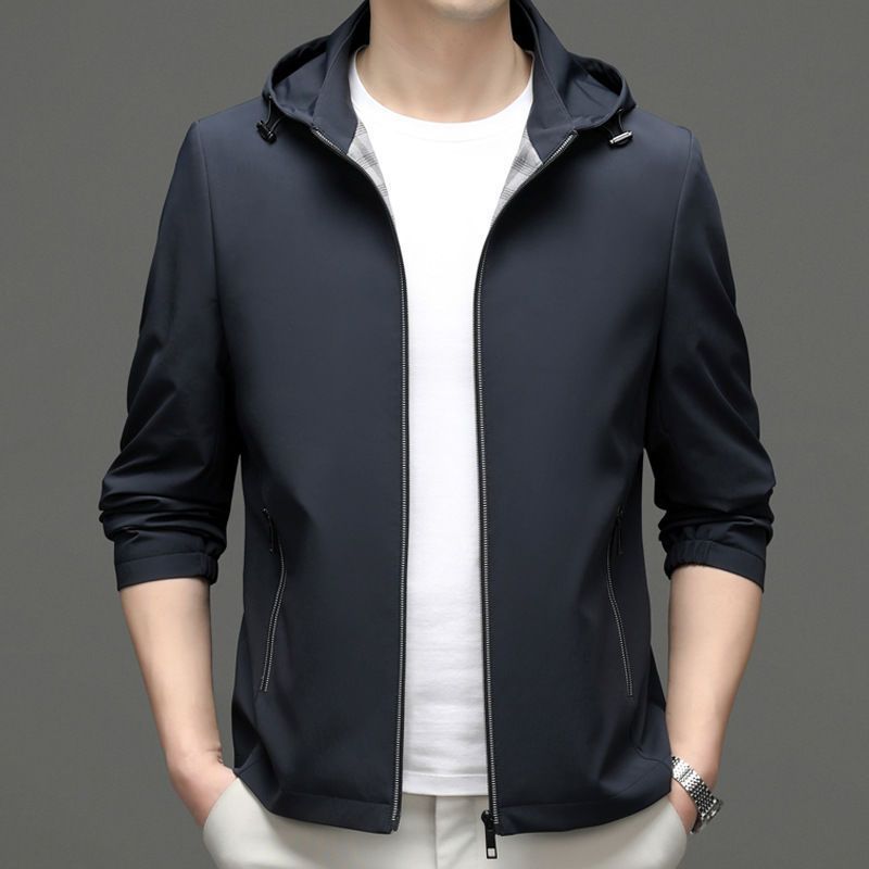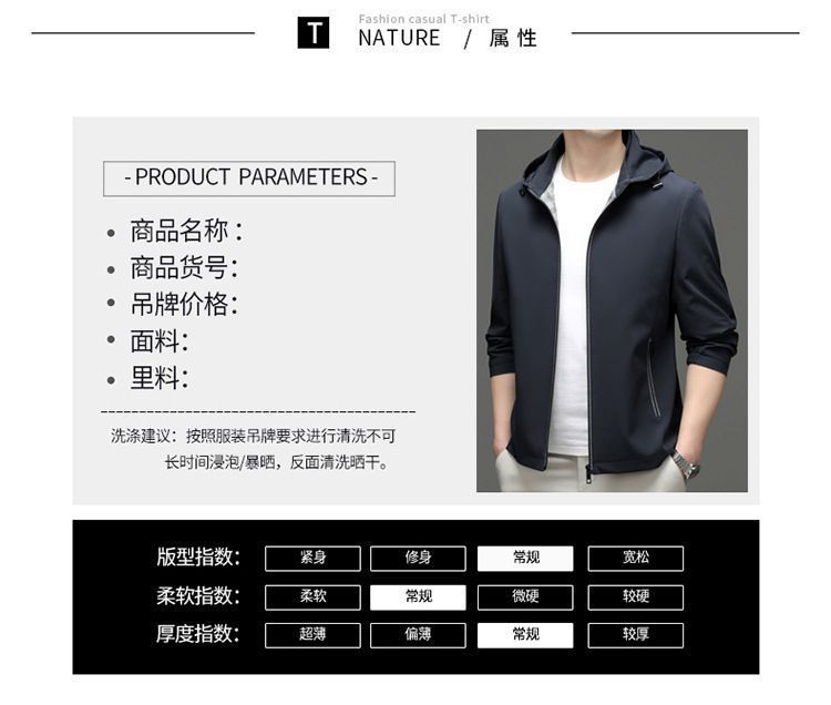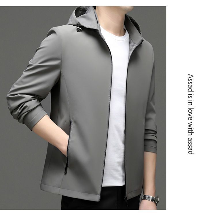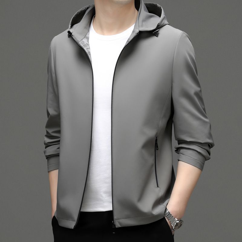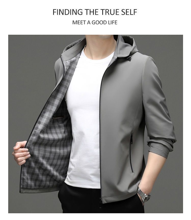Черная весенне-осенняя куртка с капюшоном; Темно-синяя весенняя и осенняя куртка с капюшоном; Серая весенне-осенняя куртка с капюшоном