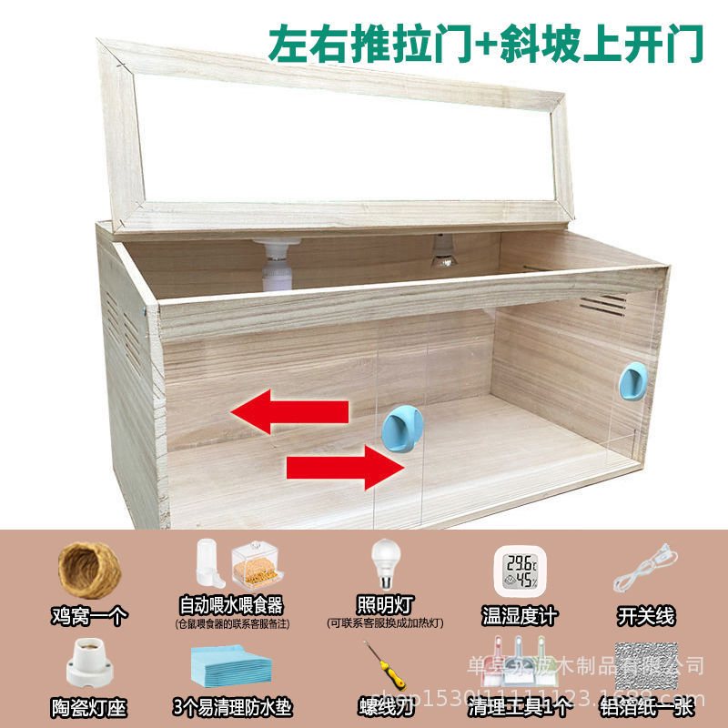 Деревянная коробка из массива дерева, полный набор для разведения, принадлежности для маленьких домашних животных, клетка для раздвижных дверей хомяка, деревянная коробка