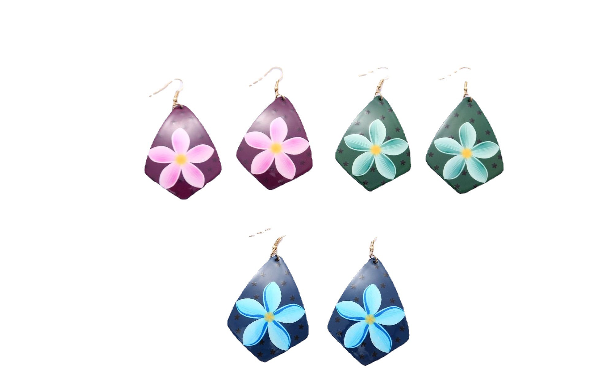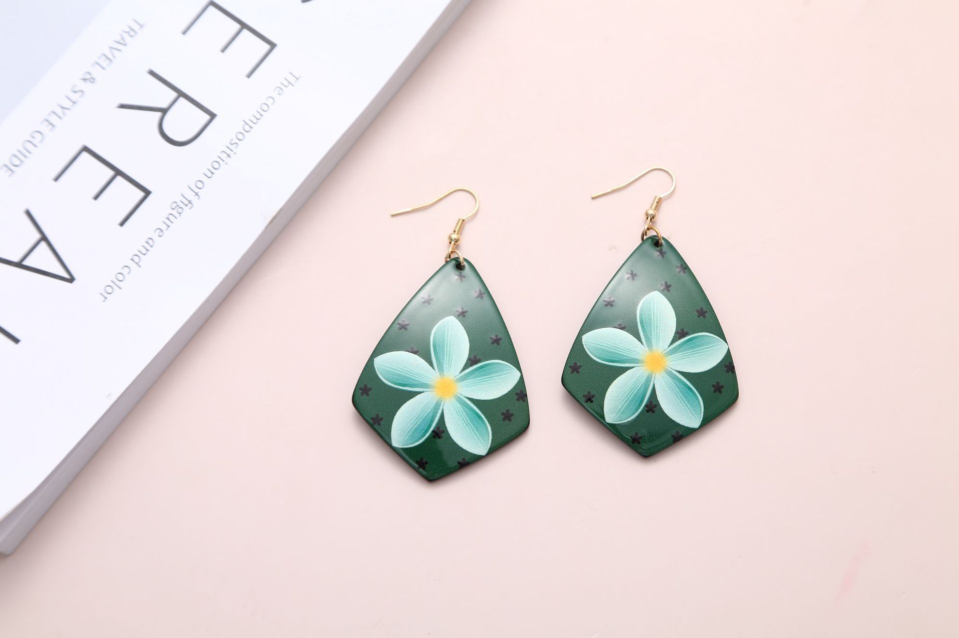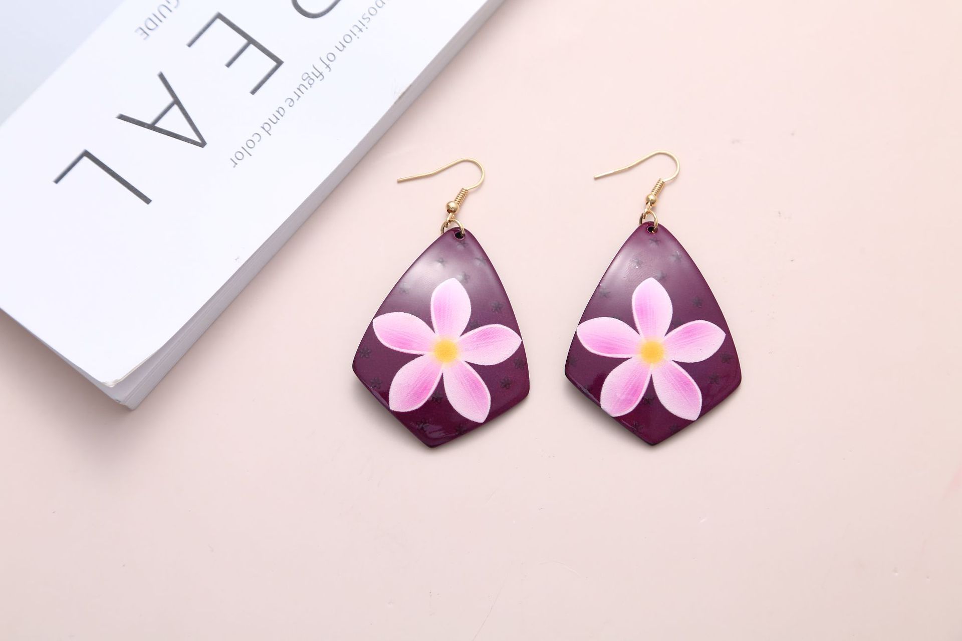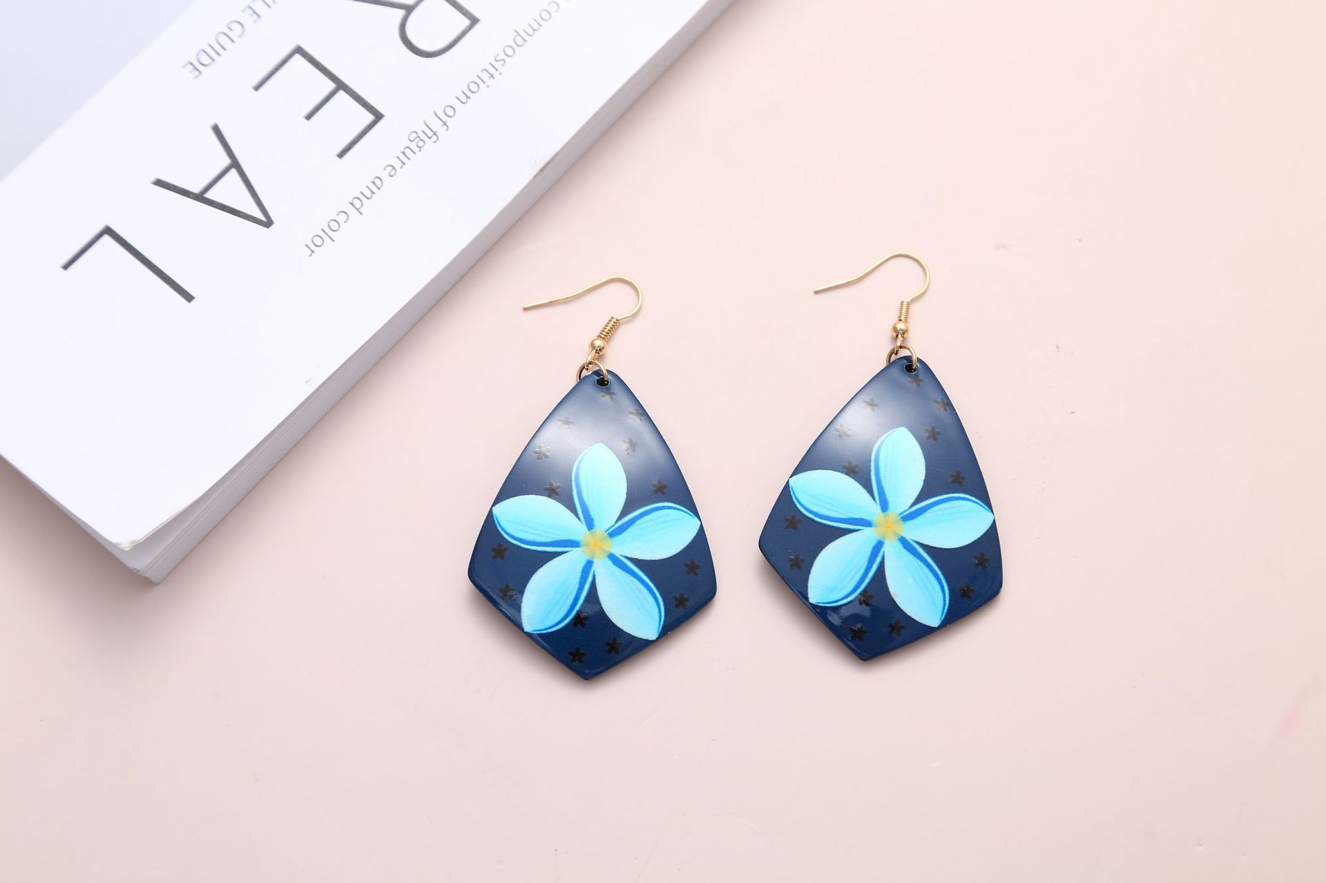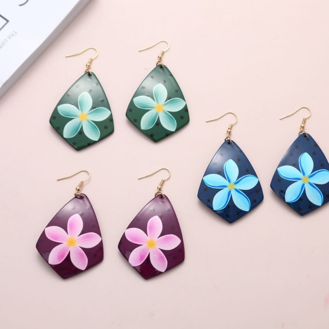 欧美水滴菱形复古耳勾水彩花耳饰立体定型民族风小众热带花耳环