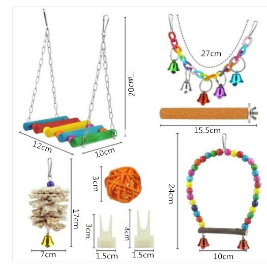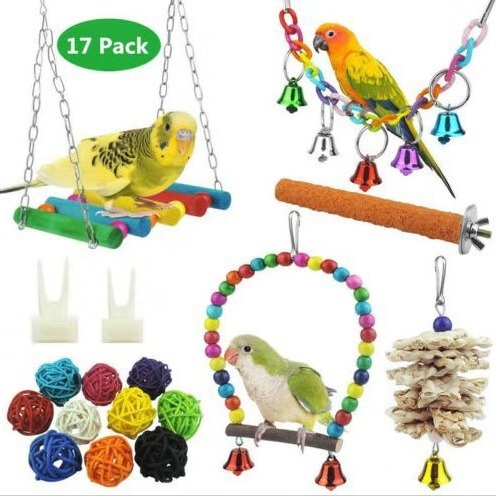 厂家直销17件套鹦鹉组合玩具鸟玩具秋千爬梯站架外贸组合装热销款