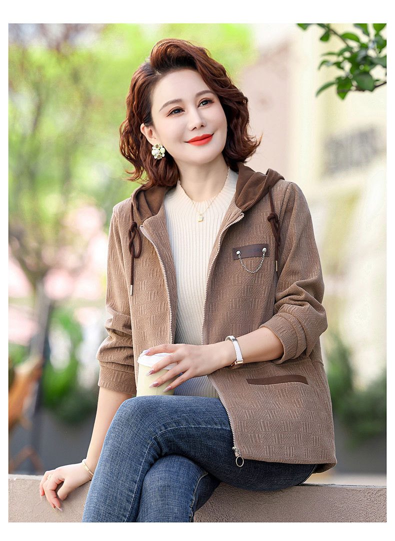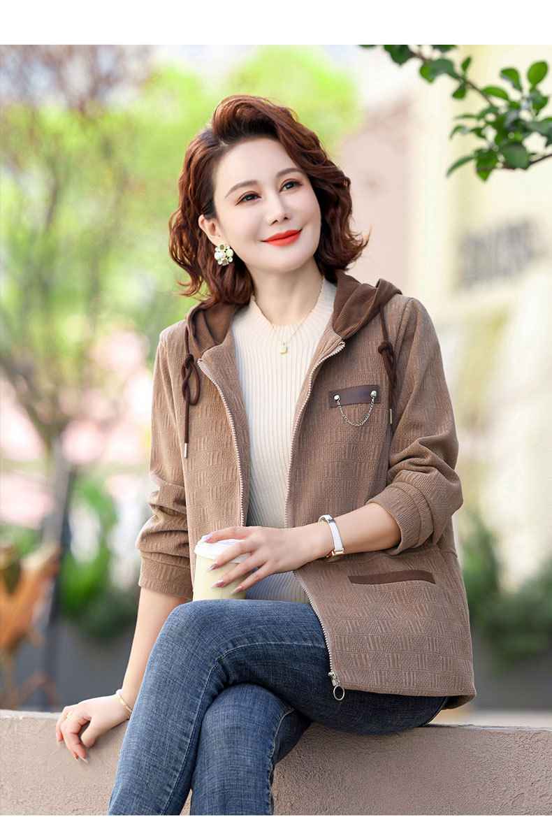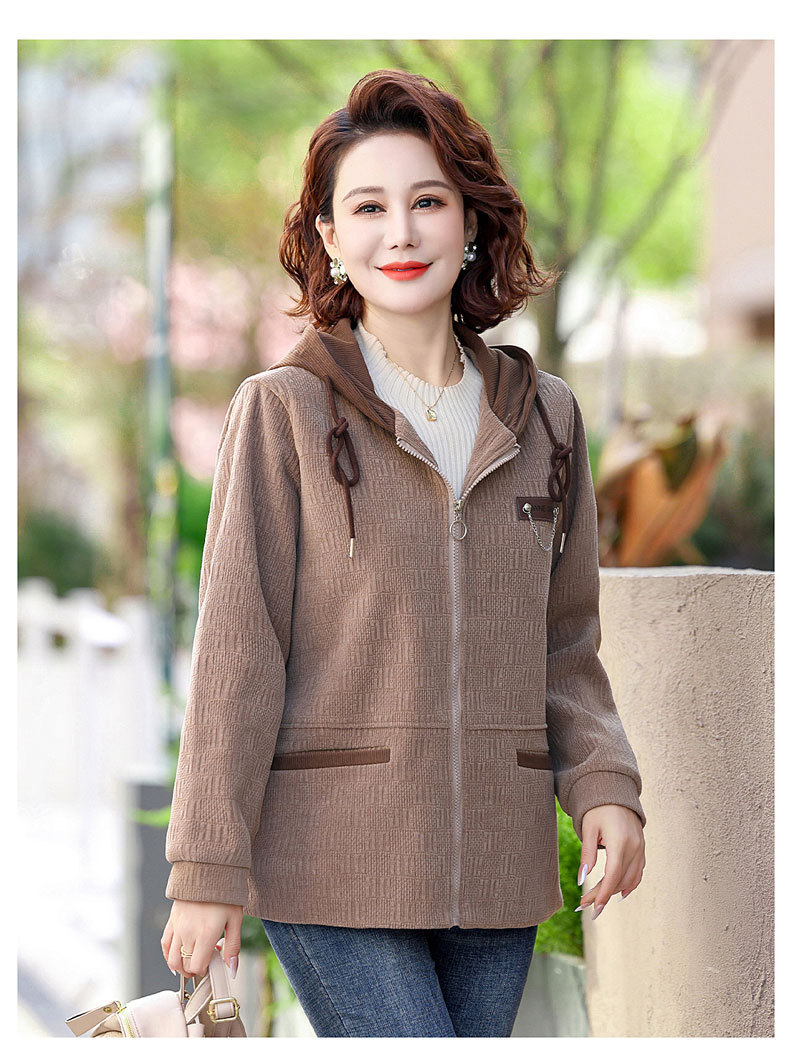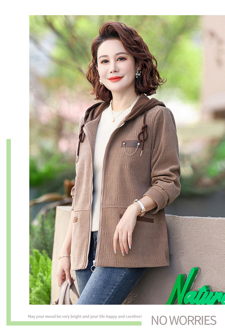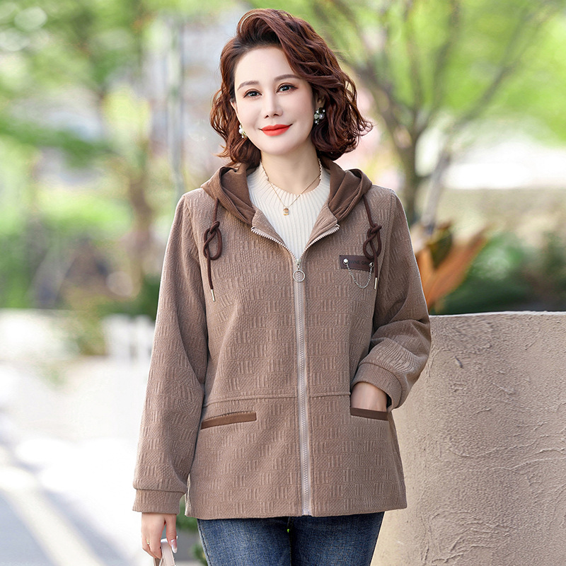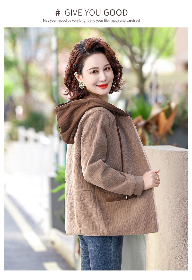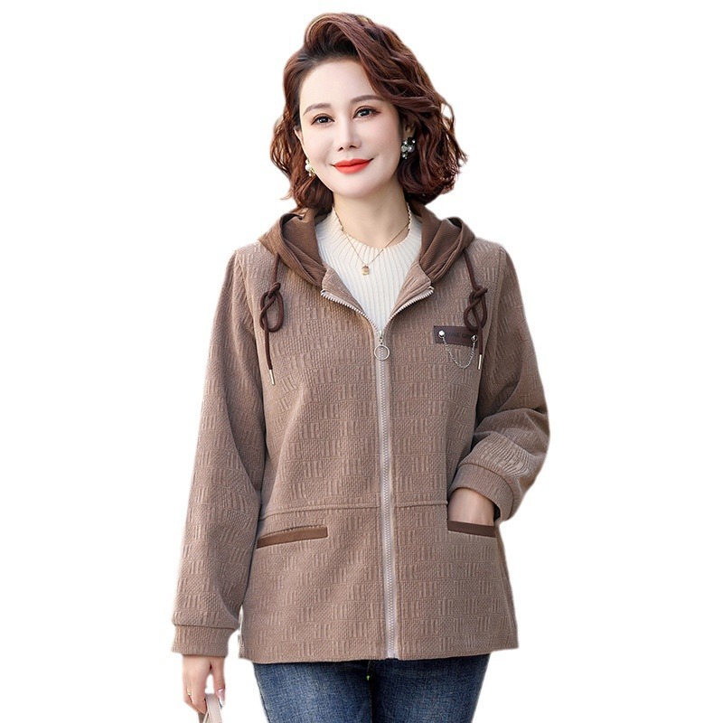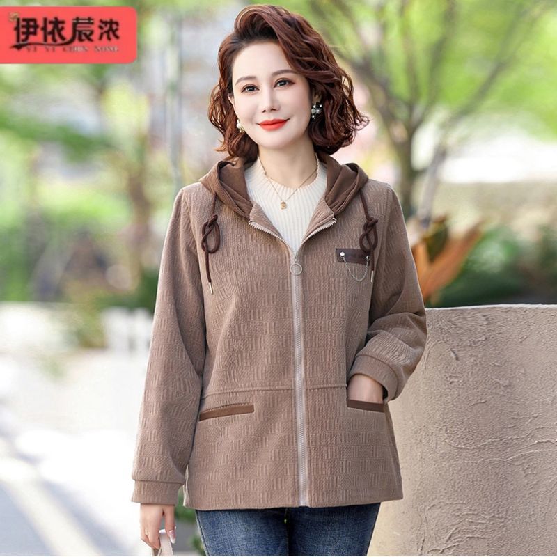 Весна Новый топ с капюшоном, женская одежда для мам, 45-летняя Женская куртка на молнии для среднего и пожилого возраста, весна и осень, новая женская куртка