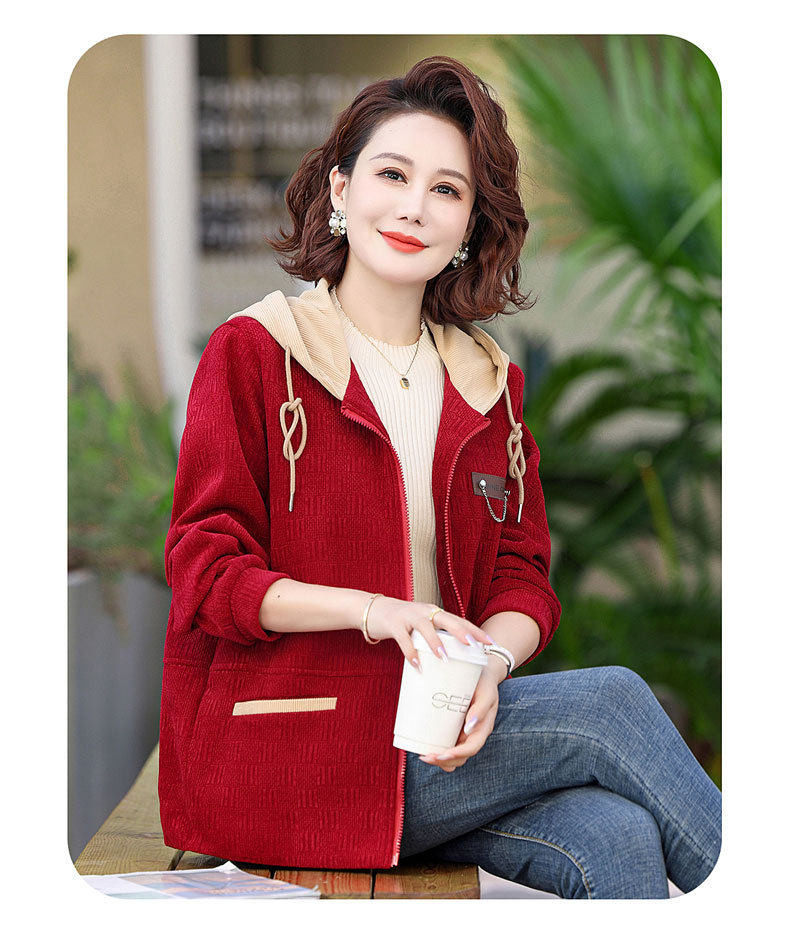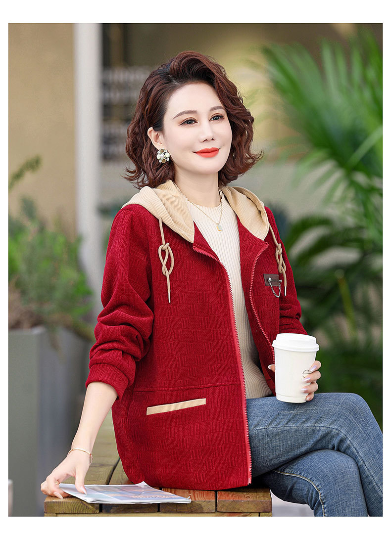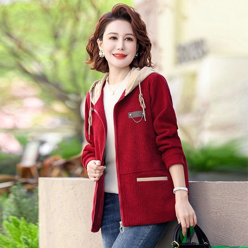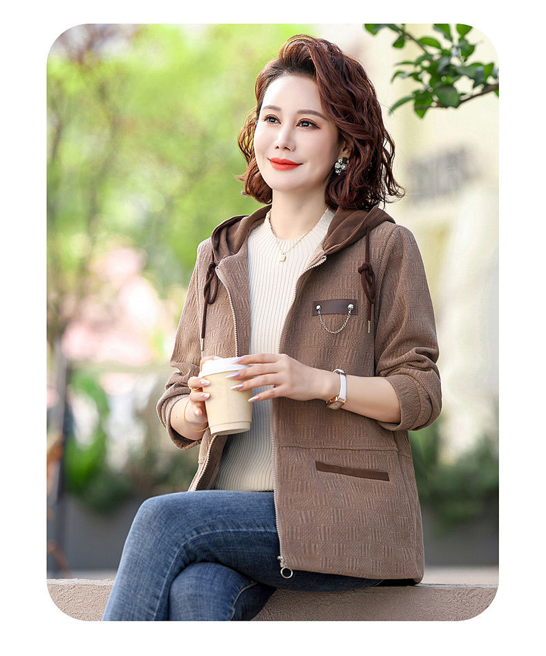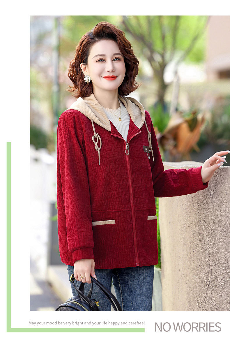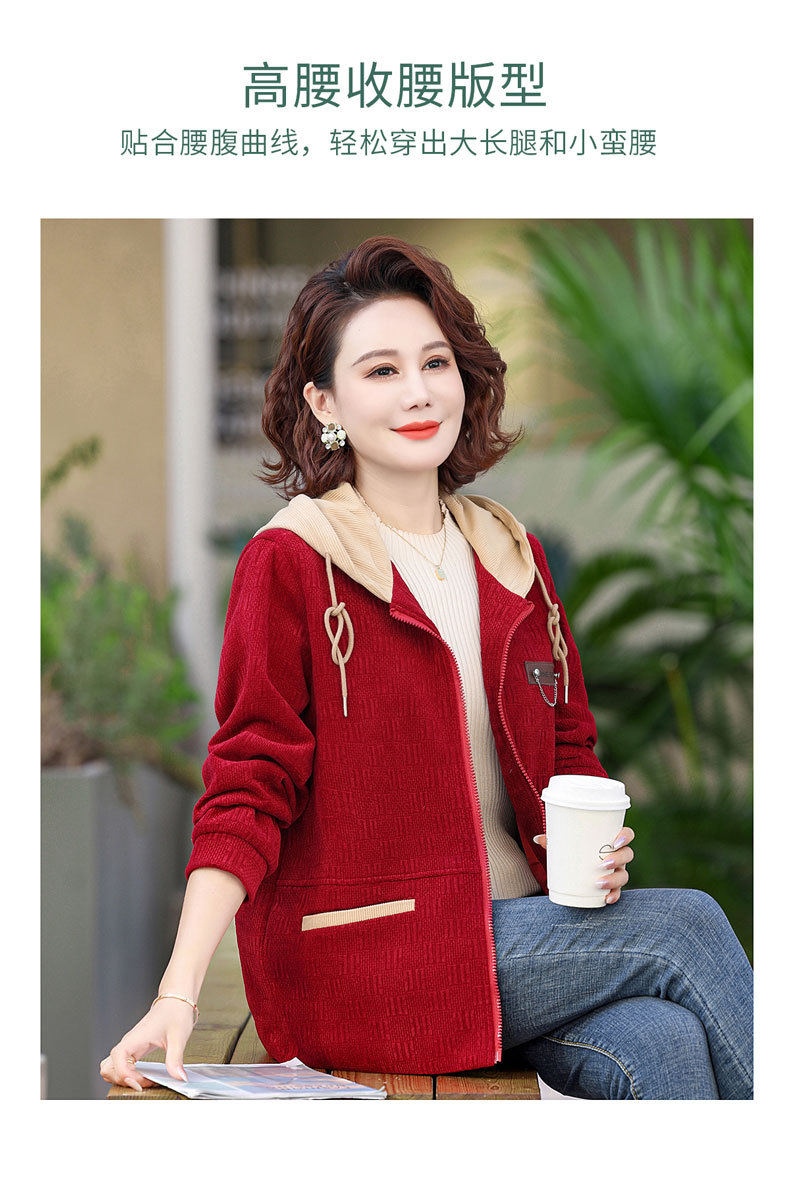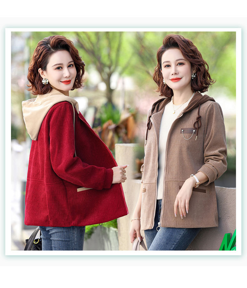 Весна Новый топ с капюшоном, женская одежда для мам, 45-летняя Женская куртка на молнии для среднего и пожилого возраста, весна и осень, новая женская куртка