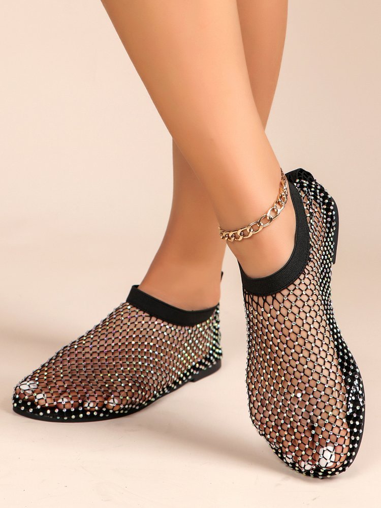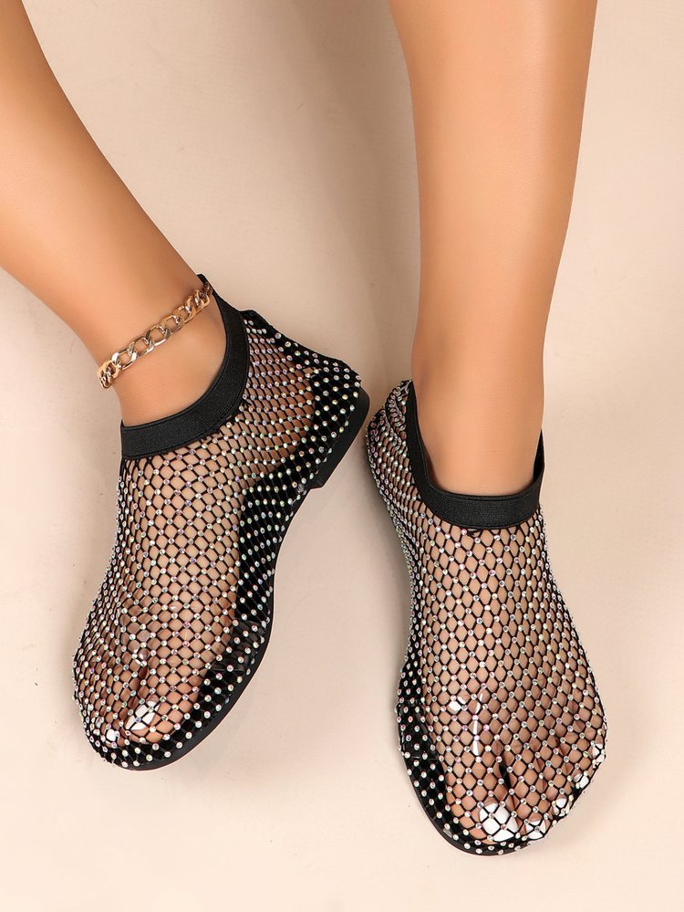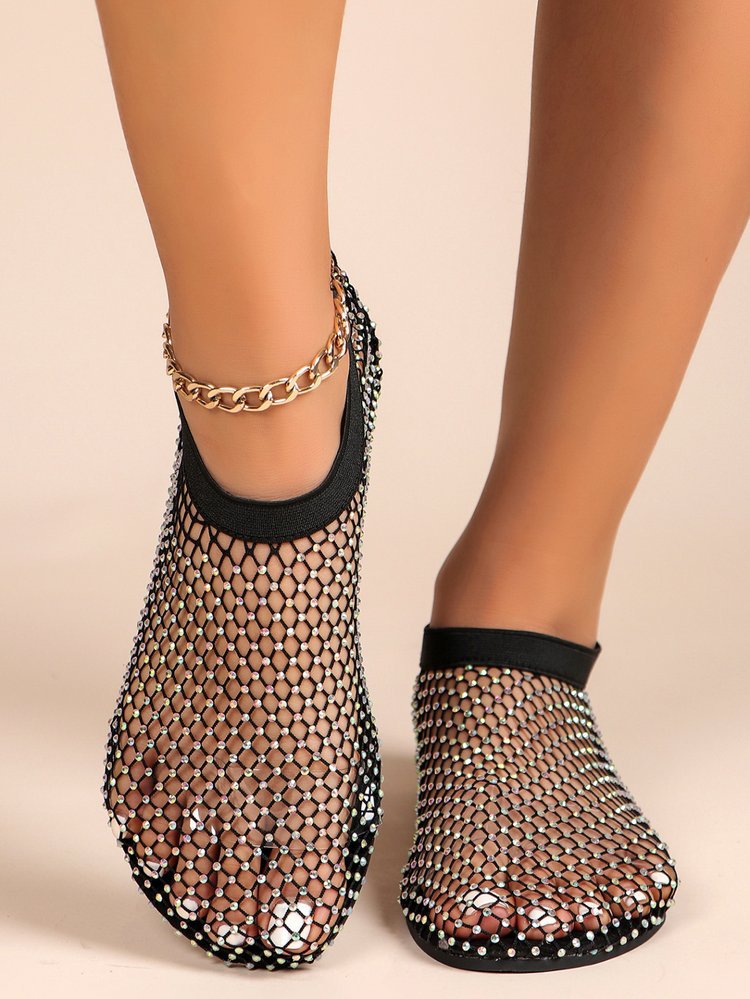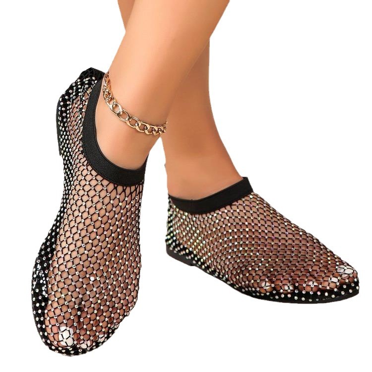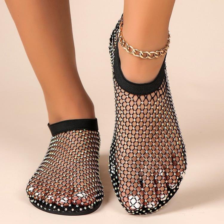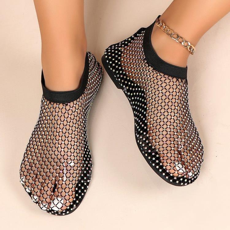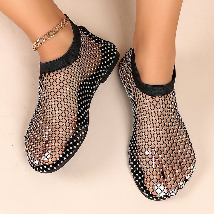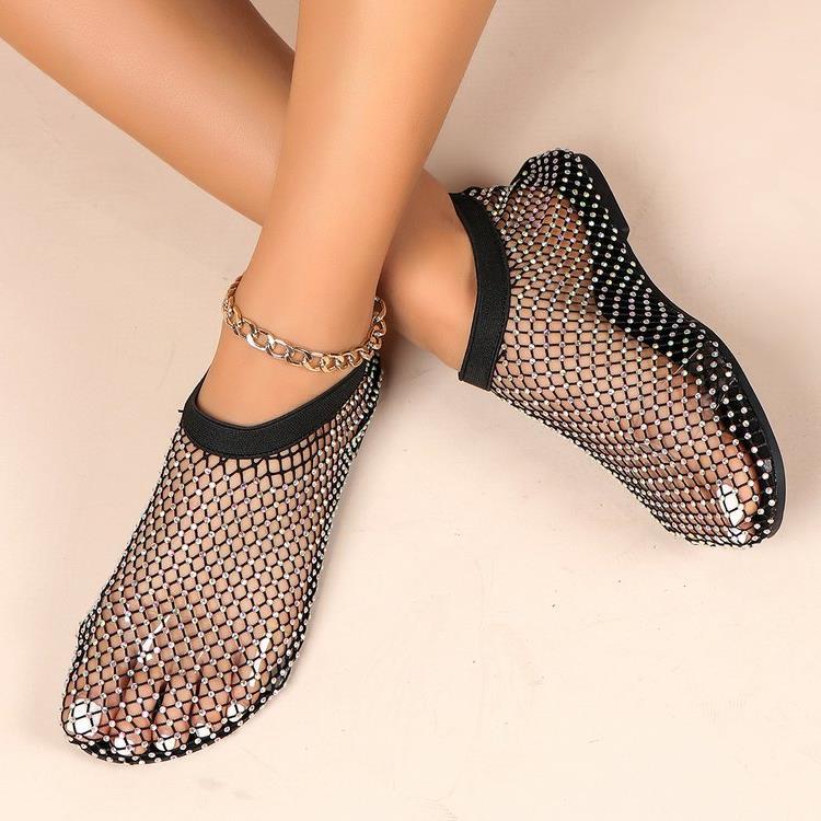 Трансграничные сандалии со стразами больших размеров, женские летние независимые станции, Модные ажурные носки, полые пикантные сетчатые туфли на плоской подошве, 2020