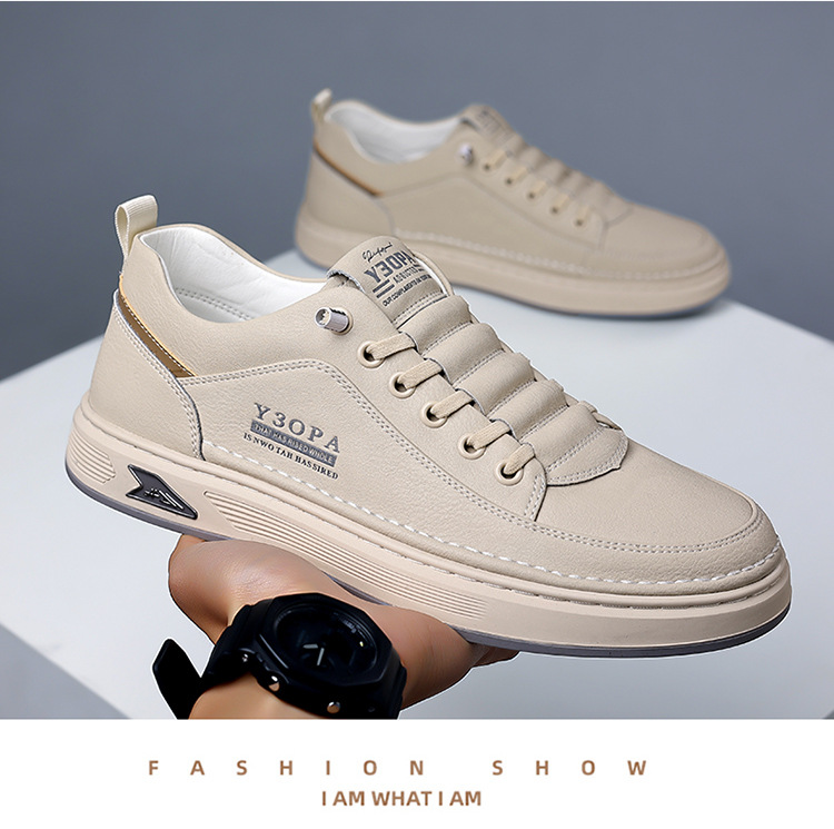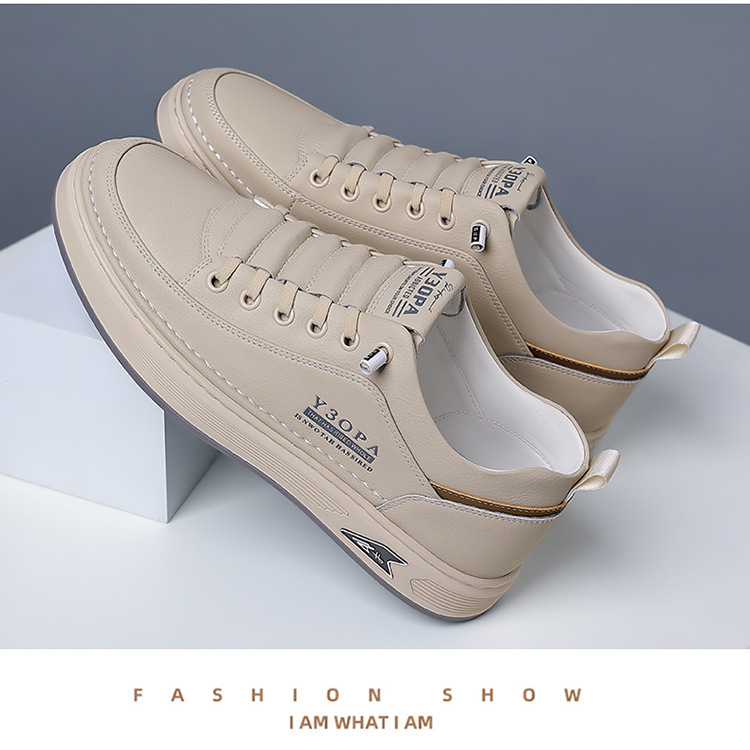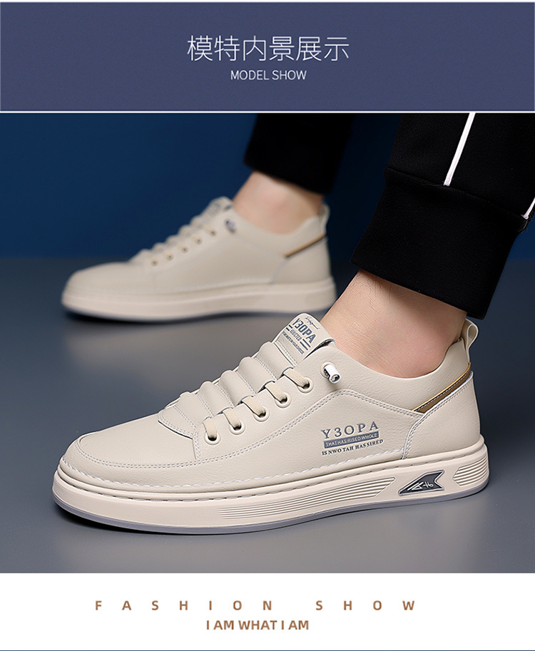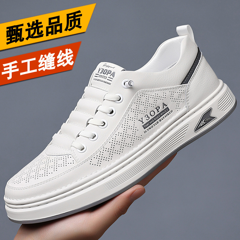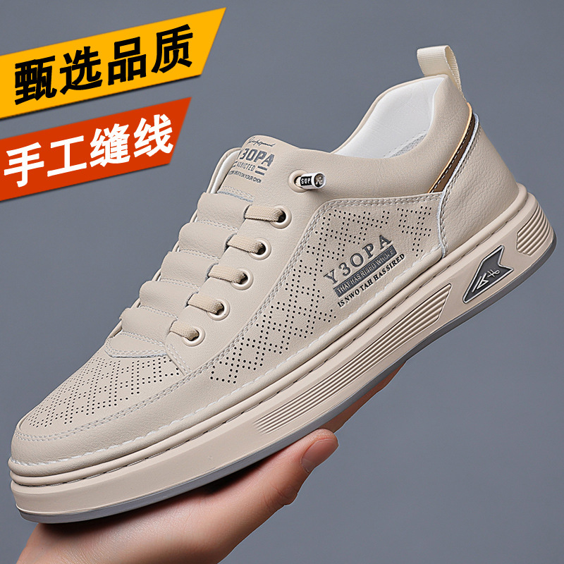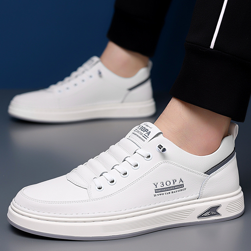 Новые мужские кожаные туфли весна 2025: универсальные повседневные кожаные кроссовки с мягкой подошвой для оптовой продажи, белые