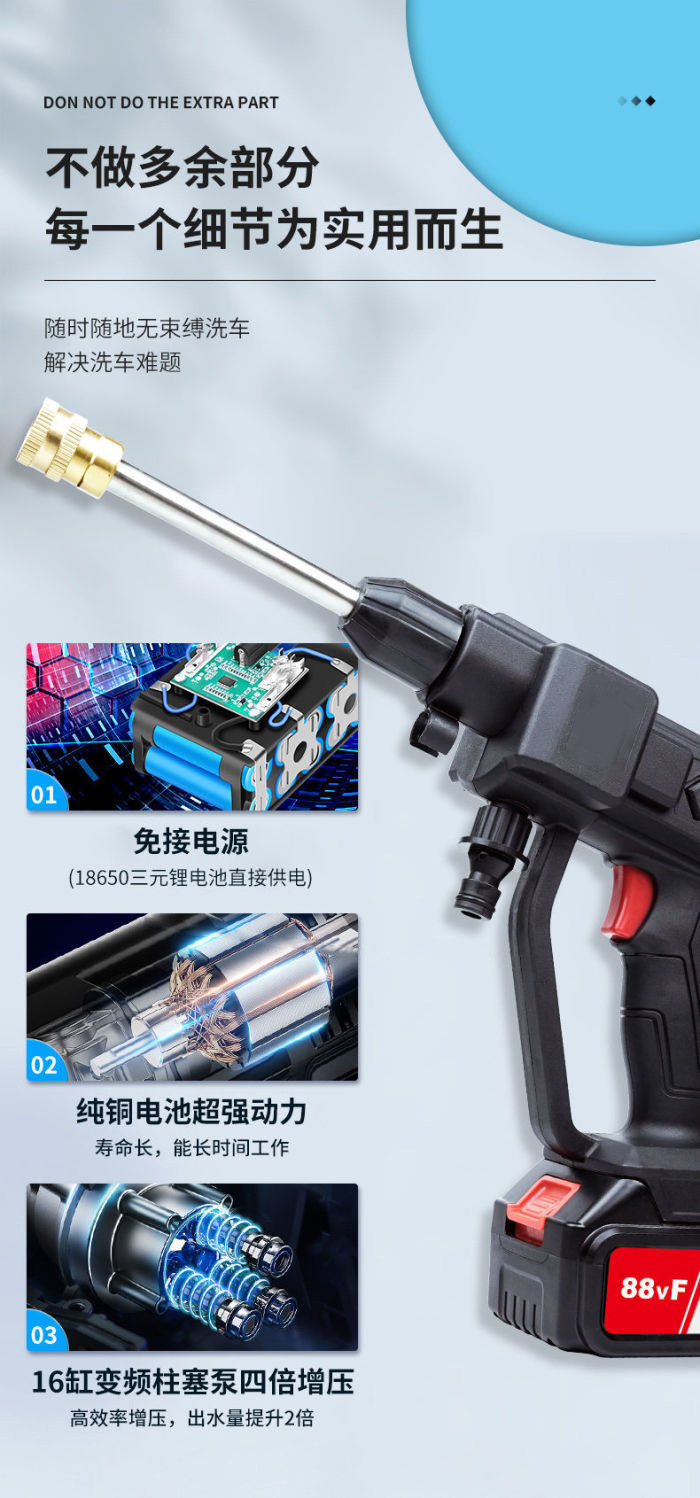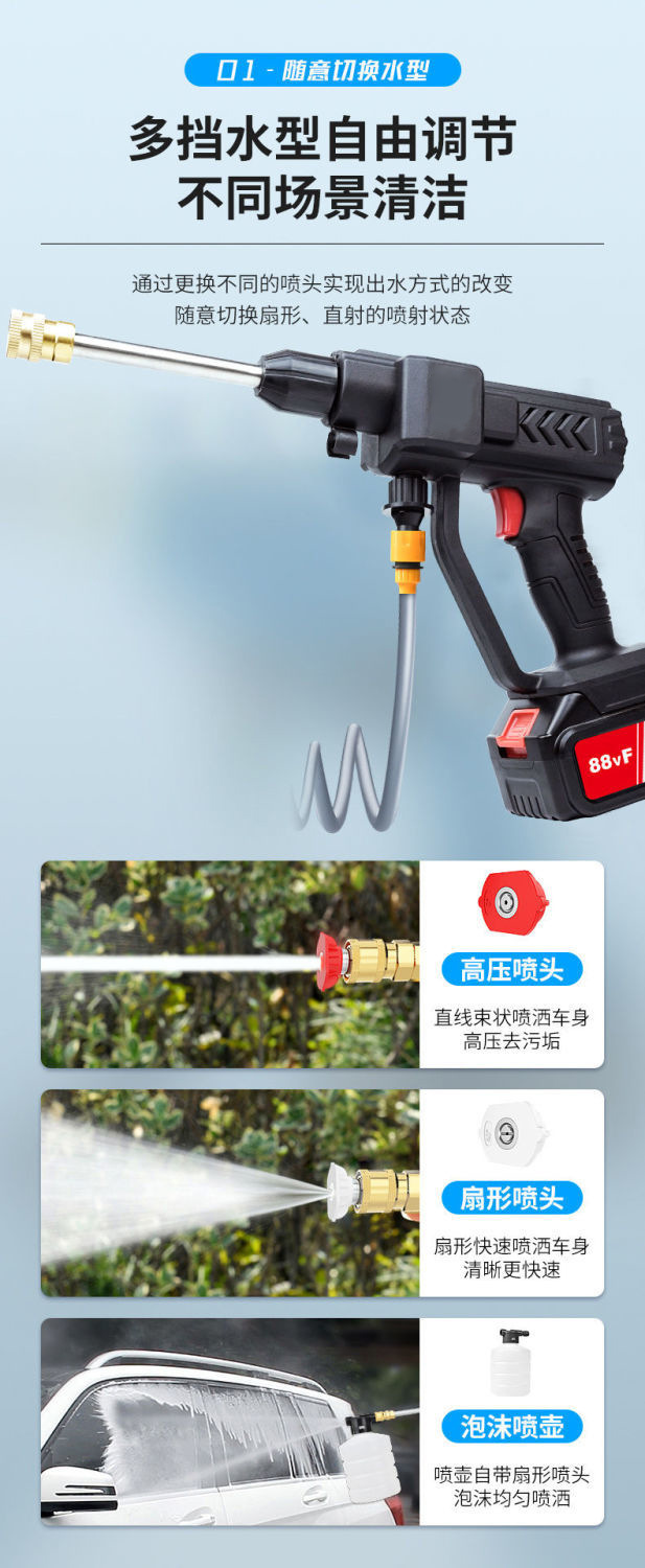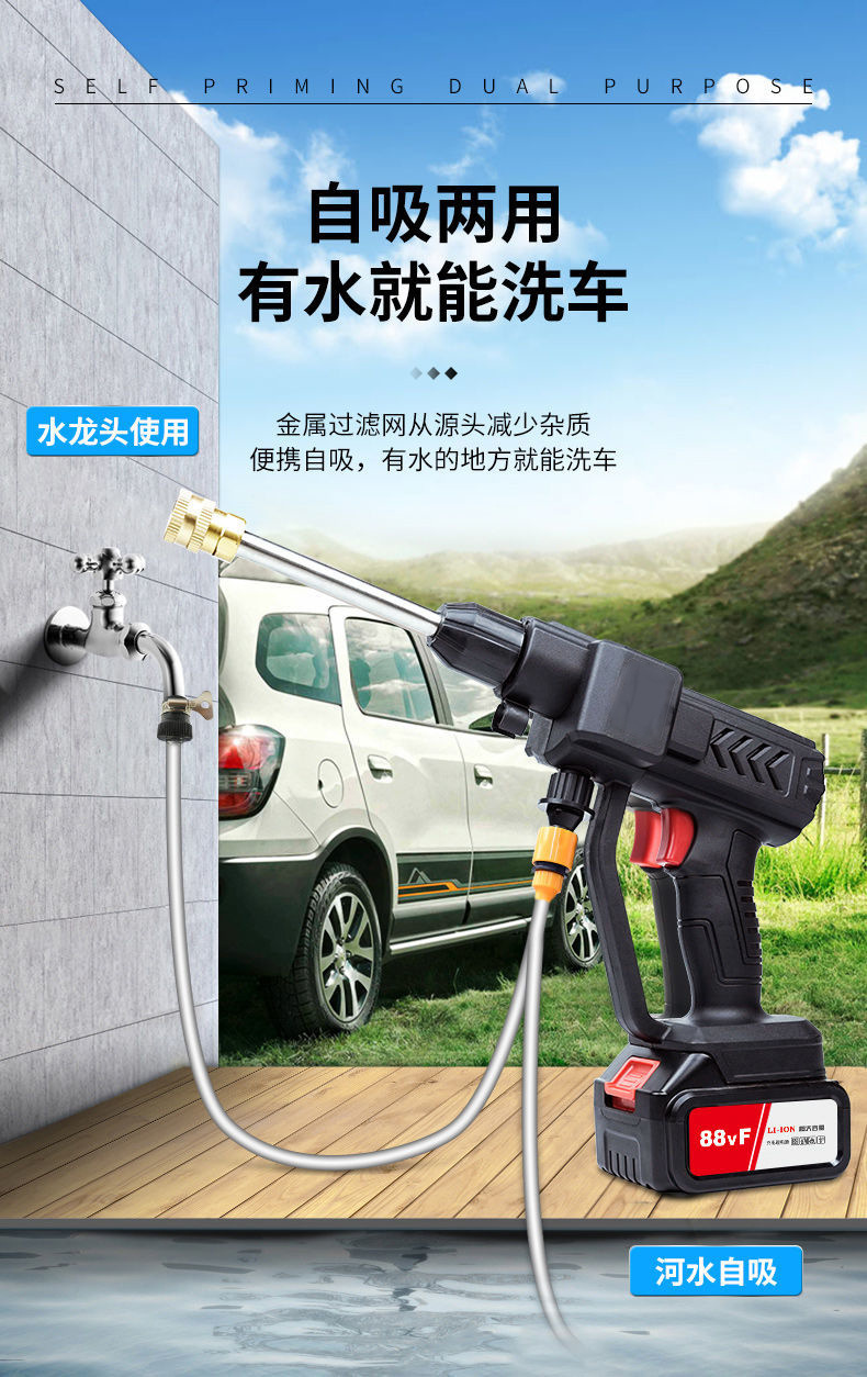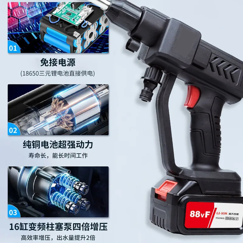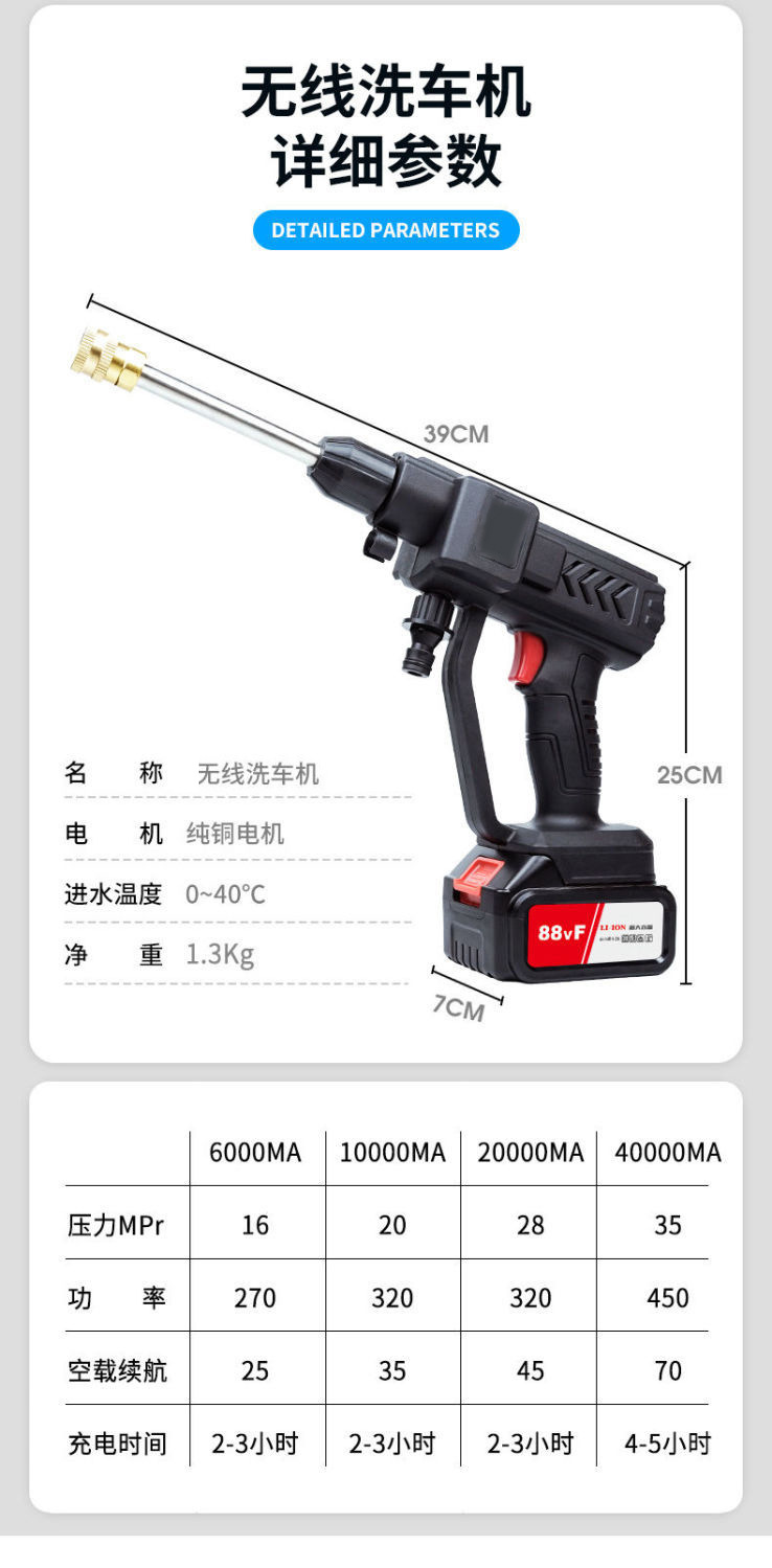 Инструмент для мойки автомобилей, автомойка, мощная литиевая батарея, портативная мойка высокого давления, водяной пистолет, перезаряжаемая портативная мойка высокого давления.