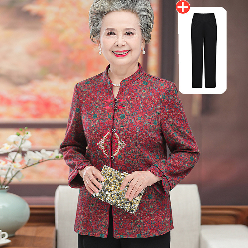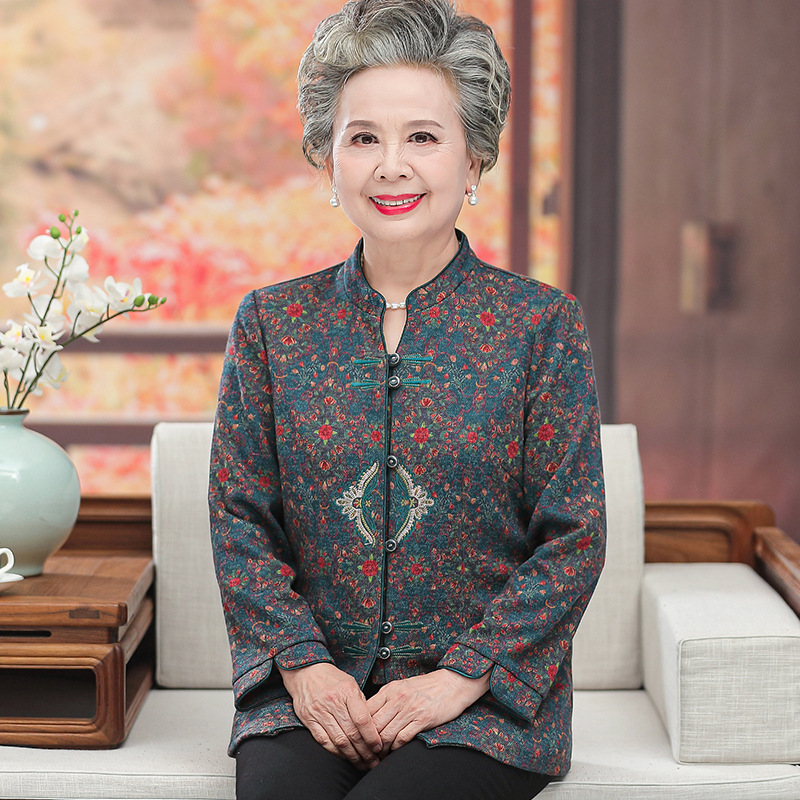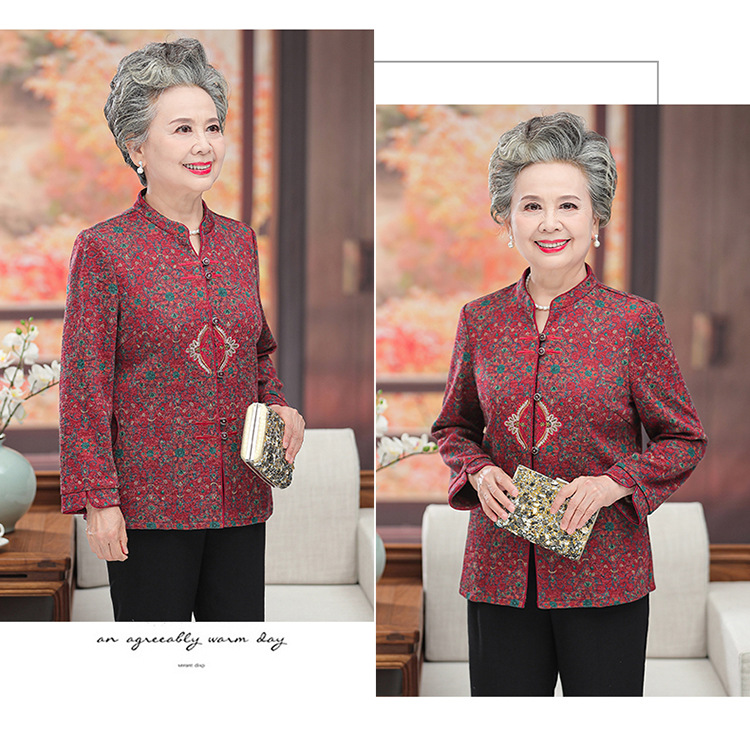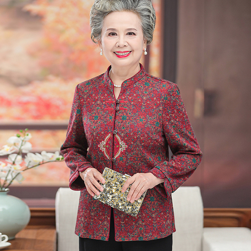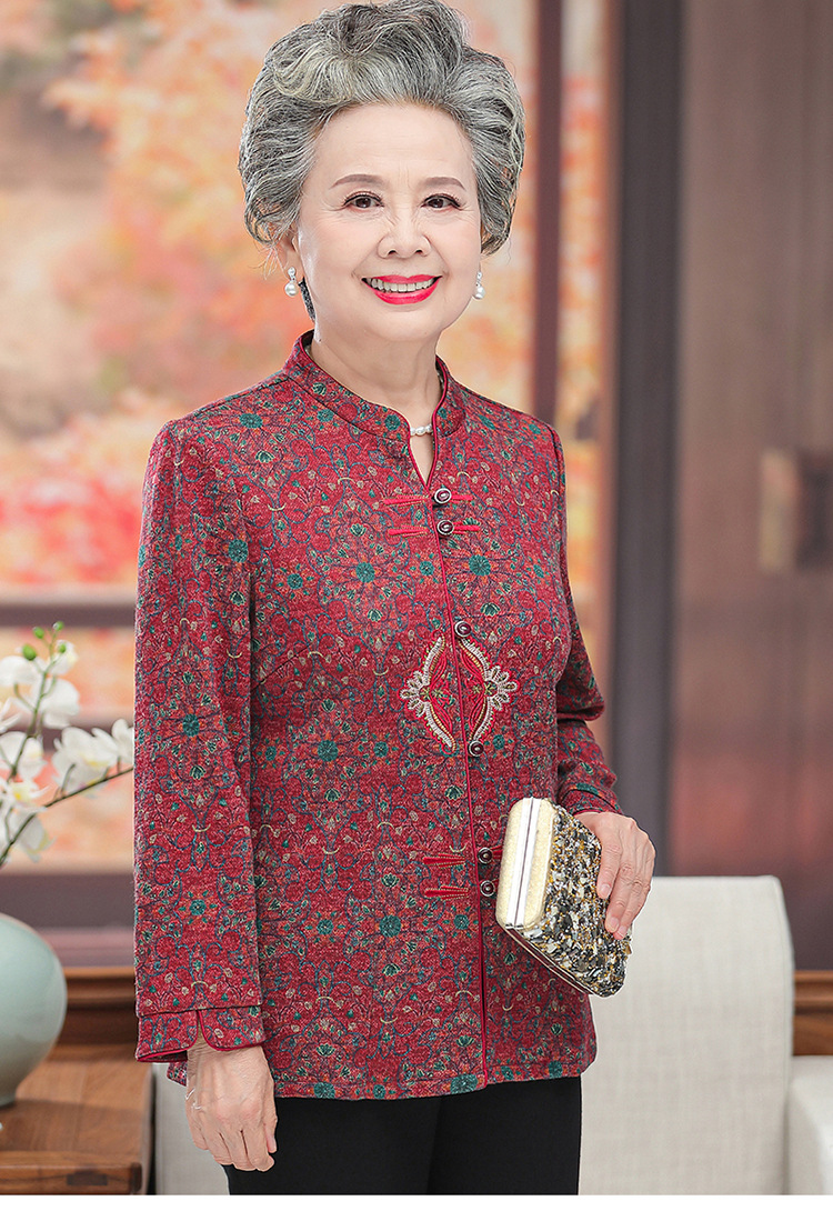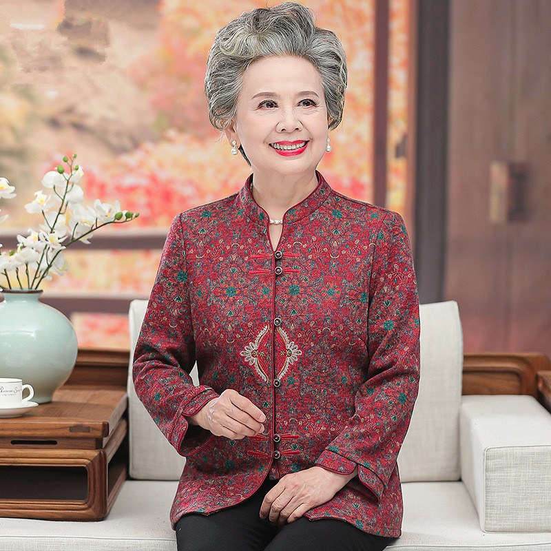 Одежда для женщин среднего и пожилого возраста, весенне-осенняя одежда для бабушек, праздничная рубашка с длинными рукавами для мамы, рубашка для счастливой свекрови, одежда для старушек