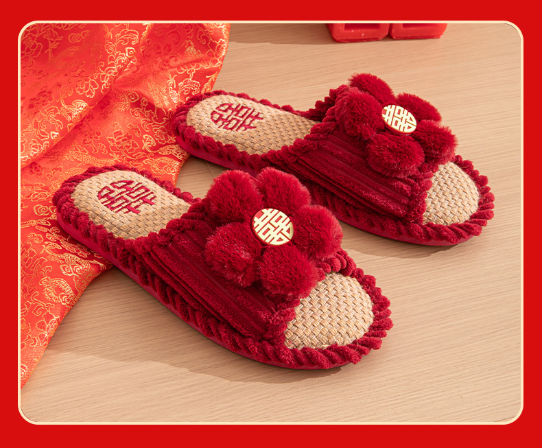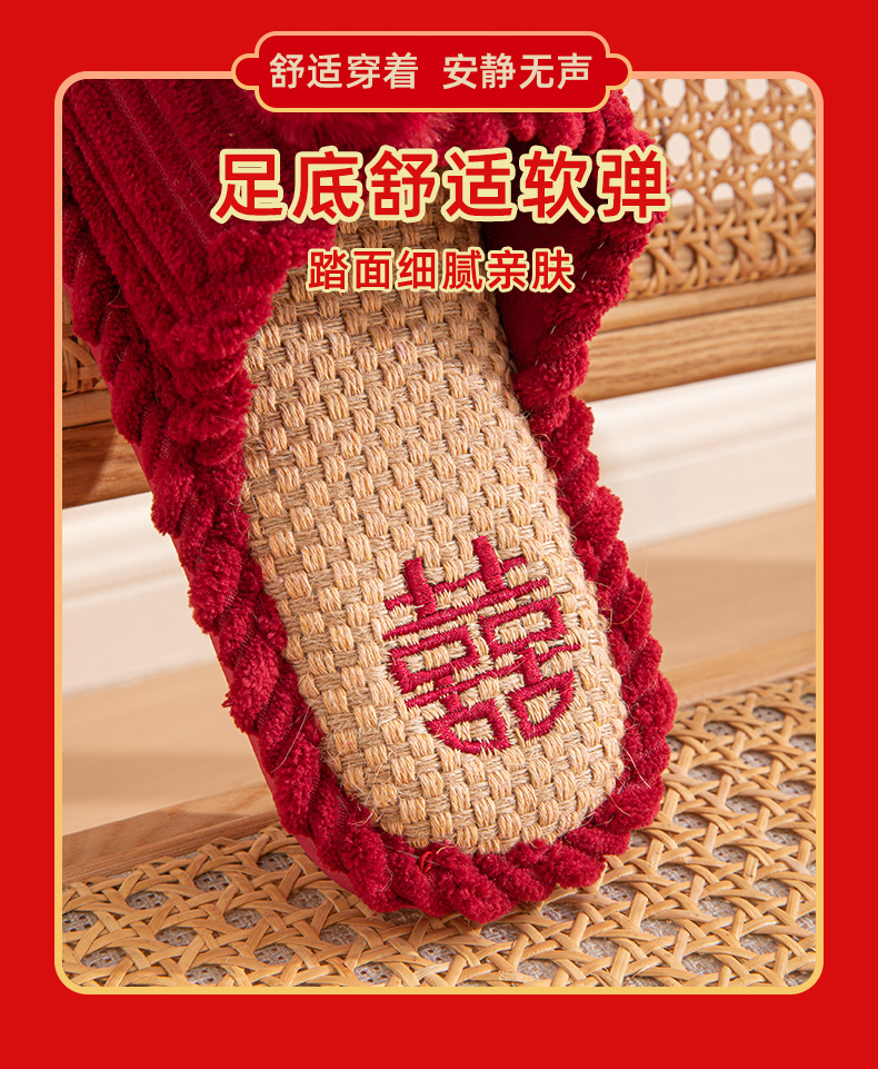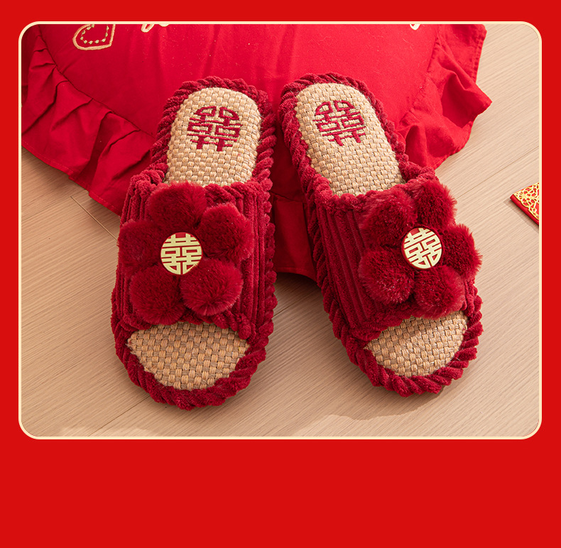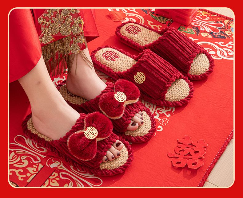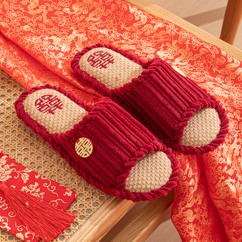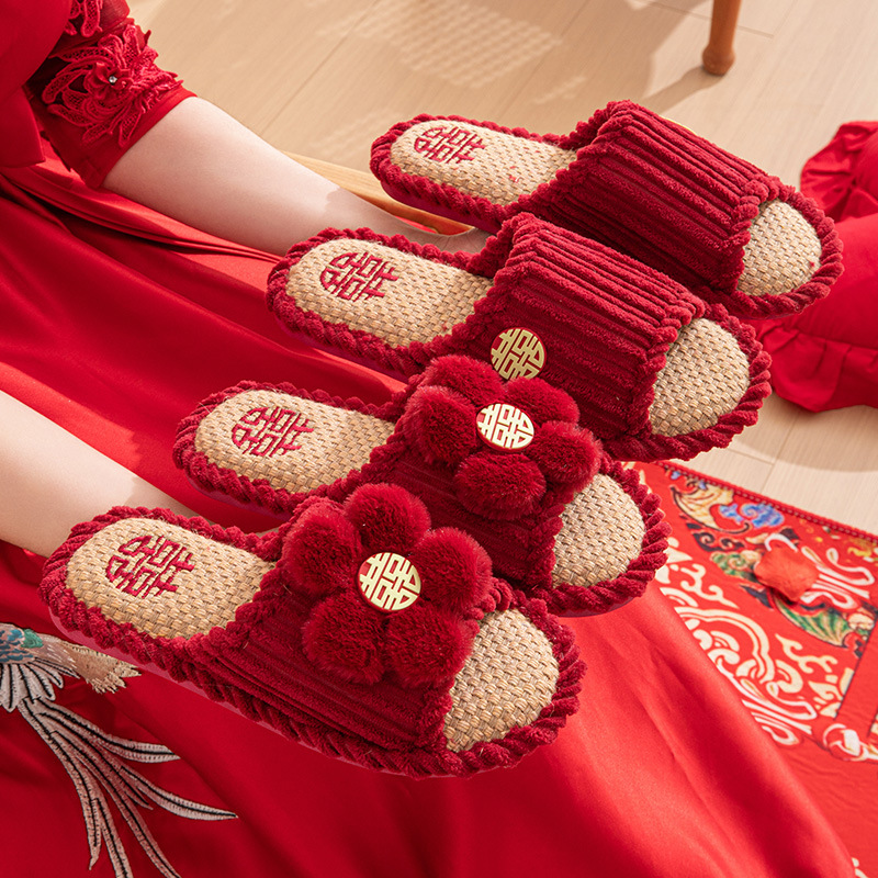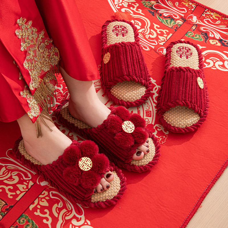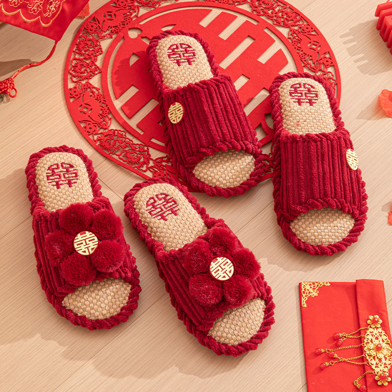 Льняные свадебные тапочки, красные, праздничные, для дома, нескользящие, для пары, жениха и невесты, молодоженов, весенне-осенние тапочки