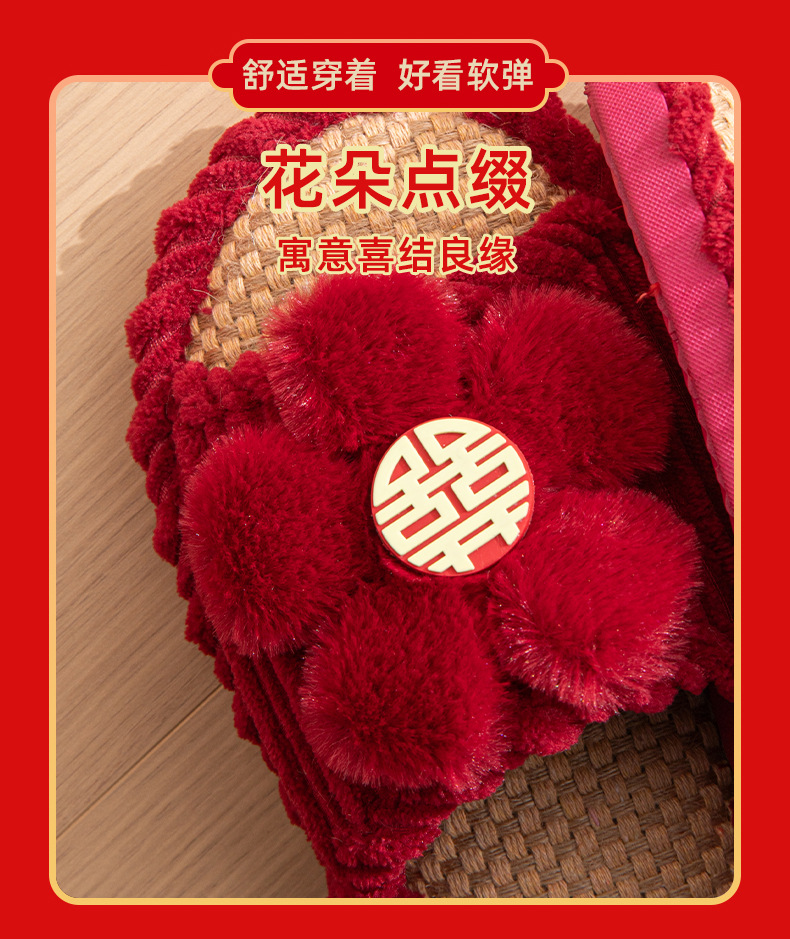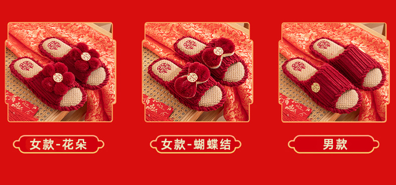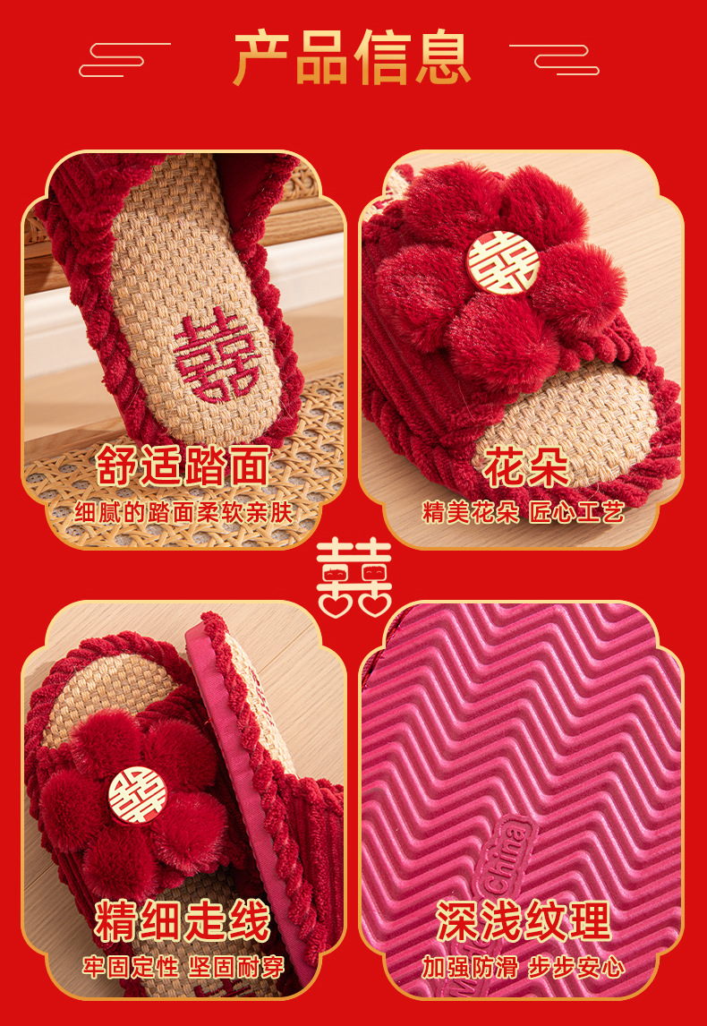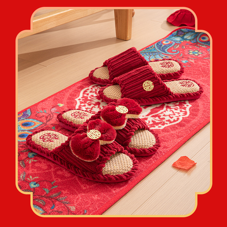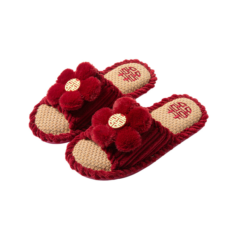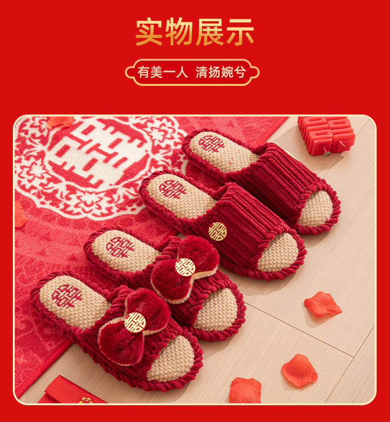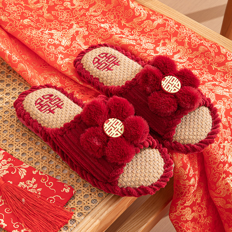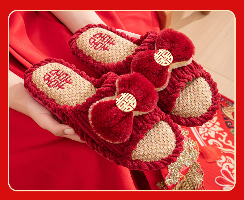 Льняные свадебные тапочки, красные, праздничные, для дома, нескользящие, для пары, жениха и невесты, молодоженов, весенне-осенние тапочки