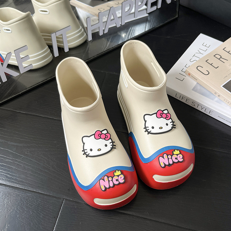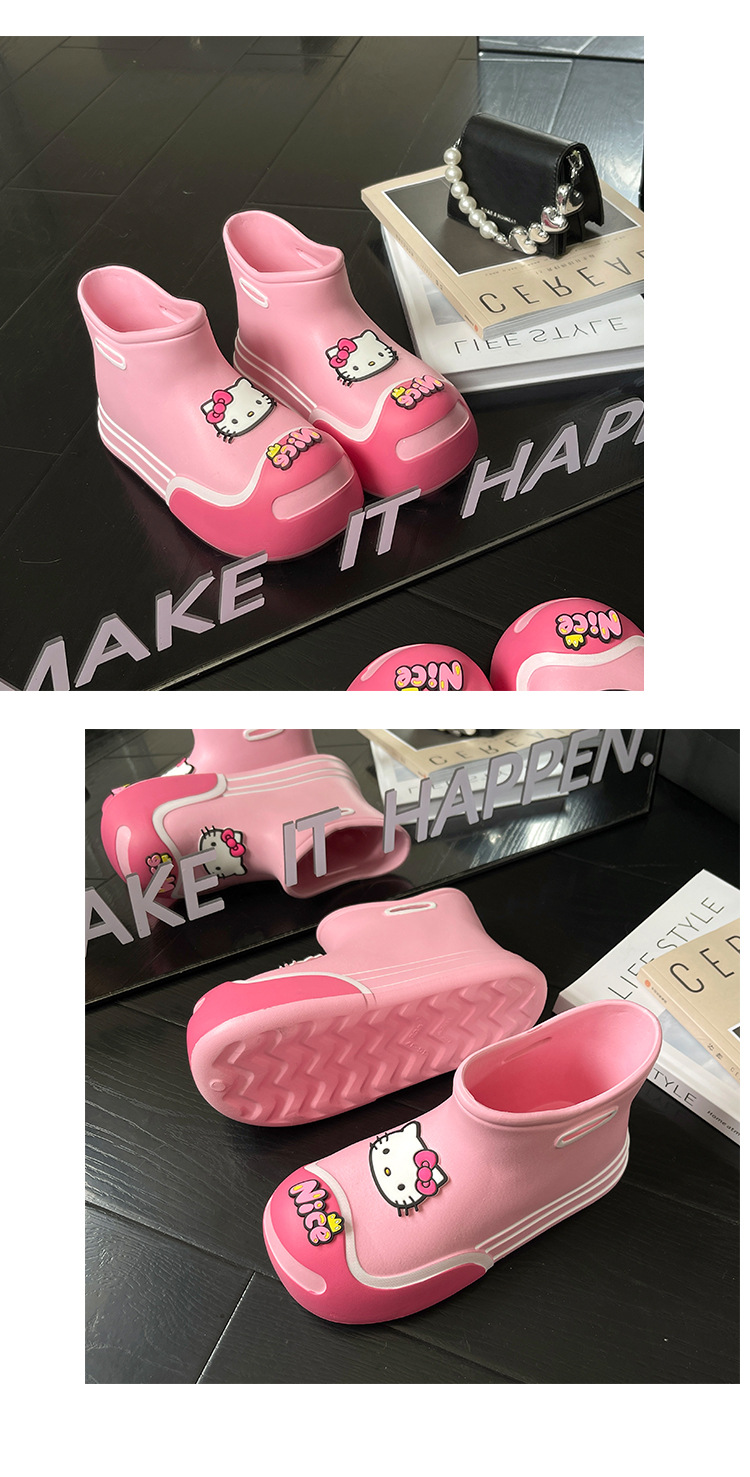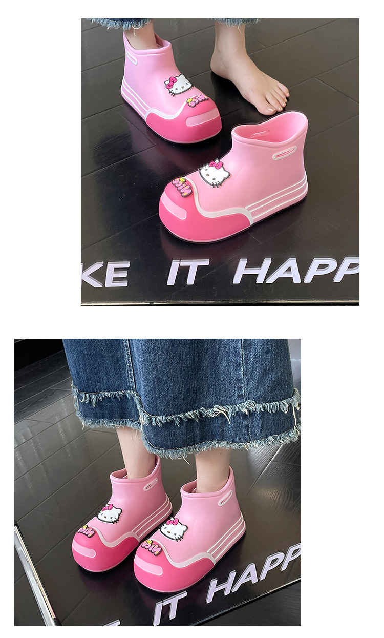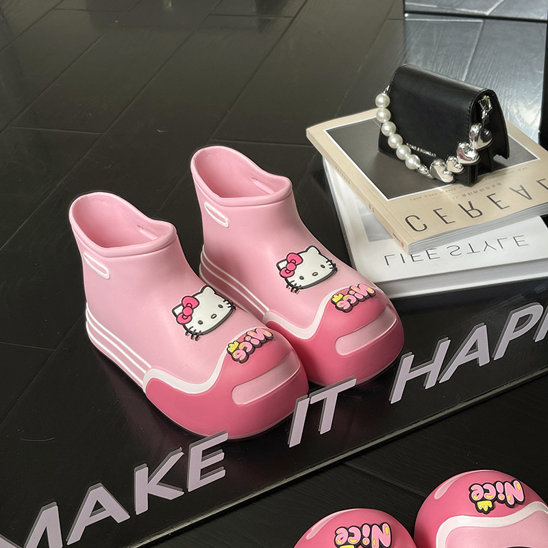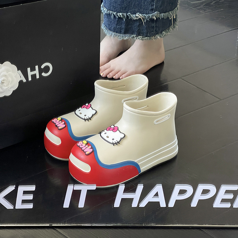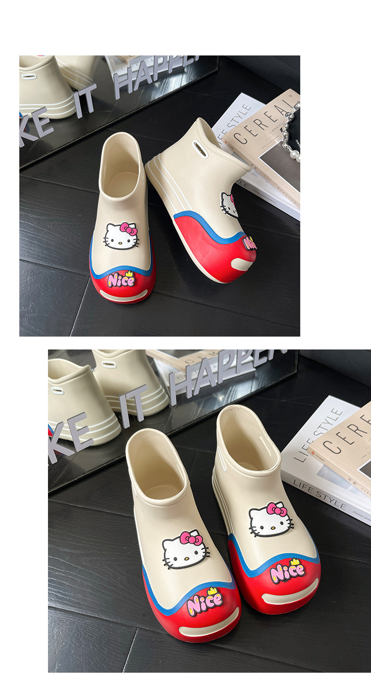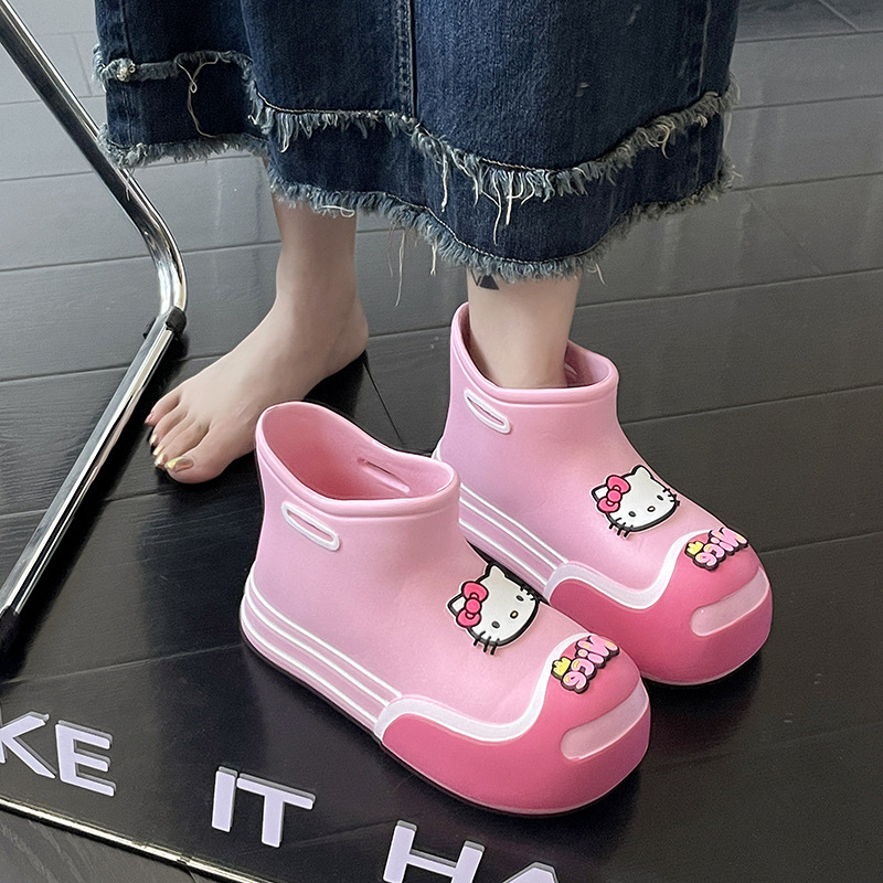 Дождевые сапоги весна и лето, новые водонепроницаемые нескользящие модные женские универсальные повседневные милые студенческие резиновые сапоги среднего и короткого размера с героями мультфильмов