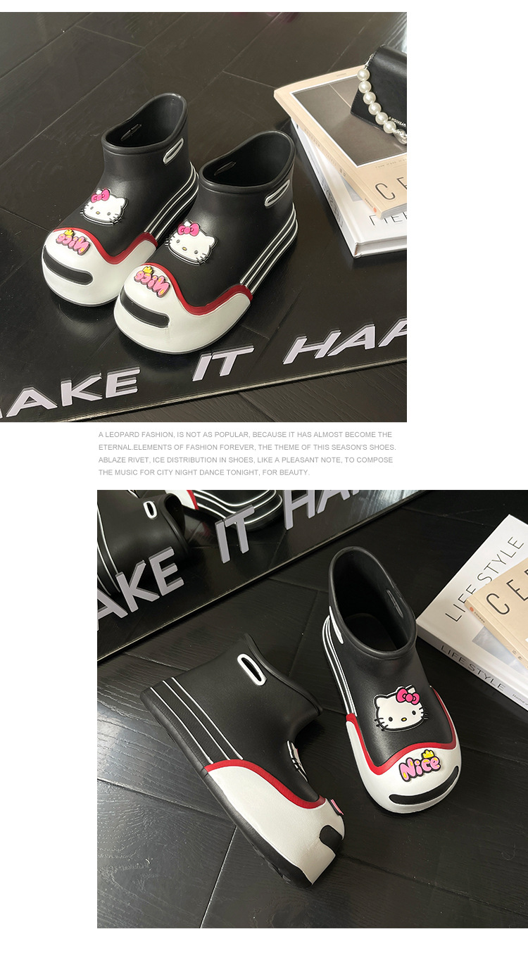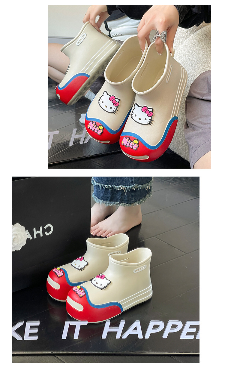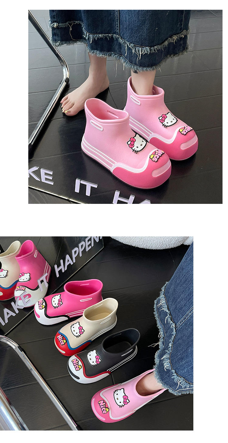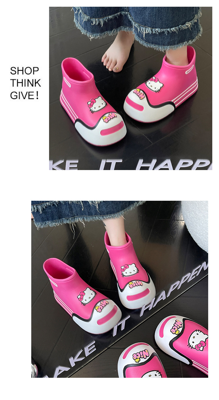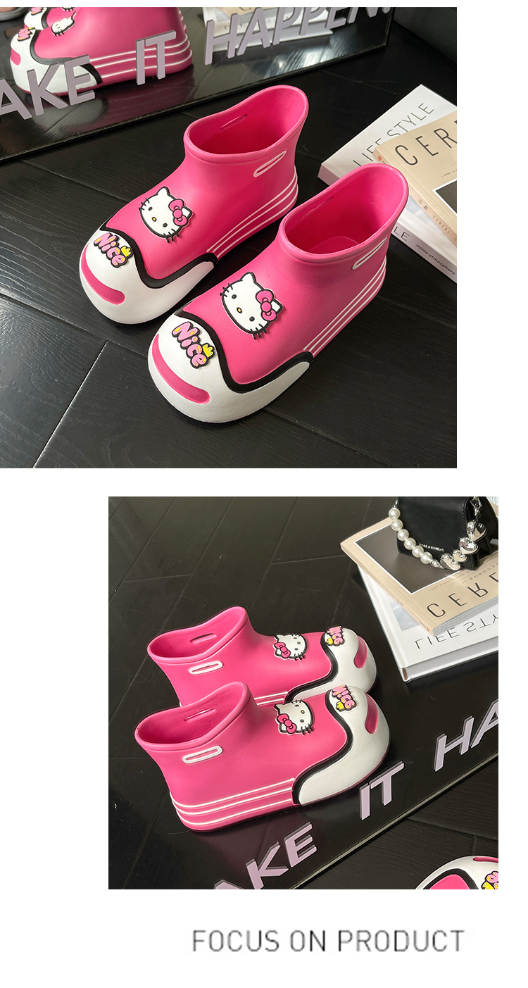 Дождевые сапоги весна и лето, новые водонепроницаемые нескользящие модные женские универсальные повседневные милые студенческие резиновые сапоги среднего и короткого размера с героями мультфильмов