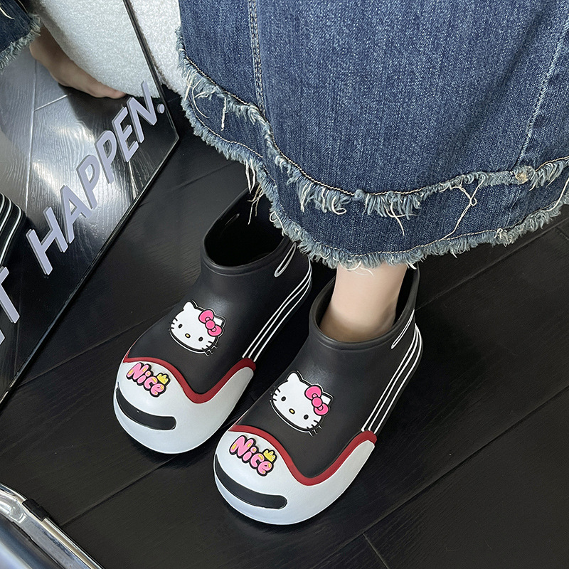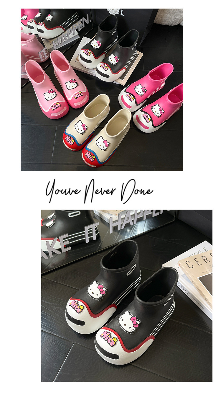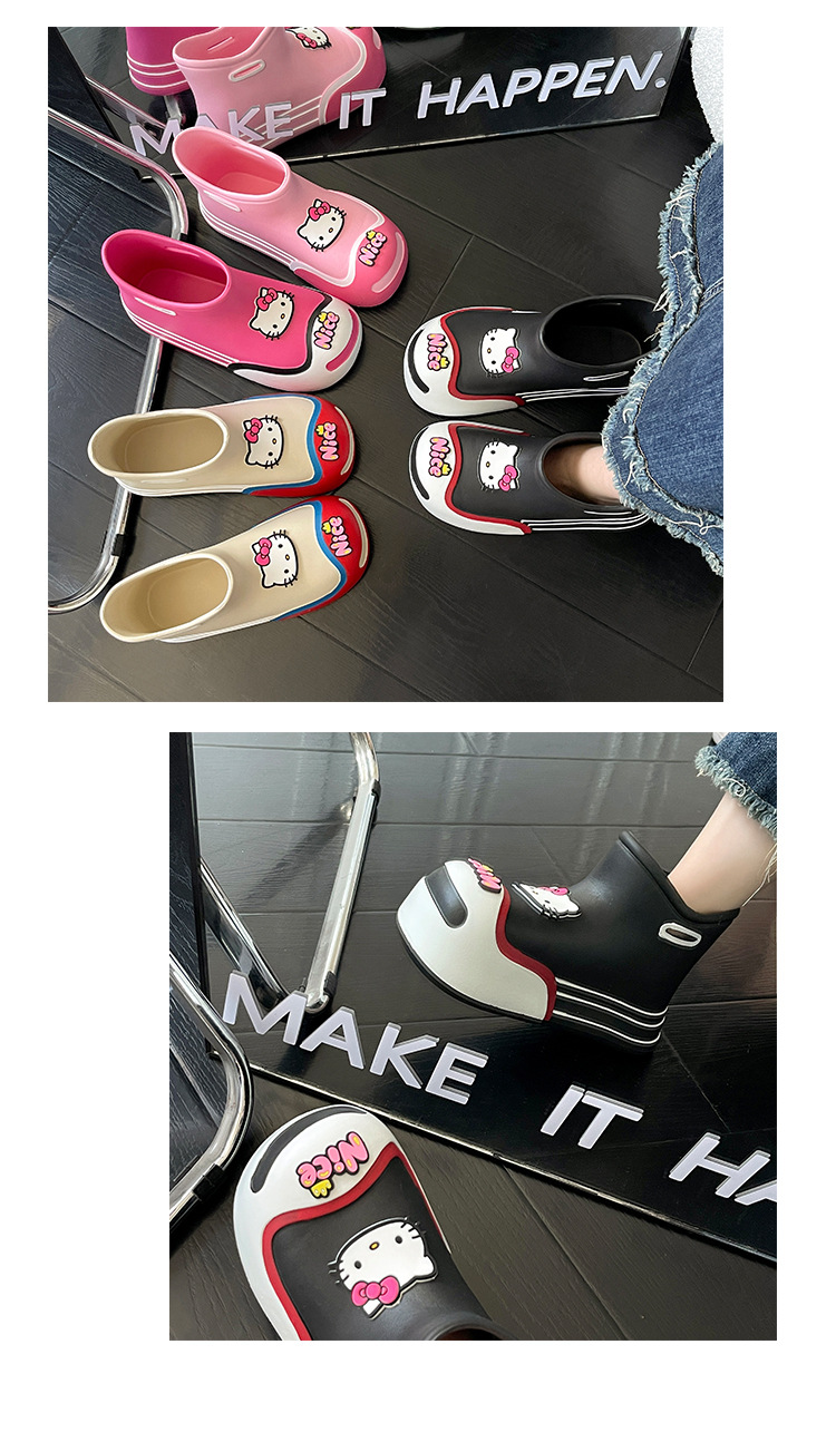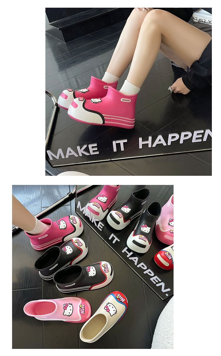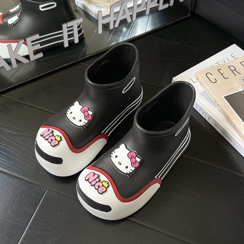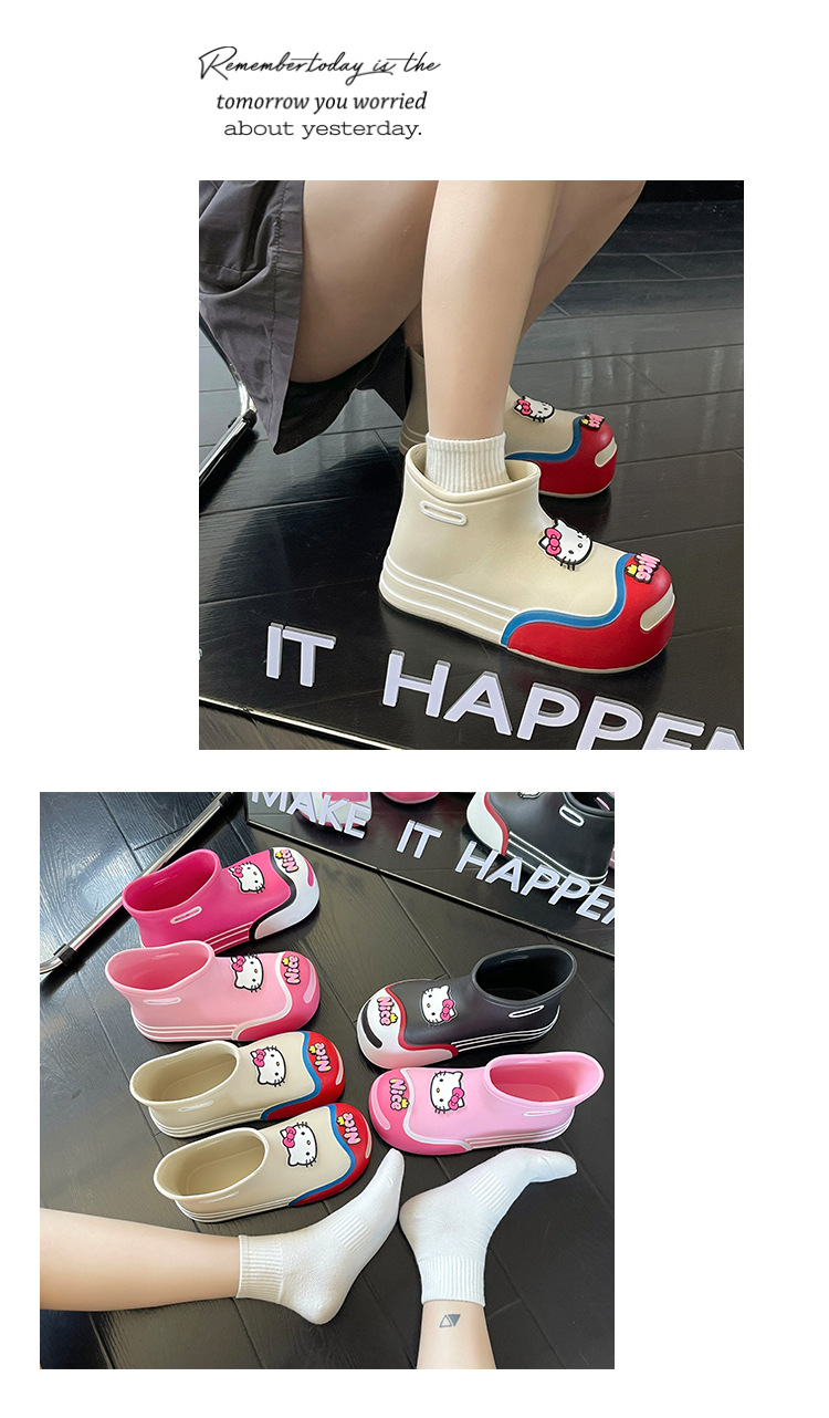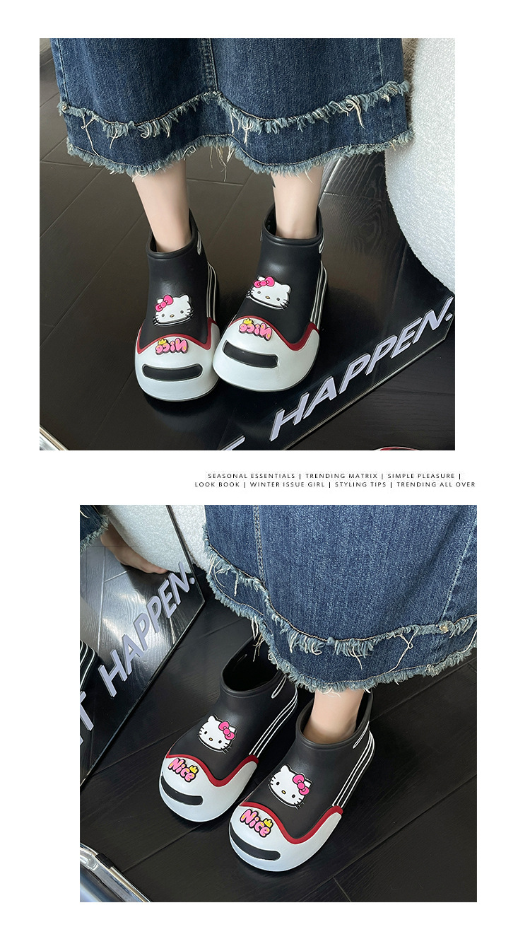 Дождевые сапоги весна и лето, новые водонепроницаемые нескользящие модные женские универсальные повседневные милые студенческие резиновые сапоги среднего и короткого размера с героями мультфильмов