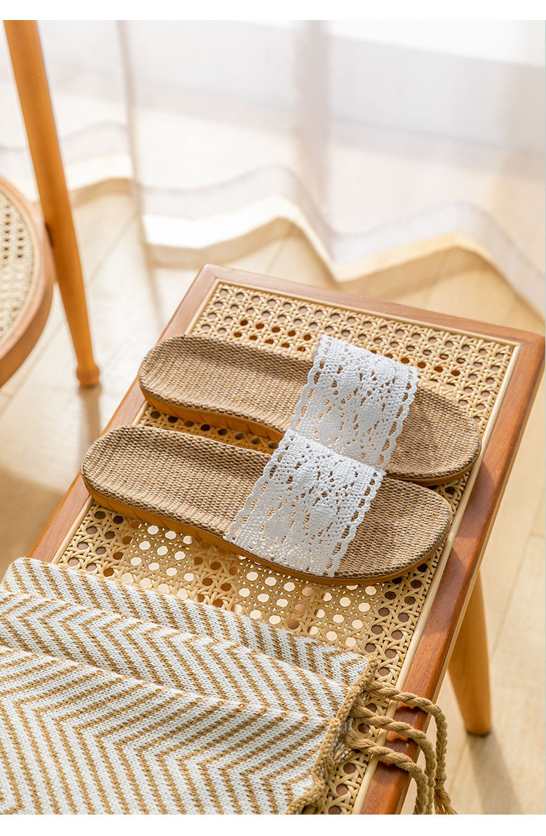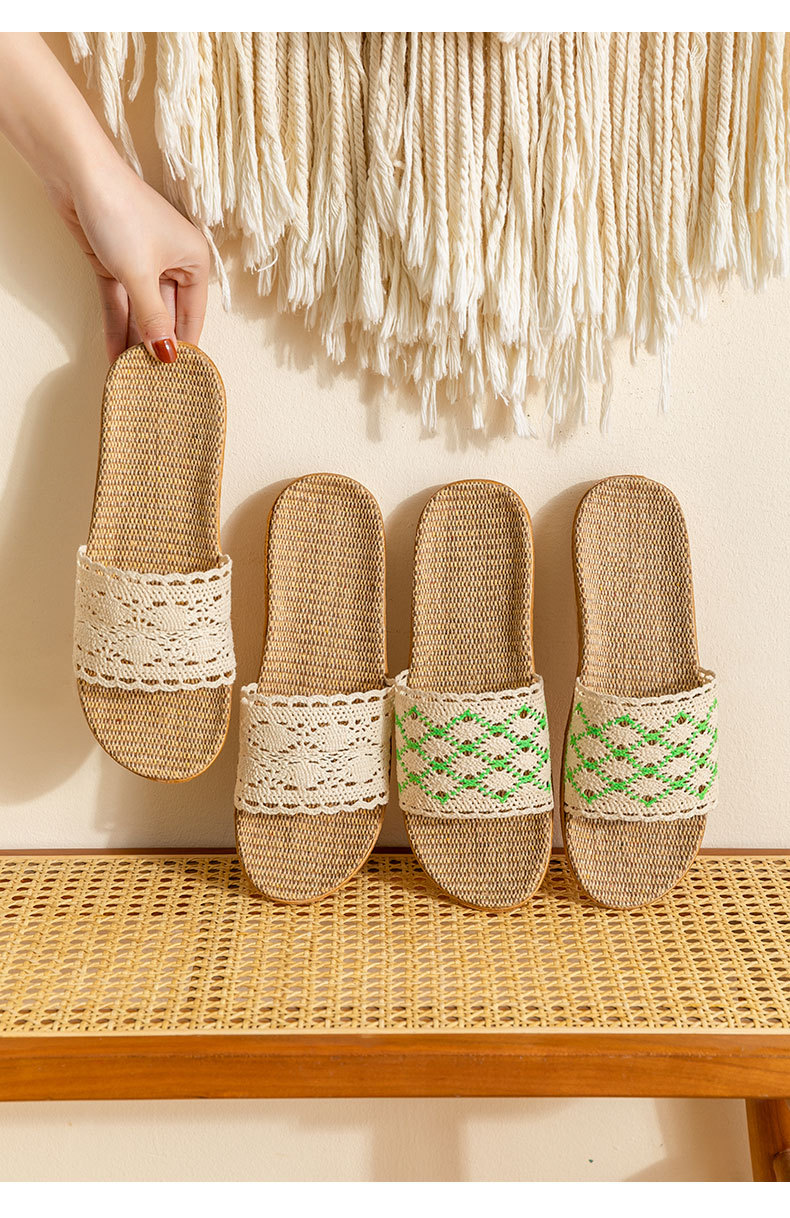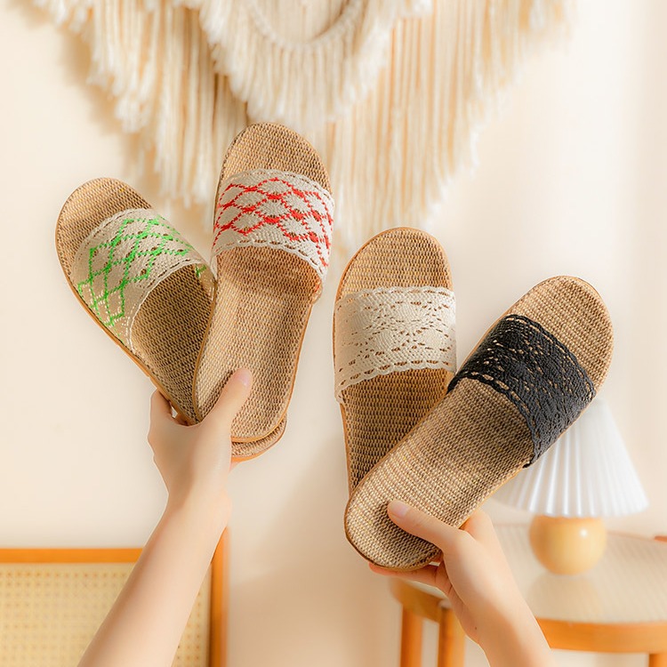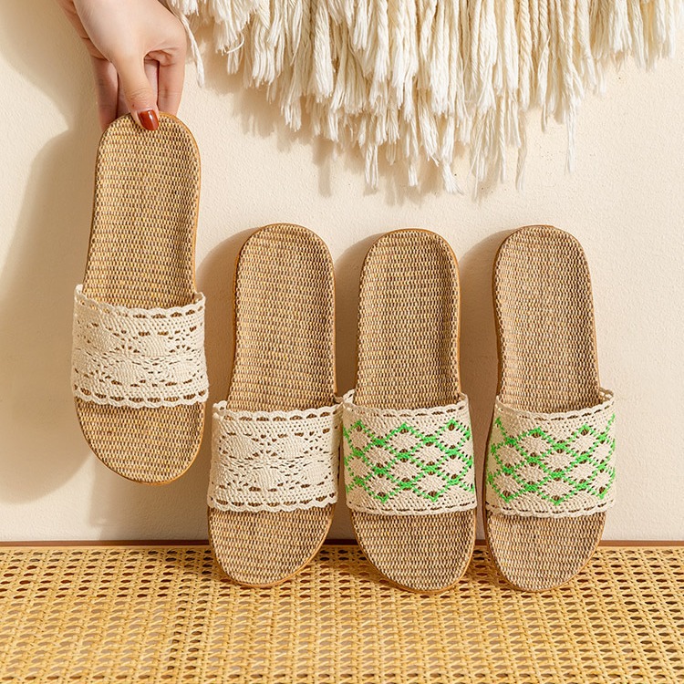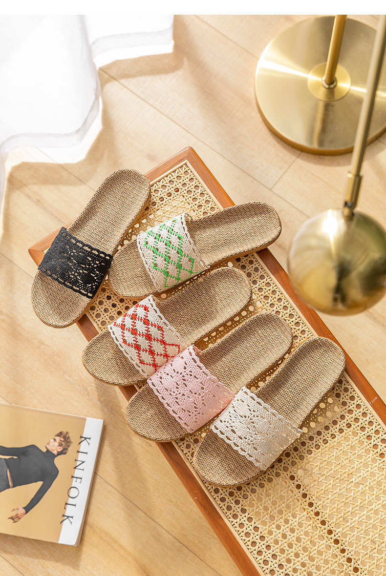 Летние кружевные женские тапочки интернет-знаменитостей, домашние Нескользящие напольные домашние льняные тапочки, женские домашние летние