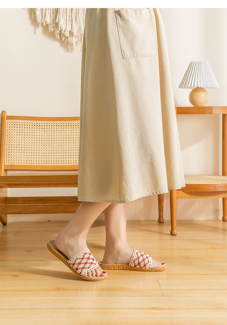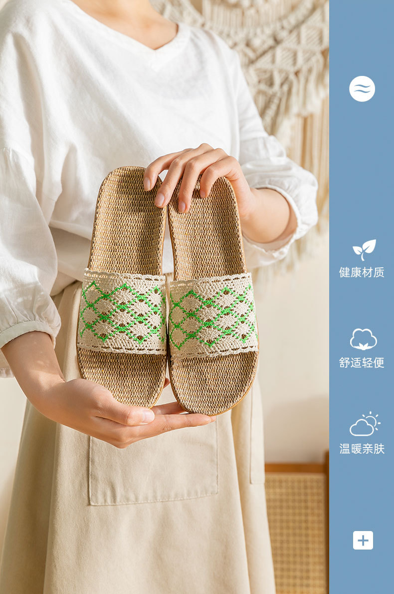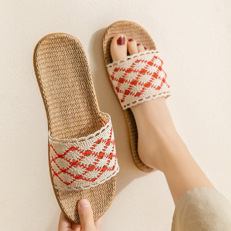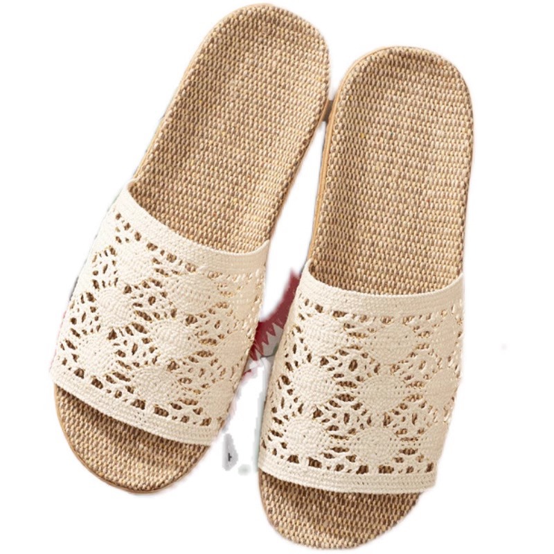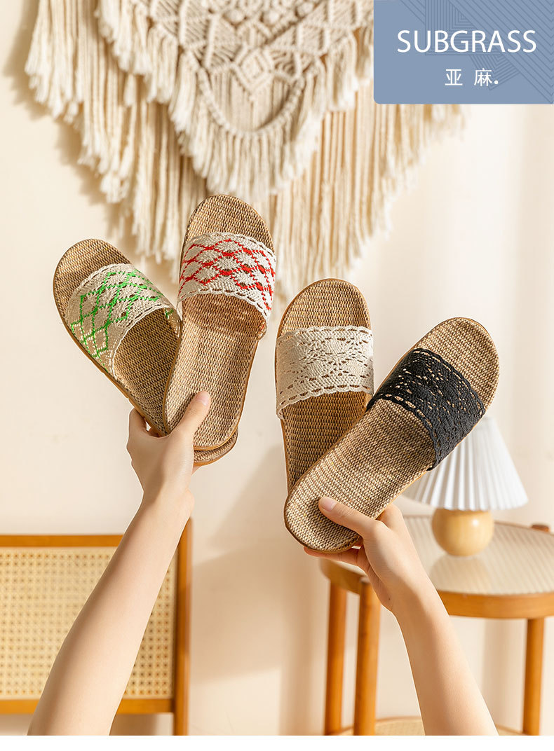 Летние кружевные женские тапочки интернет-знаменитостей, домашние Нескользящие напольные домашние льняные тапочки, женские домашние летние