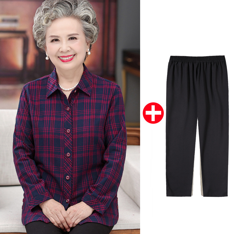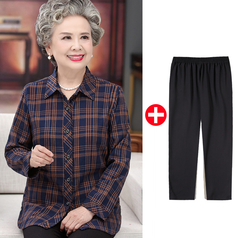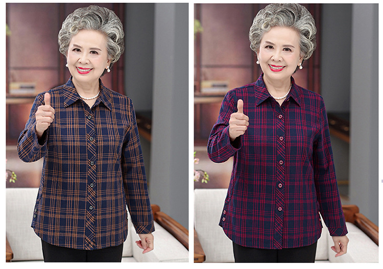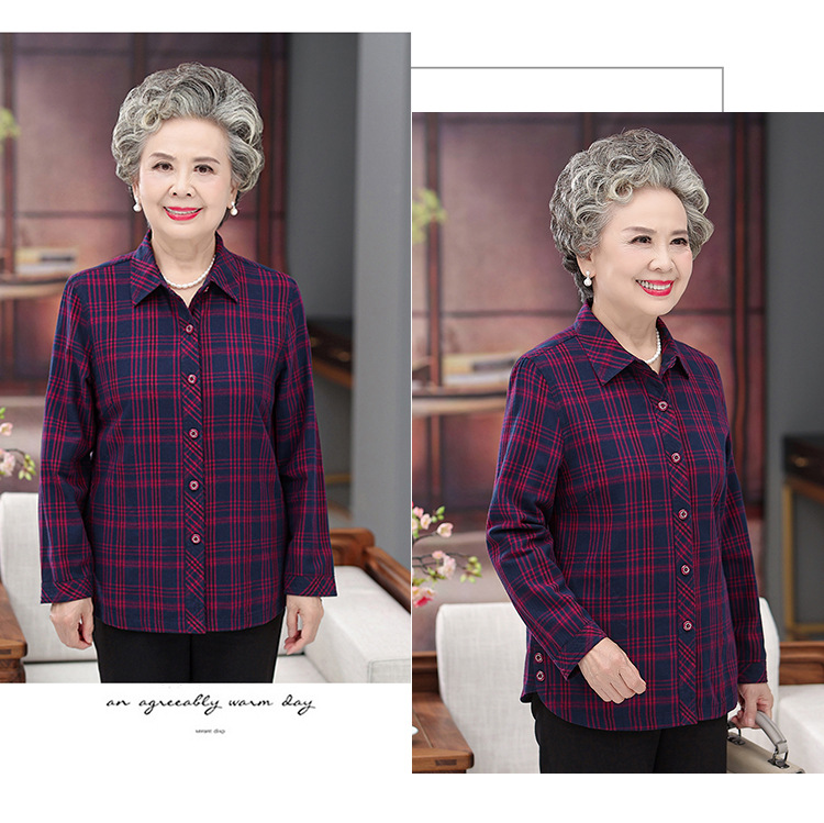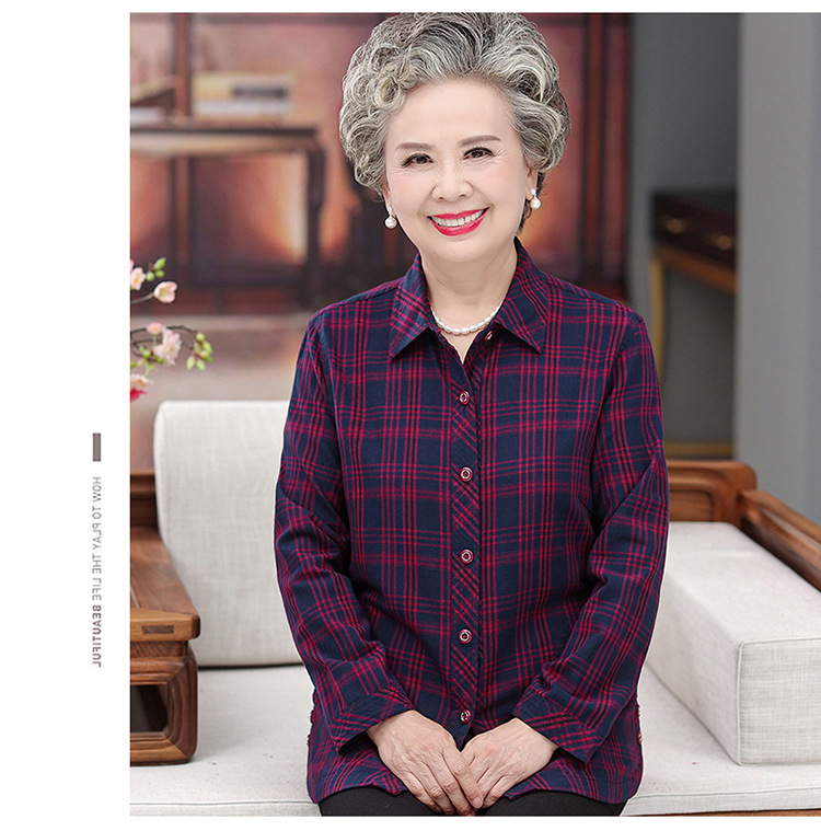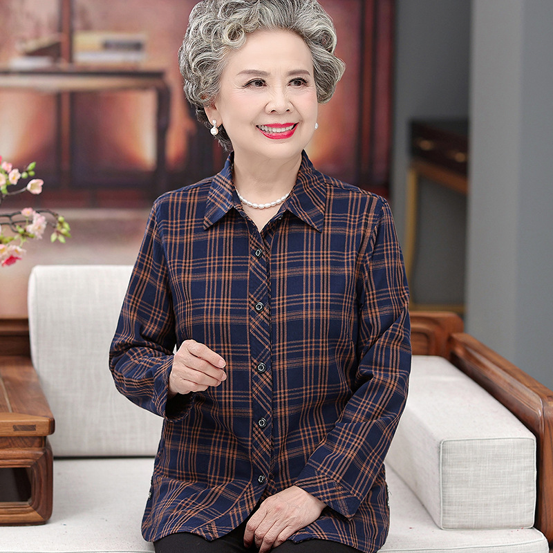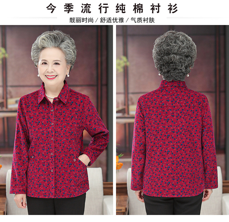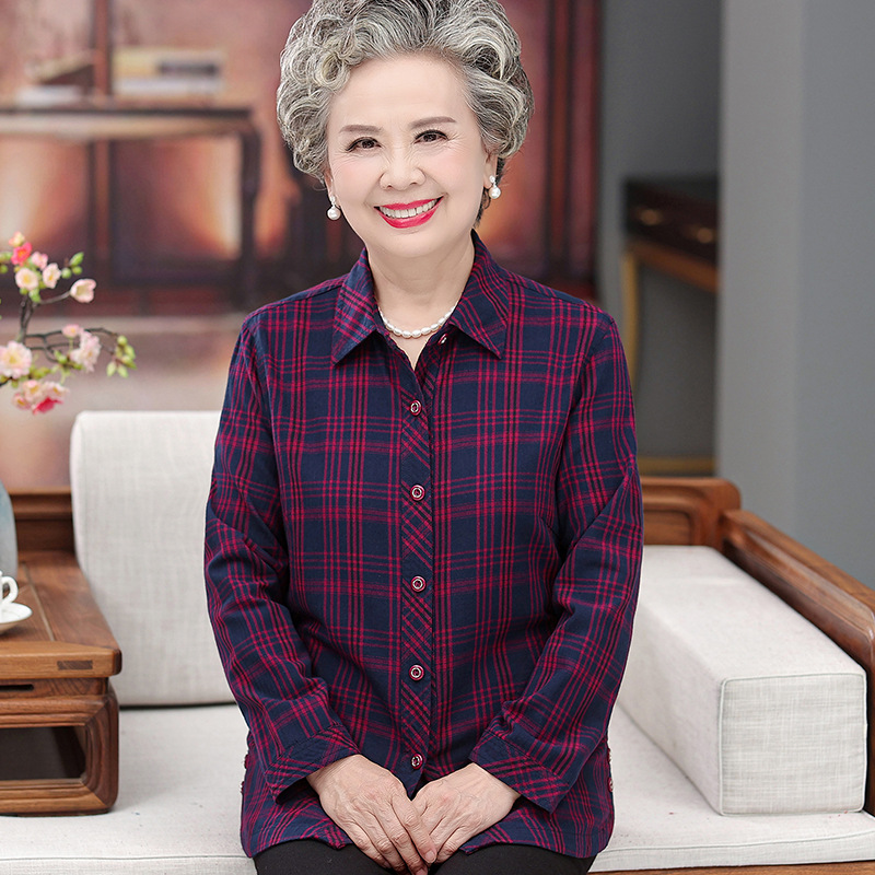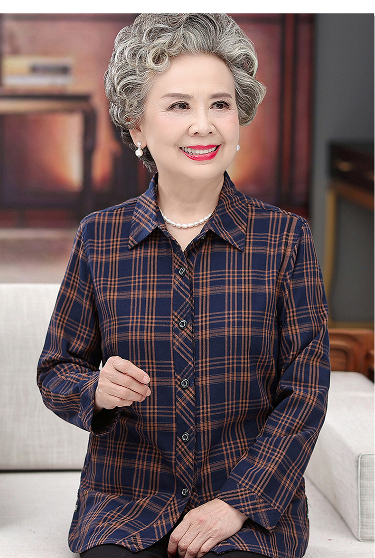 Рубашка из 100% хлопка для пожилых людей, женская рубашка с длинными рукавами для мамы, женское весеннее и осеннее пальто, весенний хлопковый топ для бабушки