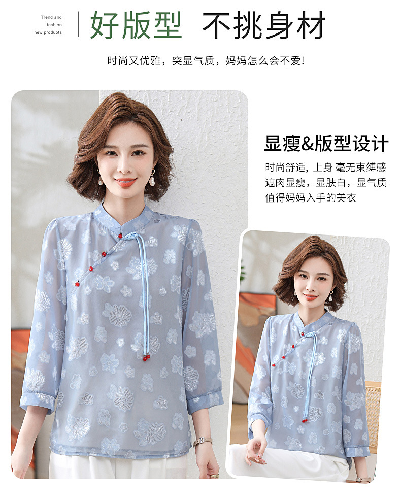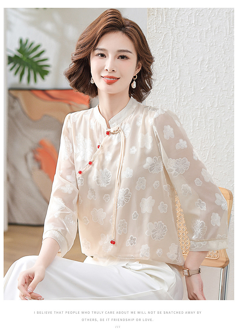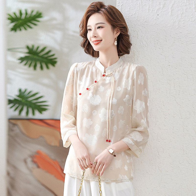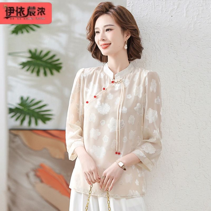 Новая летняя футболка с короткими рукавами для мамы, рукавами три четверти, в национальном стиле, элегантная белая рубашка для женщин средних лет, 40 лет