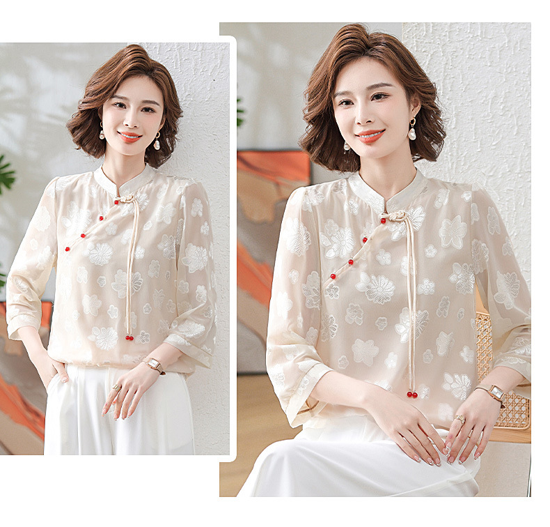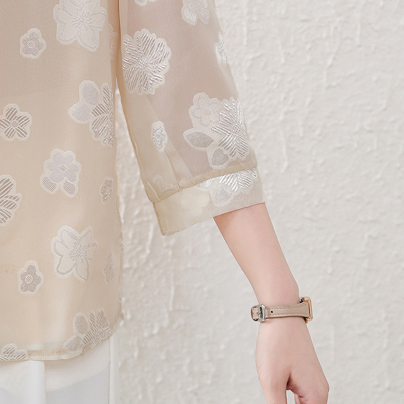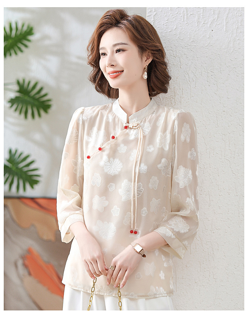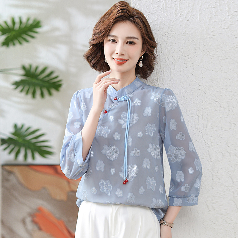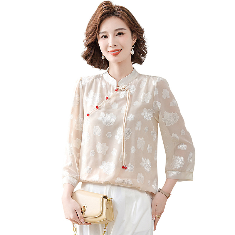 Новая летняя футболка с короткими рукавами для мамы, рукавами три четверти, в национальном стиле, элегантная белая рубашка для женщин средних лет, 40 лет