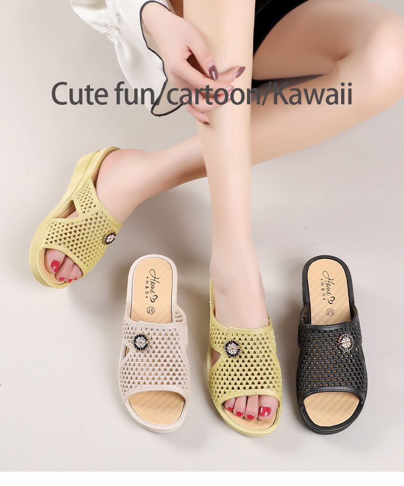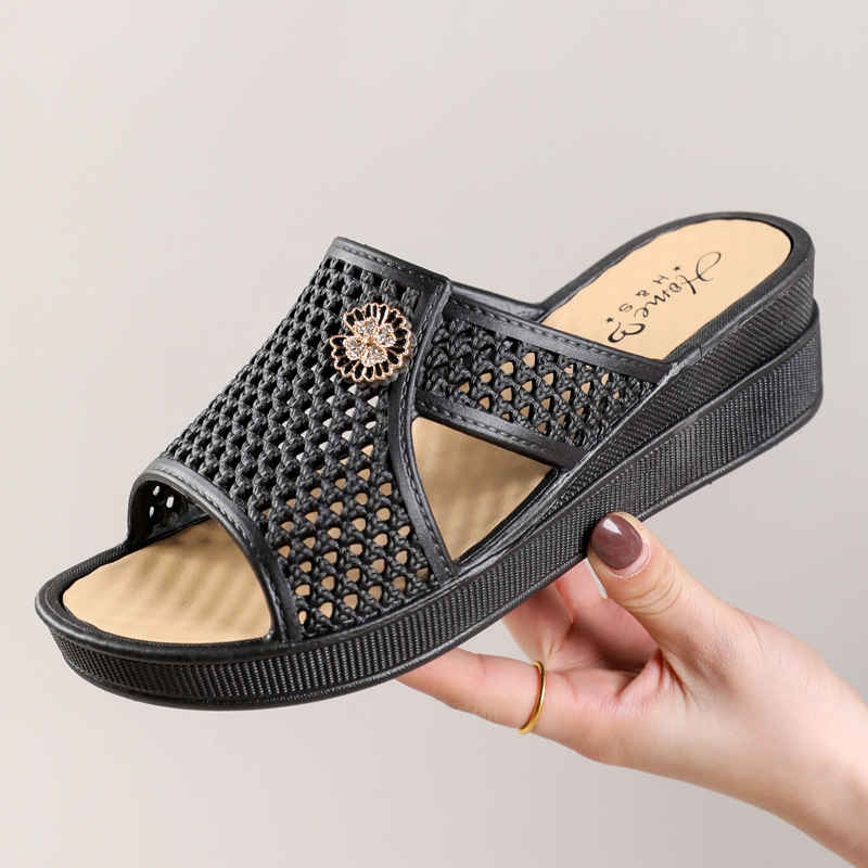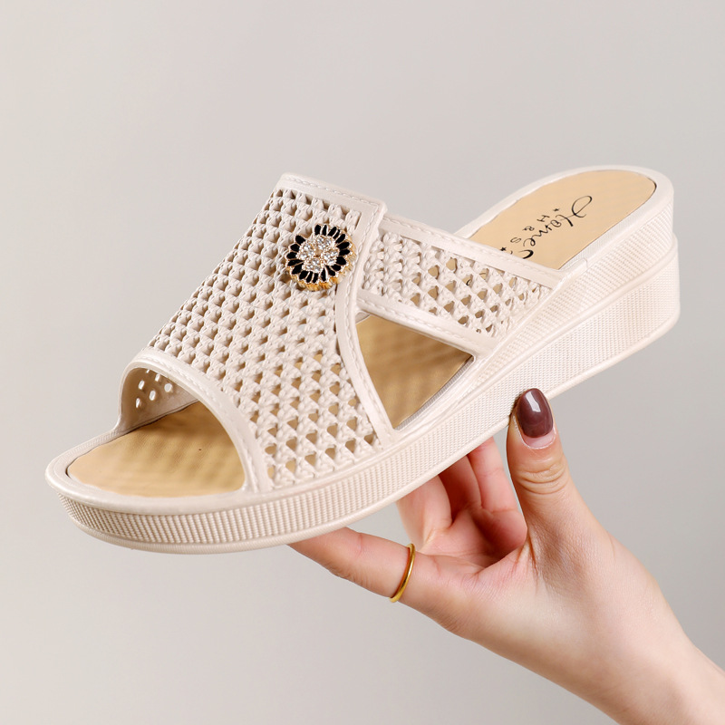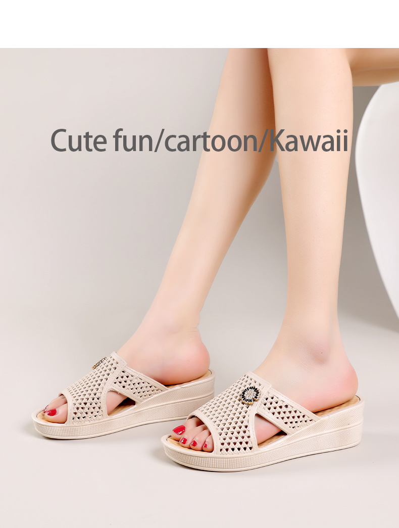 Новые женские босоножки на высоком каблуке 2025 года, летние домашние шлепанцы на толстой подошве, нескользящие, модные пляжные тапочки для ношения в помещении и на улице