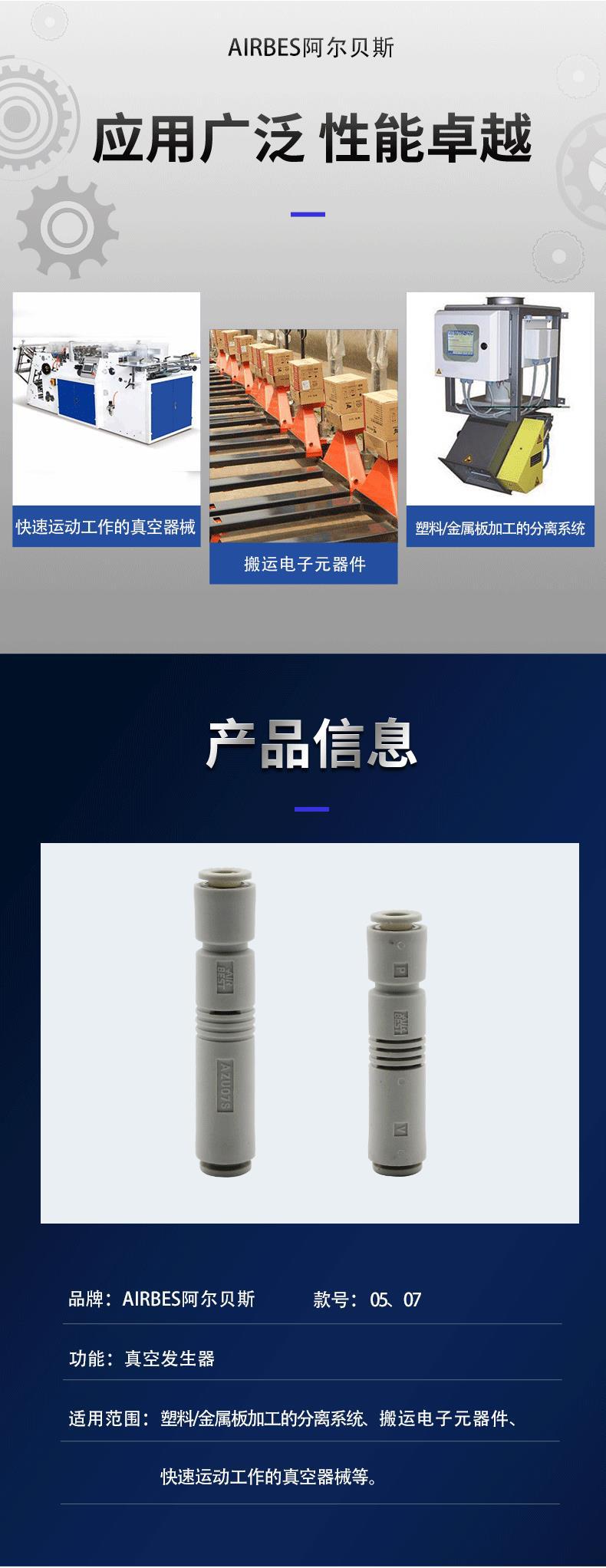 AIRBEST Albes AZU05S/05L/07S/07L Малый быстроходный трубопровод вакуумный генератор