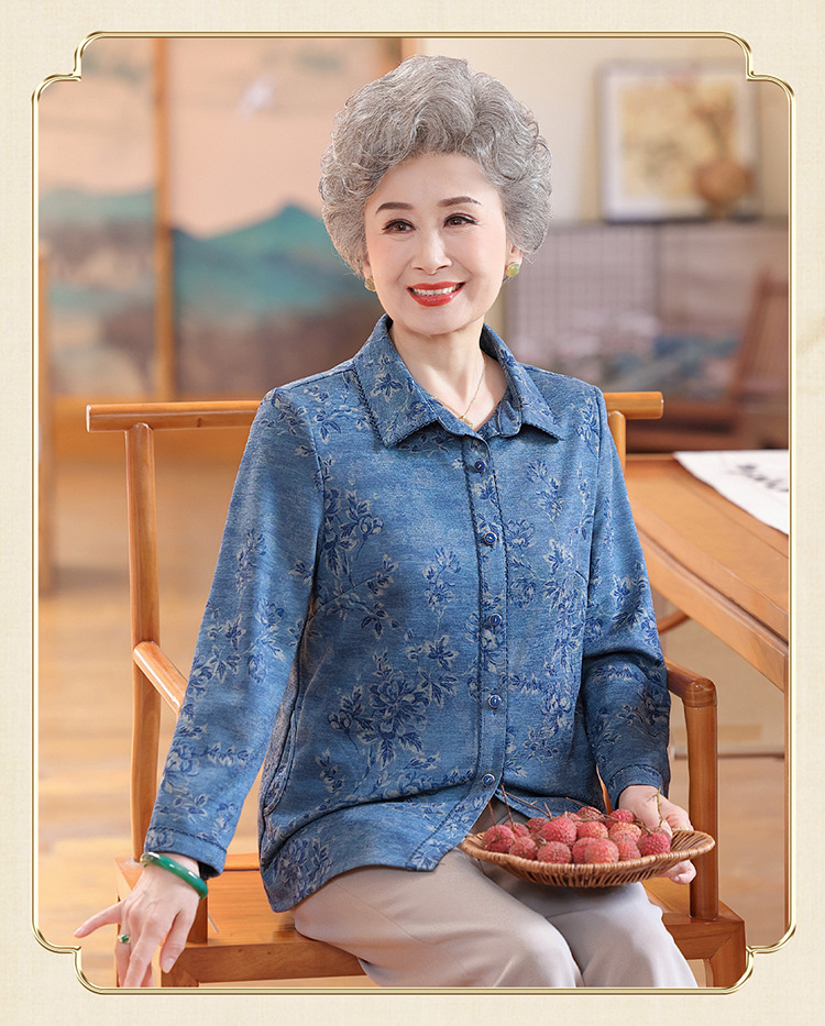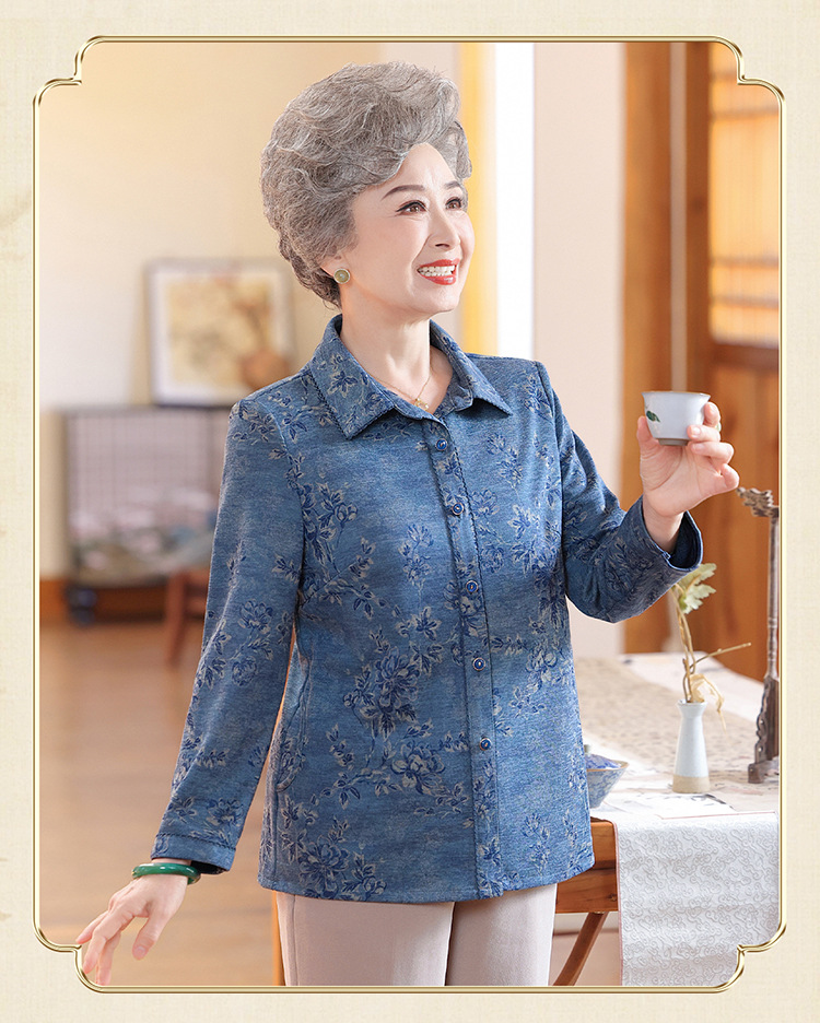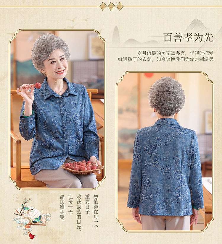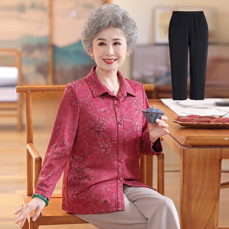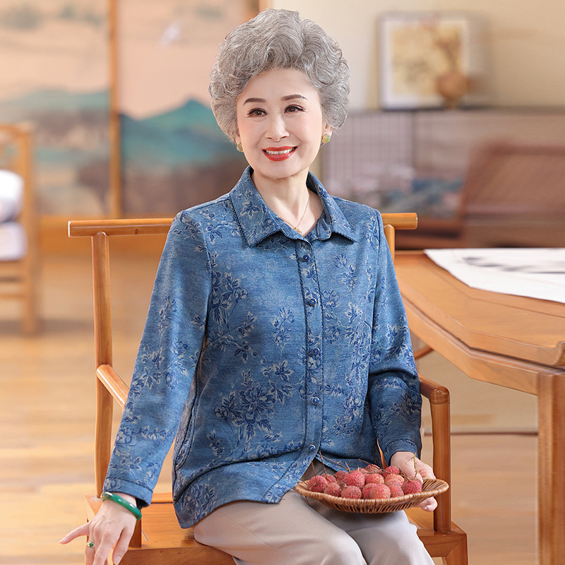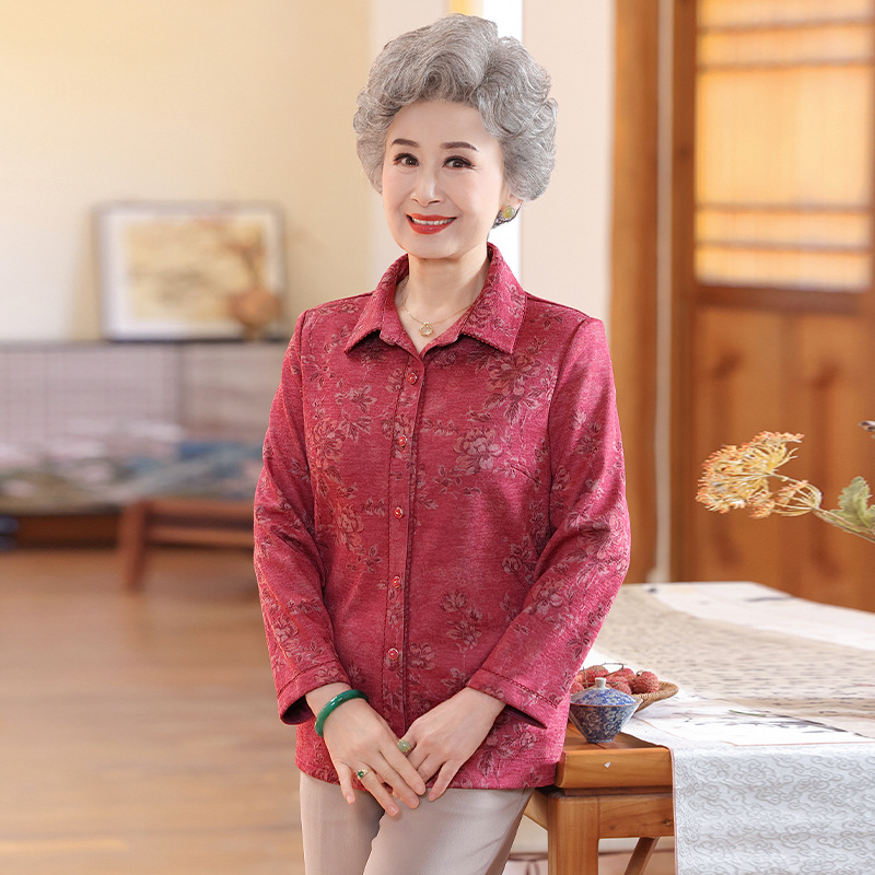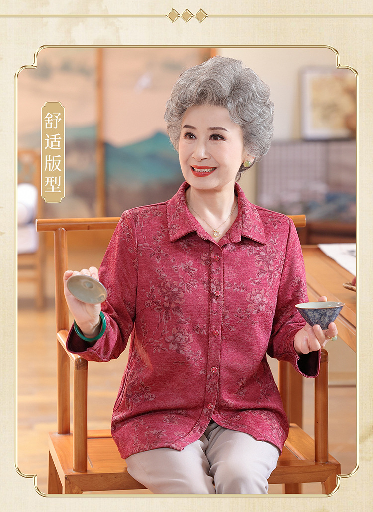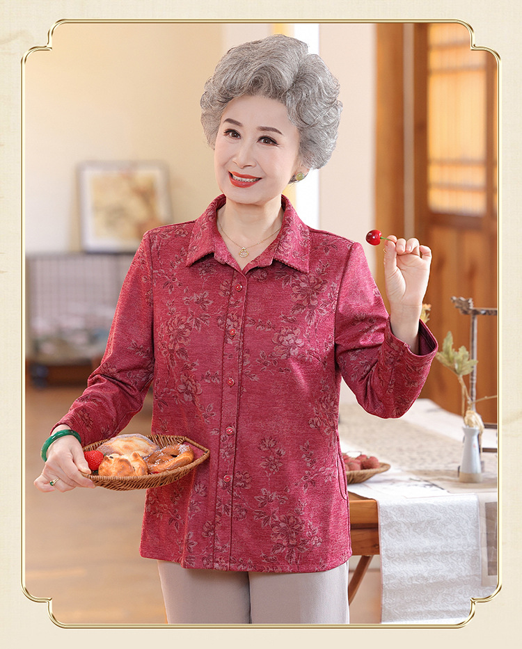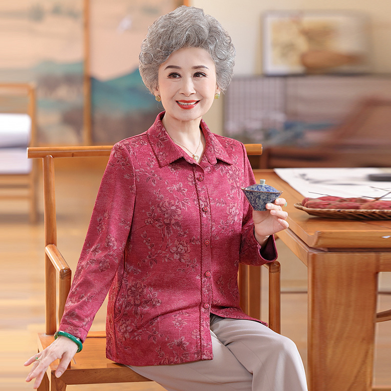 Бабушкина Весенняя новая рубашка для женщин среднего и пожилого возраста, тонкое пальто с длинными рукавами для мам, весенне-осенняя одежда для пожилых женщин