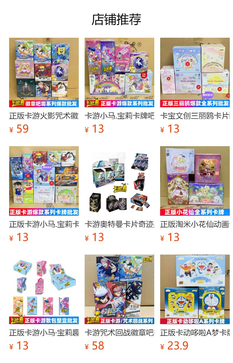 лист★Новая версия магического набора: 27 бомб☆В коробке 36 упаковок.☆Розничная цена: 1 юань за упаковку; лист★Волшебный пакет ограниченного выпуска, 25 пуль☆Вся коробка содержит 36 упаковок.☆Розничная цена 1 юань/упаковка; лист★Пакет Lingxi в ограниченном выпуске, 25 пуль☆Всего в коробке 30 упаковок.☆Розничная цена 2 юаня/упаковка.; Новая версия хрустальной алмазной сумки Ye Luoli, 14 пуль★Всего в коробке 20 упаковок.☆Розничная цена 5 юаней/упаковка.; Сумка ограниченного выпуска Ye Luoli Crystal Diamond Bag 13 Bullets★Всего в коробке 20 упаковок.☆Розничная цена 5 юаней/упаковка.; Новая версия «Мечты» И Луоли Ченсин, часть 4.☆Всего в коробке 20 упаковок.☆Розничная цена 5 юаней/упаковка.; Бомбы ограниченного выпуска Ye Luoli Chenxing Dream 3☆Всего в коробке 20 упаковок.☆Розничная цена 5 юаней/упаковка.; Изысканная подарочная коробка Ye Luoli №4☆Розничная цена 199 юаней/коробка.; Новая версия оригинального специального издания «2 бомбы древнего и современного очарования».★Всего в коробке 10 упаковок.☆Розничная цена 10 юаней/упаковка.☆5 листов/упаковка; Ye Luoli Dream Pack 13 бомб★Всего в коробке 18 упаковок.☆Розничная цена 10 юаней/упаковка.; 3 маленькие коробки ☆ Набор желаний Ye Luoli Star №6 ☆ Розничная цена: 20 юаней/маленькая коробка.; 6 маленьких коробок☆Набор желаний Ye Luoli Star №6☆Розничная цена: 20 юаней/маленькая коробка.; Новая версия Star Wish Pack №6.★ 1 большая коробка, всего 18 маленьких коробок.★Розничная цена 20 юаней/маленькая коробка; лист☆Гелевая ручка ограниченного выпуска Contract Edition 1☆1 большая коробка по 12 штук (розничная цена 10 юаней за штуку); лист☆Новая версия пуль Elf Pen 2.☆1 большая коробка по 12 штук (розничная цена 10 юаней за штуку); 5 упаковок — квадратная карточная пленка Ye Luoli☆100 листов в упаковке, всего 500 листов.☆Рекомендуемая розничная цена 5 юаней/упаковка.; 5 упаковок — длинная карточная пленка Ye Luoli☆100 листов в упаковке, всего 500 листов.☆Рекомендуемая розничная цена 5 юаней/упаковка.; 2 книги★Оригинальный альбом с квадратными карточками серии «Сердце» Ие Луоли☆Розничная цена 10 юаней/книга.; 5 книг★Оригинальный альбом с квадратными карточками серии «Сердце» Ие Луоли☆Розничная цена 10 юаней/книга.; 2 книги★Ye Luoli Wonderland Magic Длинная карточная книга☆Розничная цена 10 юаней/книга.; 5 книг★Ye Luoli Wonderland Magic Длинная карточная книга☆Розничная цена 10 юаней/книга.; Новая версия Pony. Baoli Fun Shadow Pack №5☆Вся коробка содержит 30 упаковок, всего 150 листов.☆Розничная цена: 2 юаня за упаковку; Ограниченная серия Fun Shadow 1☆Вся коробка содержит 30 упаковок, всего 150 листов.☆Непечатные карты продаются с премиумом; Новая версия радужного пакета за 5 юаней с 3 бомбами.☆Всего в коробке 20 упаковок (розничная цена 5 юаней/упаковка); Новая версия радужного пакета за 5 юаней с 4 бомбами.☆Всего в коробке 20 упаковок (розничная цена 5 юаней/упаковка); Настоящая карточная игра Pony Dream Дружба Звездное небо Наклейка☆Всего в коробке 10 упаковок.☆Розничная цена 10 юаней/упаковка.; Новая версия наклеек Xinyue за 5 юаней.☆Всего в коробке 20 упаковок (розничная цена 5 юаней/упаковка); Новая версия коробки для сверхзвуковых карт Magic Book☆Вся коробка содержит 4 пачки карт + 1 карта SP.☆Розничная цена 148 юаней/коробка.; Новая версия Pony.Polly Huiyue Pack №9.☆Вся коробка по 18 упаковок.☆Розничная цена: 10 юаней за упаковку; Новая версия Xiaomi Huaye Pack №7☆Всего в коробке 18 упаковок.☆Розничная цена 10 юаней/упаковка.; Новая версия бомб Huiyue 6.★Всего в коробке 18 упак