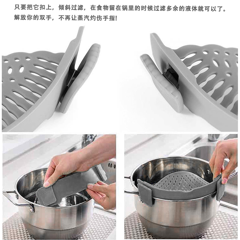 Многофункциональная сливная корзина, кухонный гаджет для дома, силиконовый дренажный стаканчик для края кастрюли, силиконовая корзина-клипса для мытья риса и овощей.