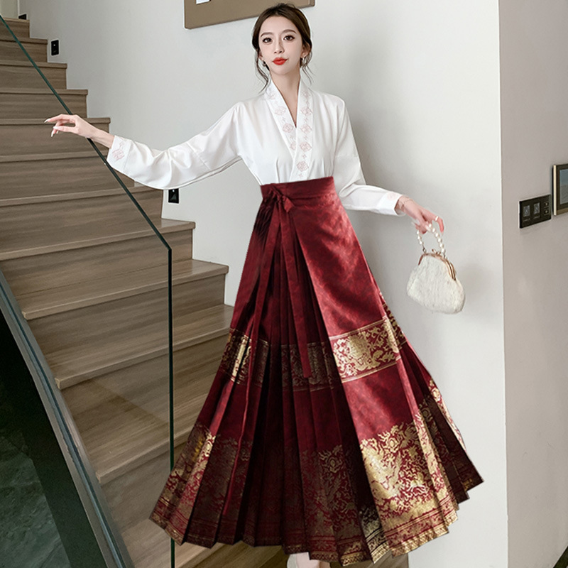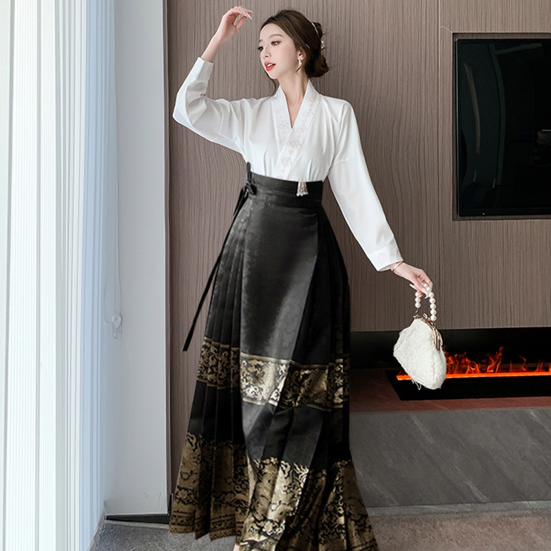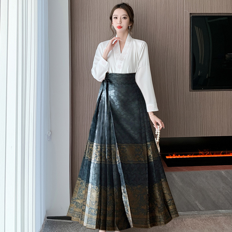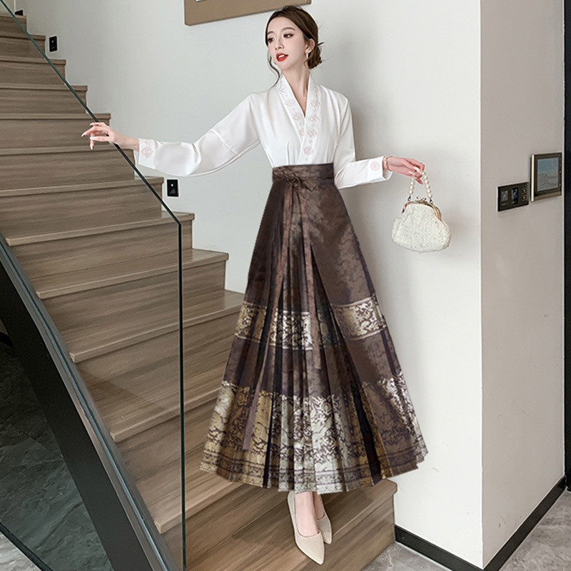 Новая улучшенная юбка мамиан в китайском стиле для женщин 2025 года, весна, осень, лето, миниатюрная плиссированная юбка-миди в национальном стиле с высокой талией