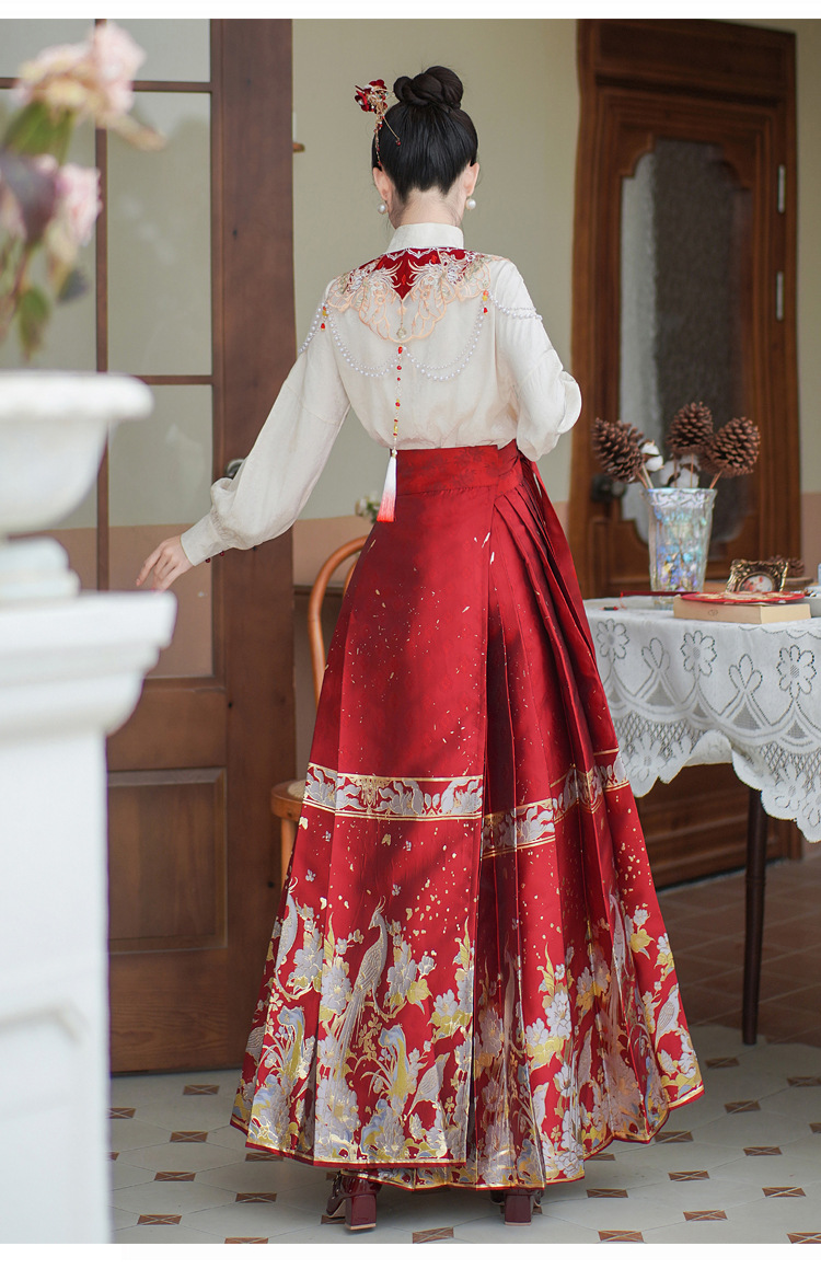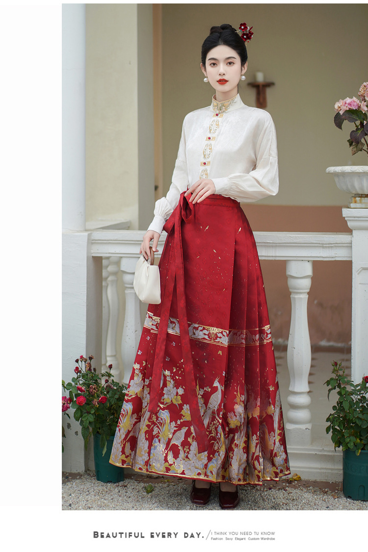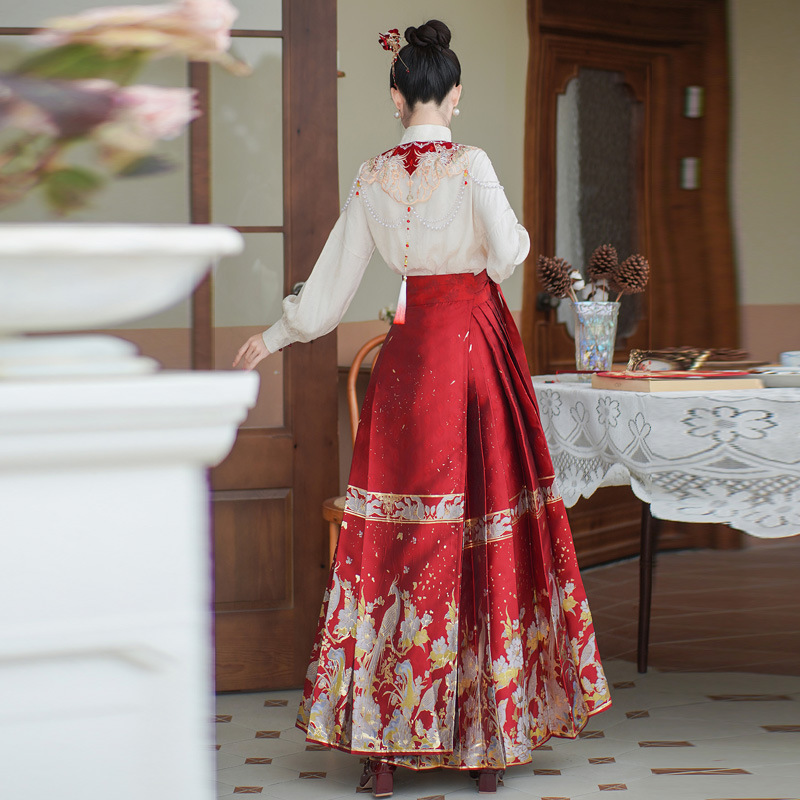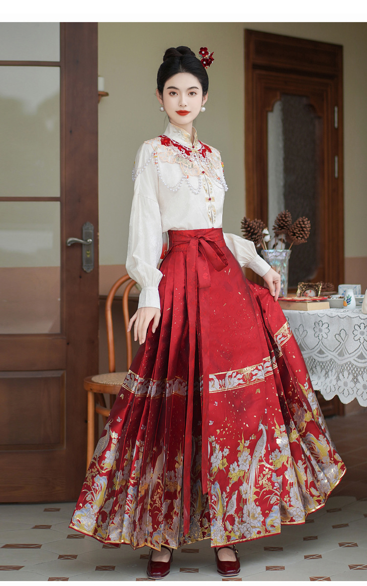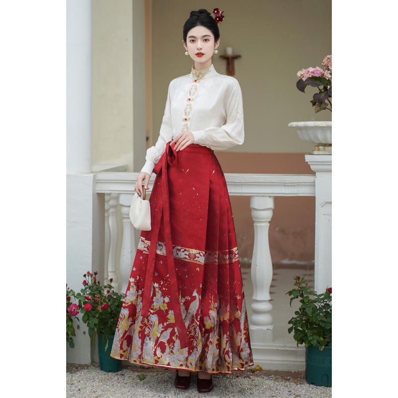 Новая китайская тяжелая промышленная вышивка павлин плетет золотую юбку с конским лицом в китайском стиле
