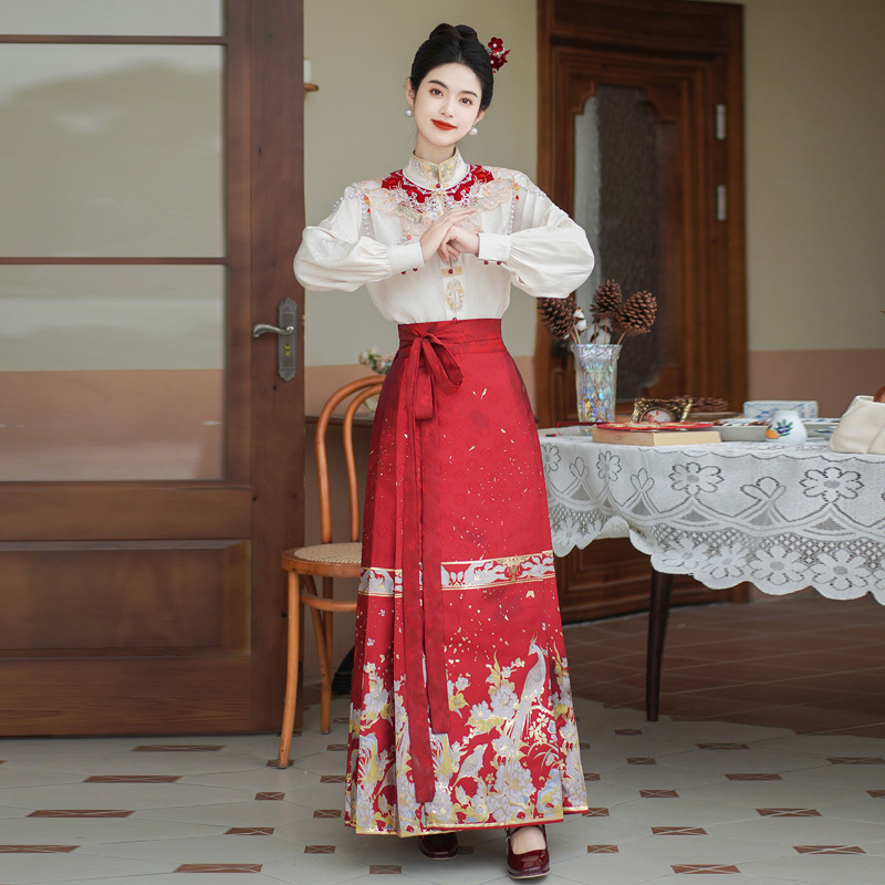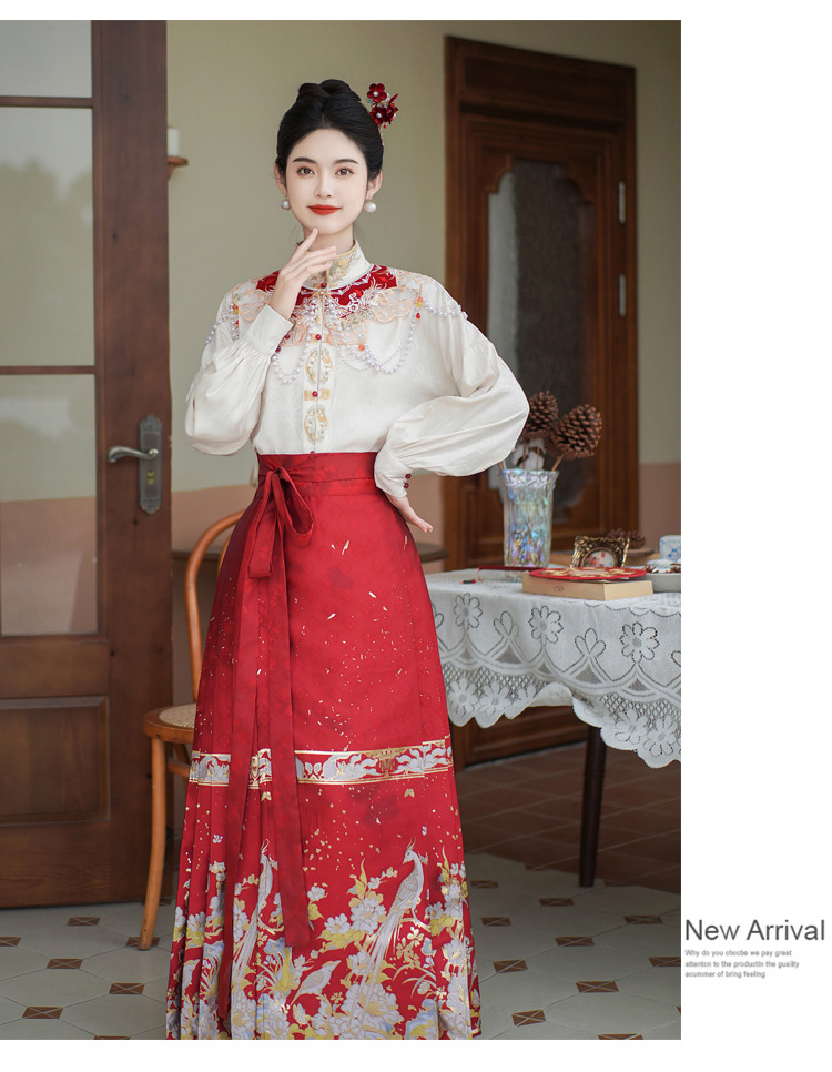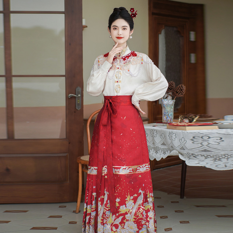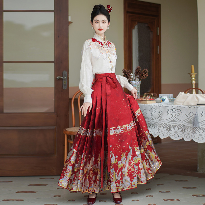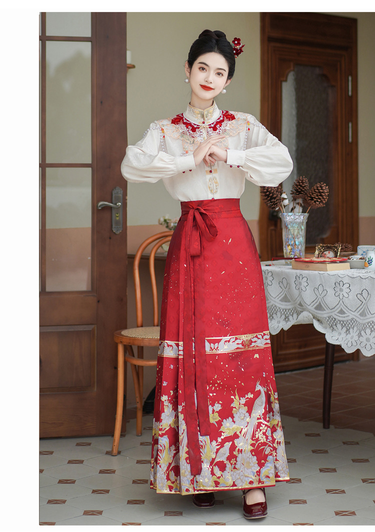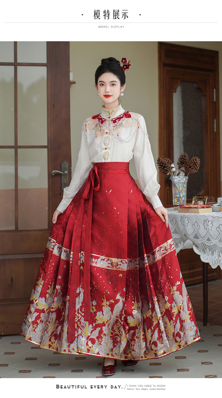 Новая китайская тяжелая промышленная вышивка павлин плетет золотую юбку с конским лицом в китайском стиле