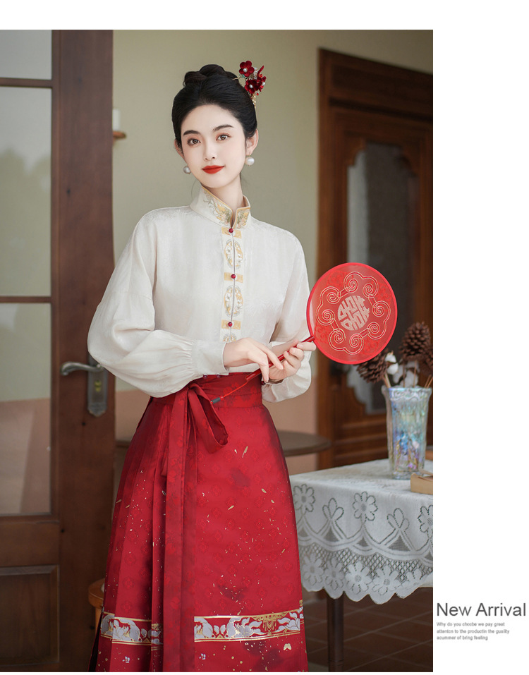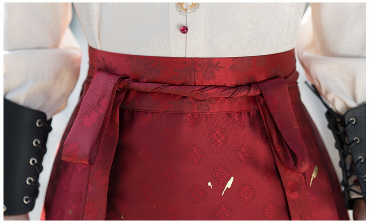 Напястья; Абрикосовый топ XY9283; Красная ткацкая золотая юбка с лапшой XY9283