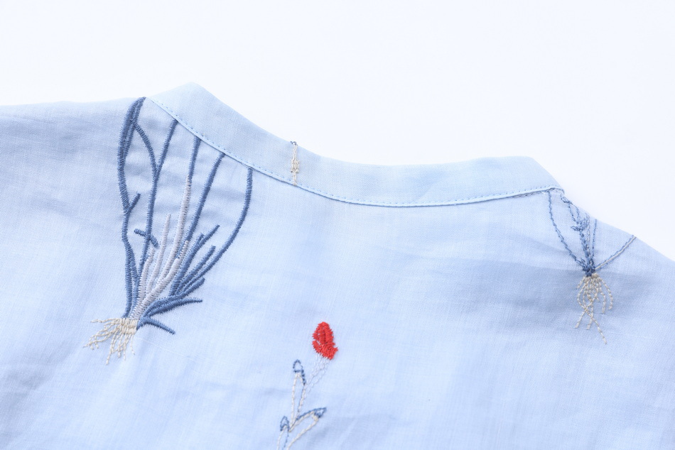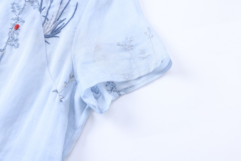 Водная синяя вышивка (короткий рукав); Водная синяя вышивка (рукав до локтя)