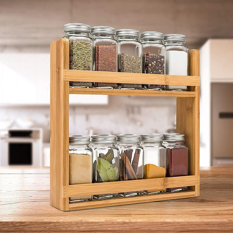 Кухонная стойка для хранения бутылок для приправ, многофункциональная двухслойная небольшая полка, стеллаж для хранения приправ из цельного дерева без перфорации