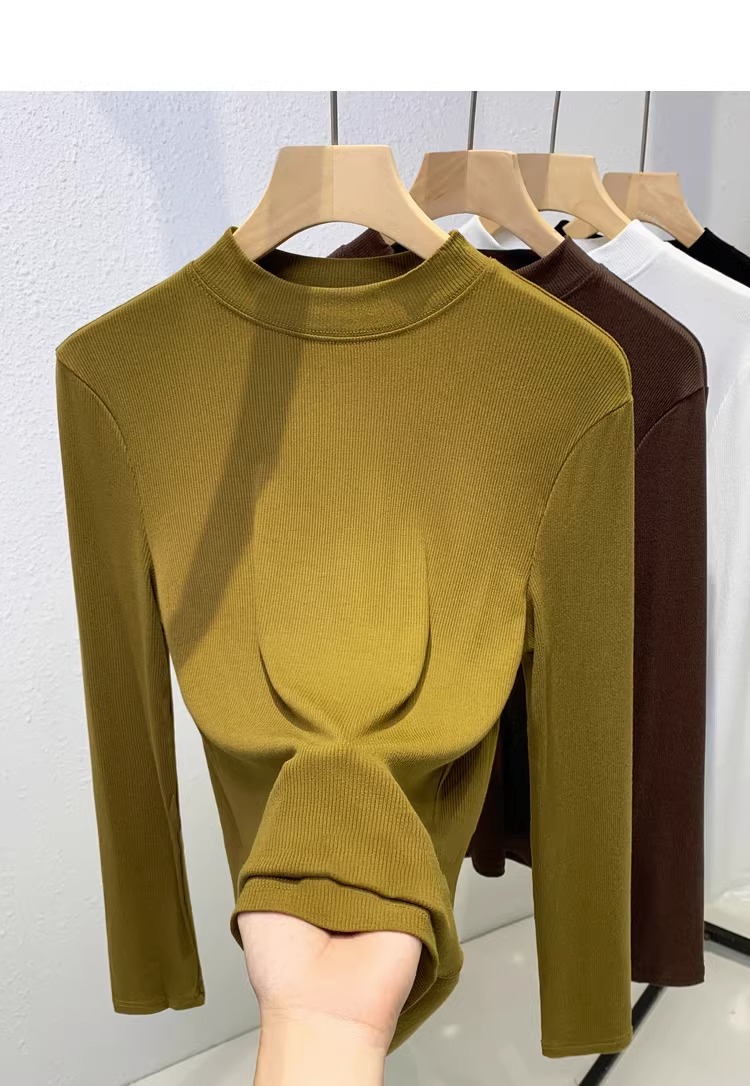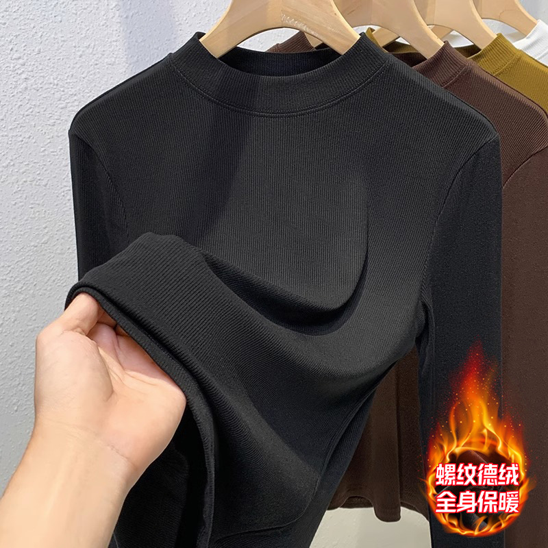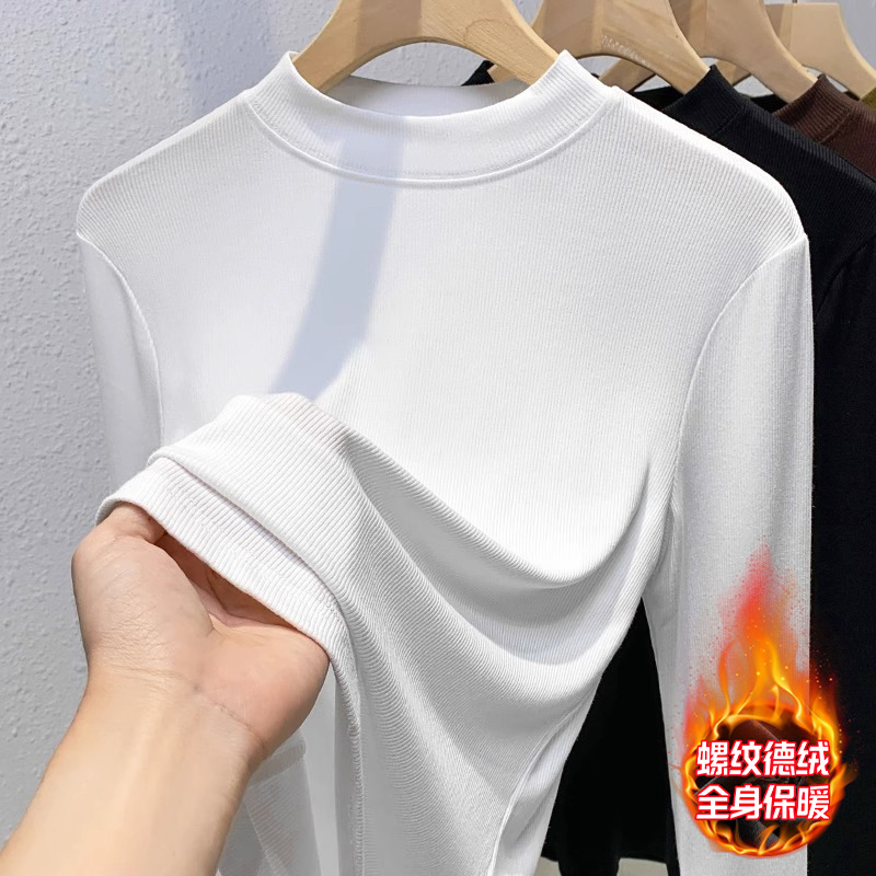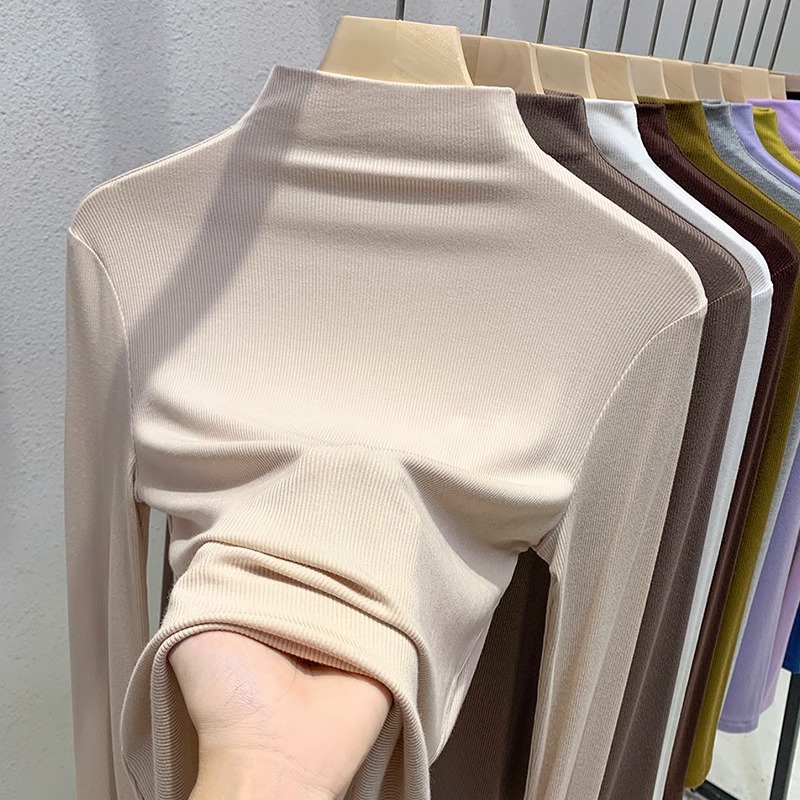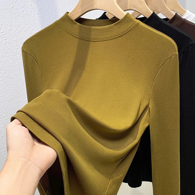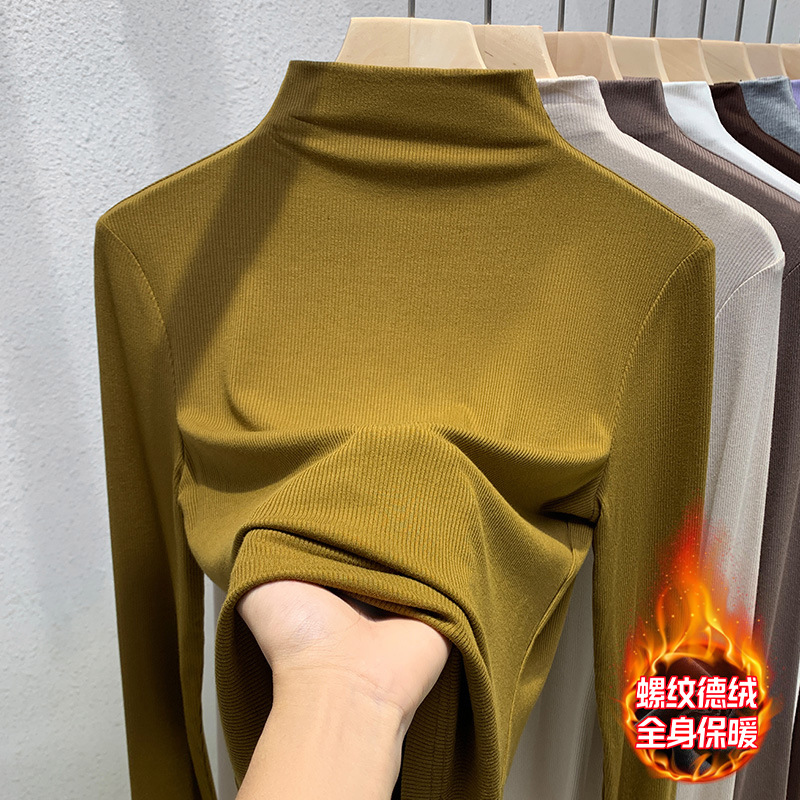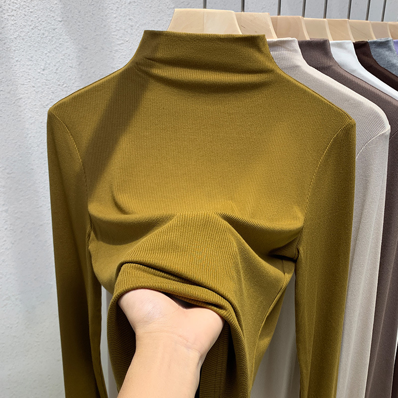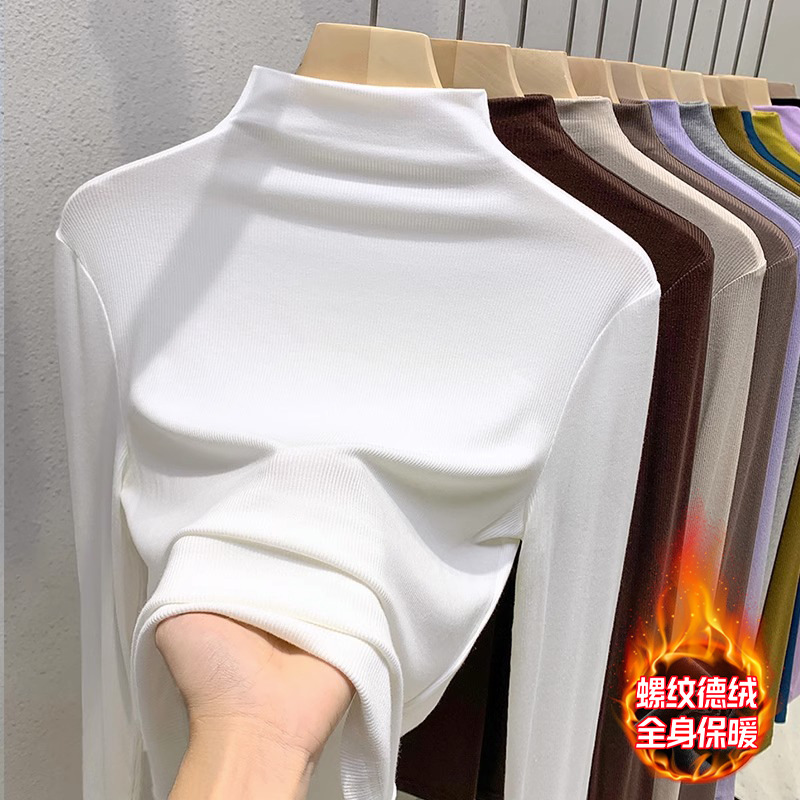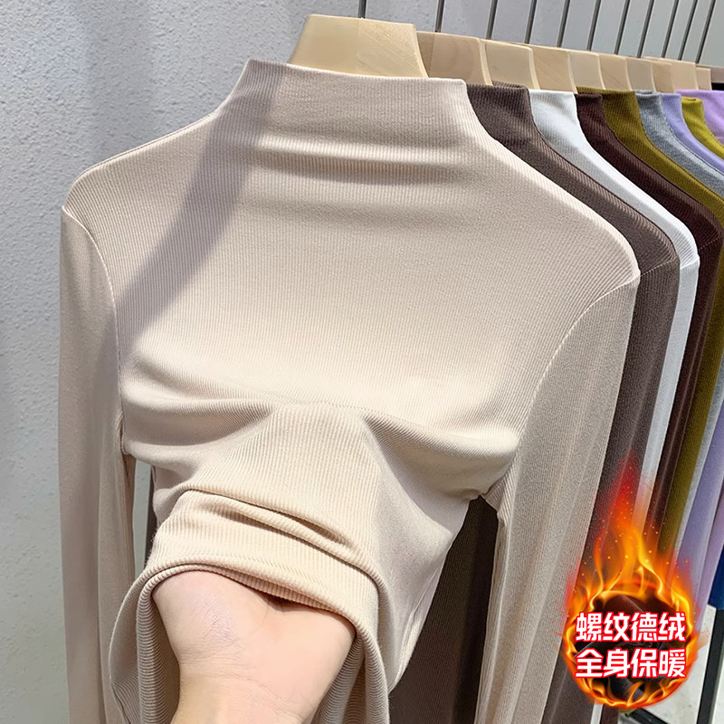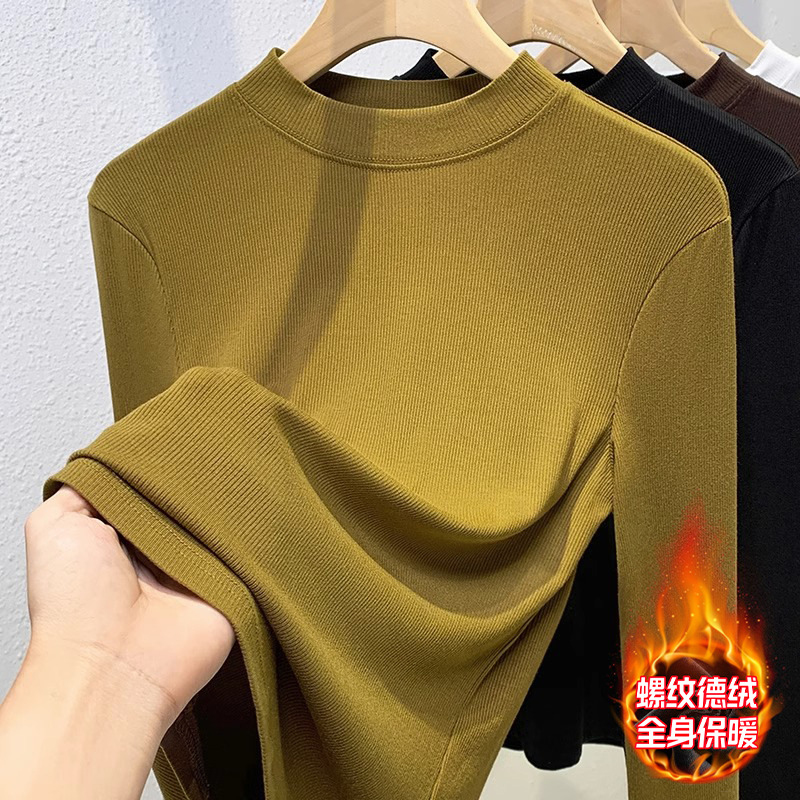 Маленькая женская рубашка со стоячим воротником на весну, осень и зиму Новая нить внутренний теплый топ плюс размер верхняя одежда футболка с длинным рукавом