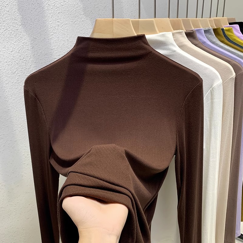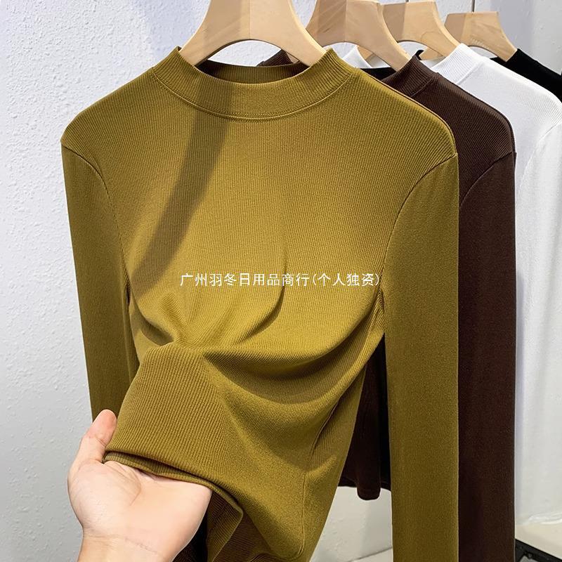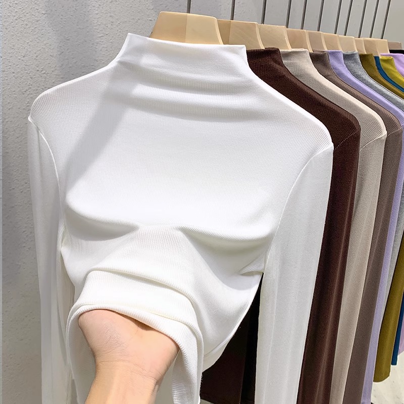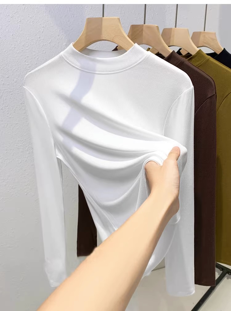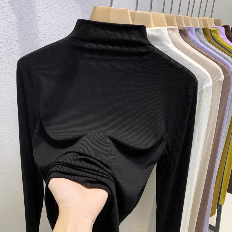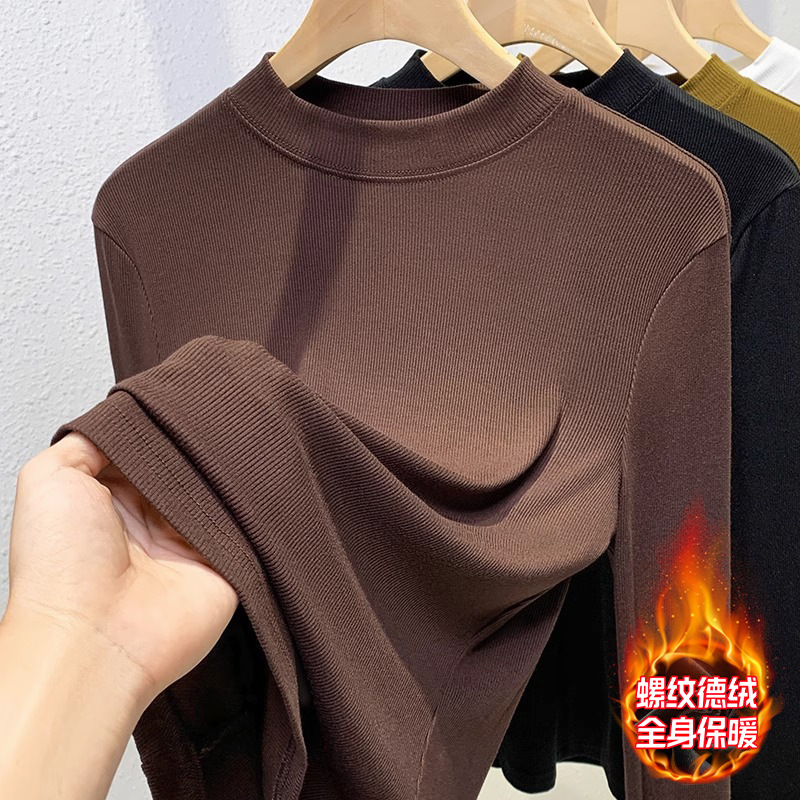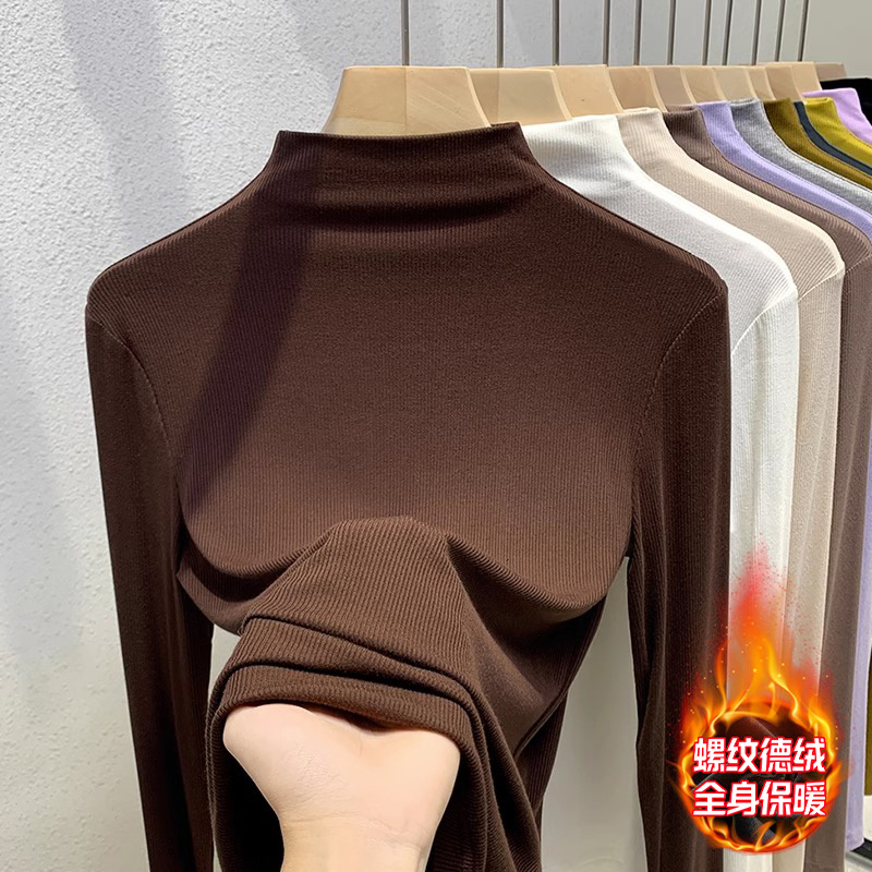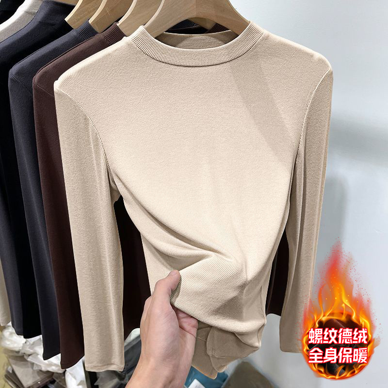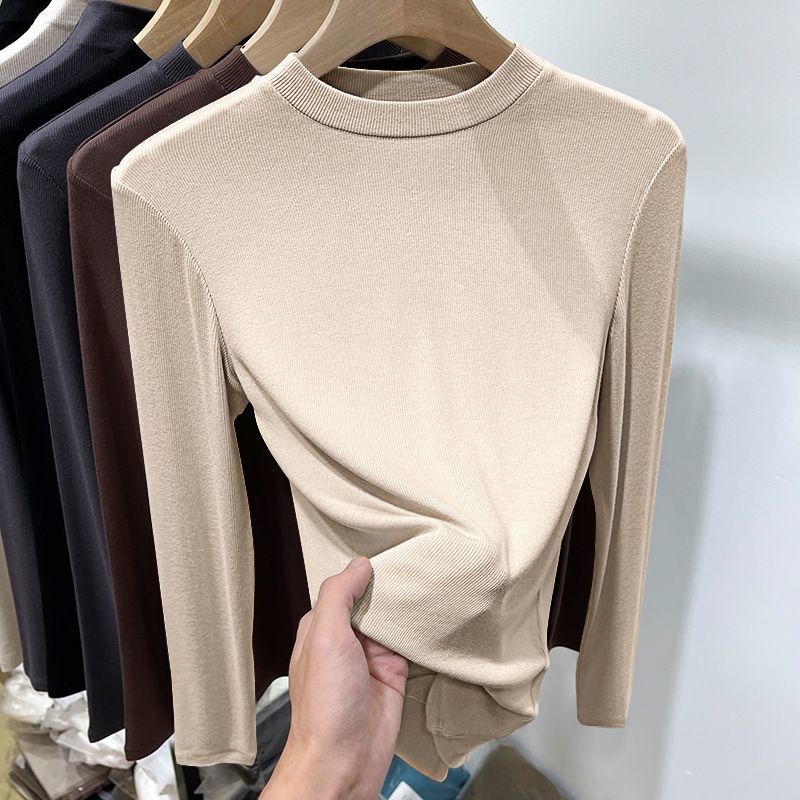Маленькая женская рубашка со стоячим воротником на весну, осень и зиму Новая нить внутренний теплый топ плюс размер верхняя одежда футболка с длинным рукавом