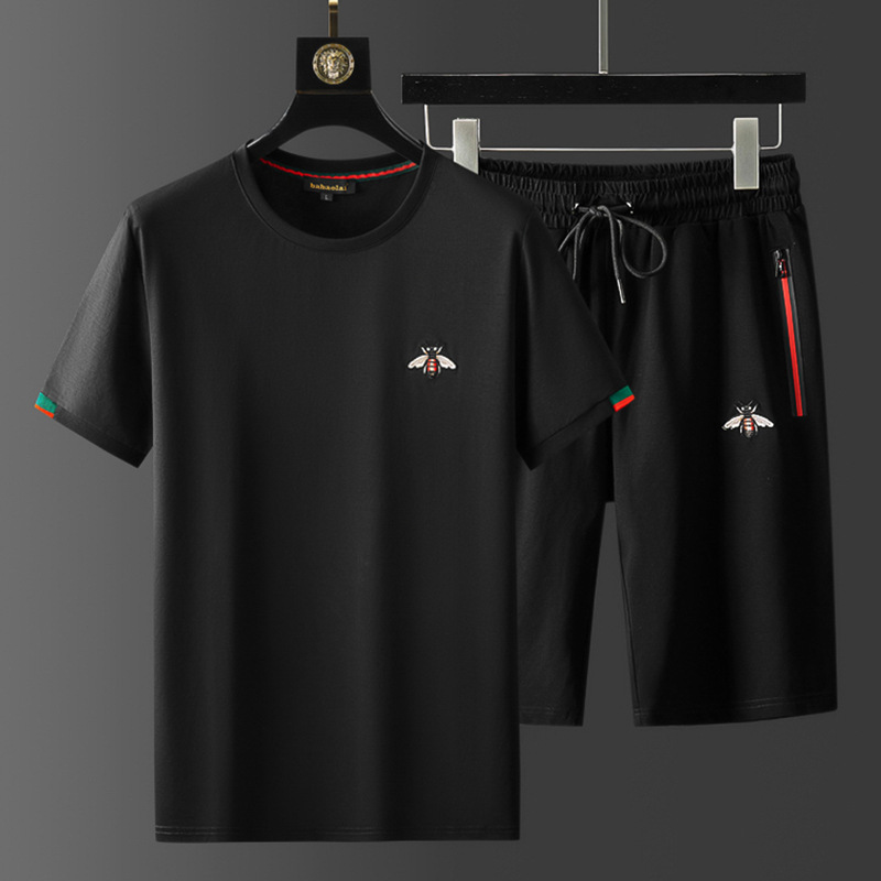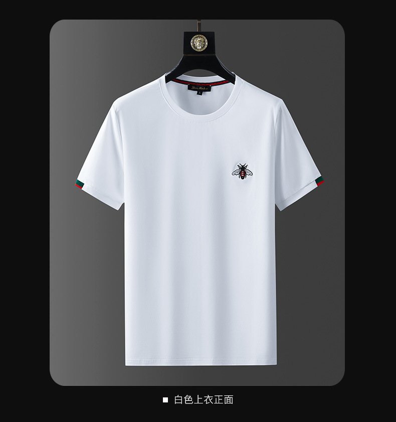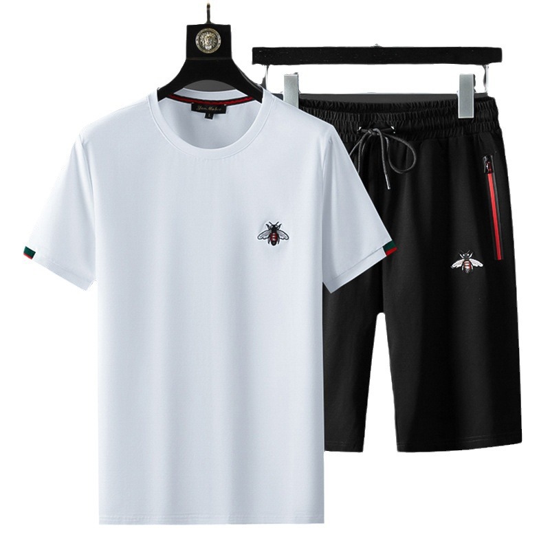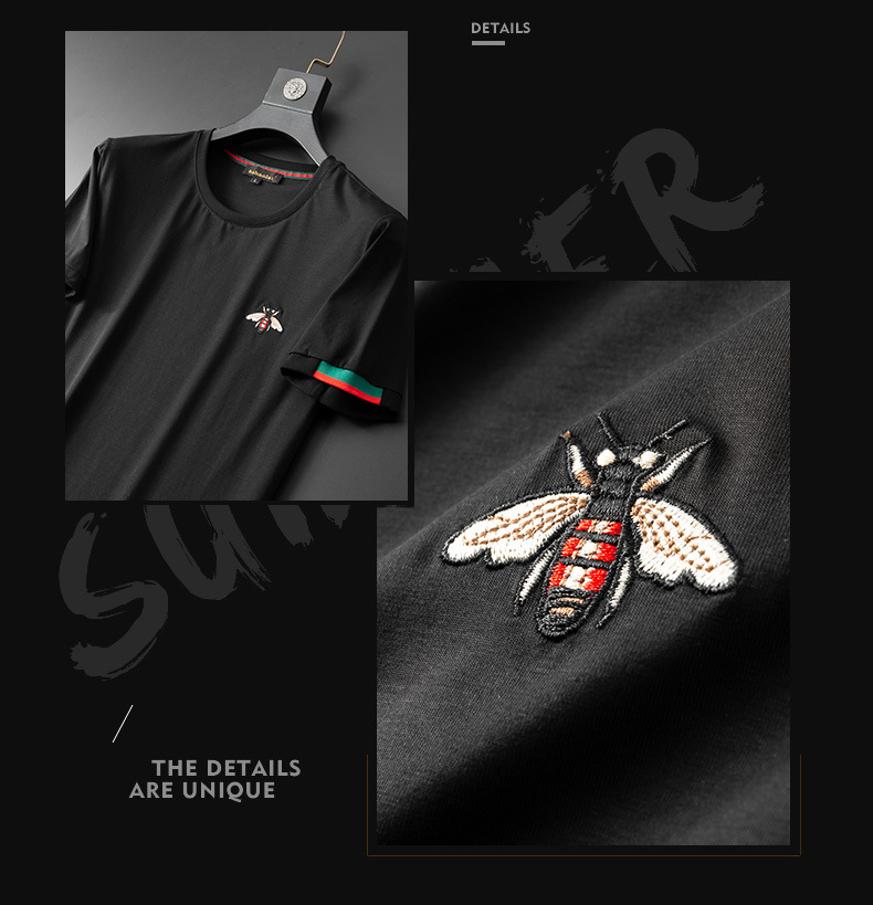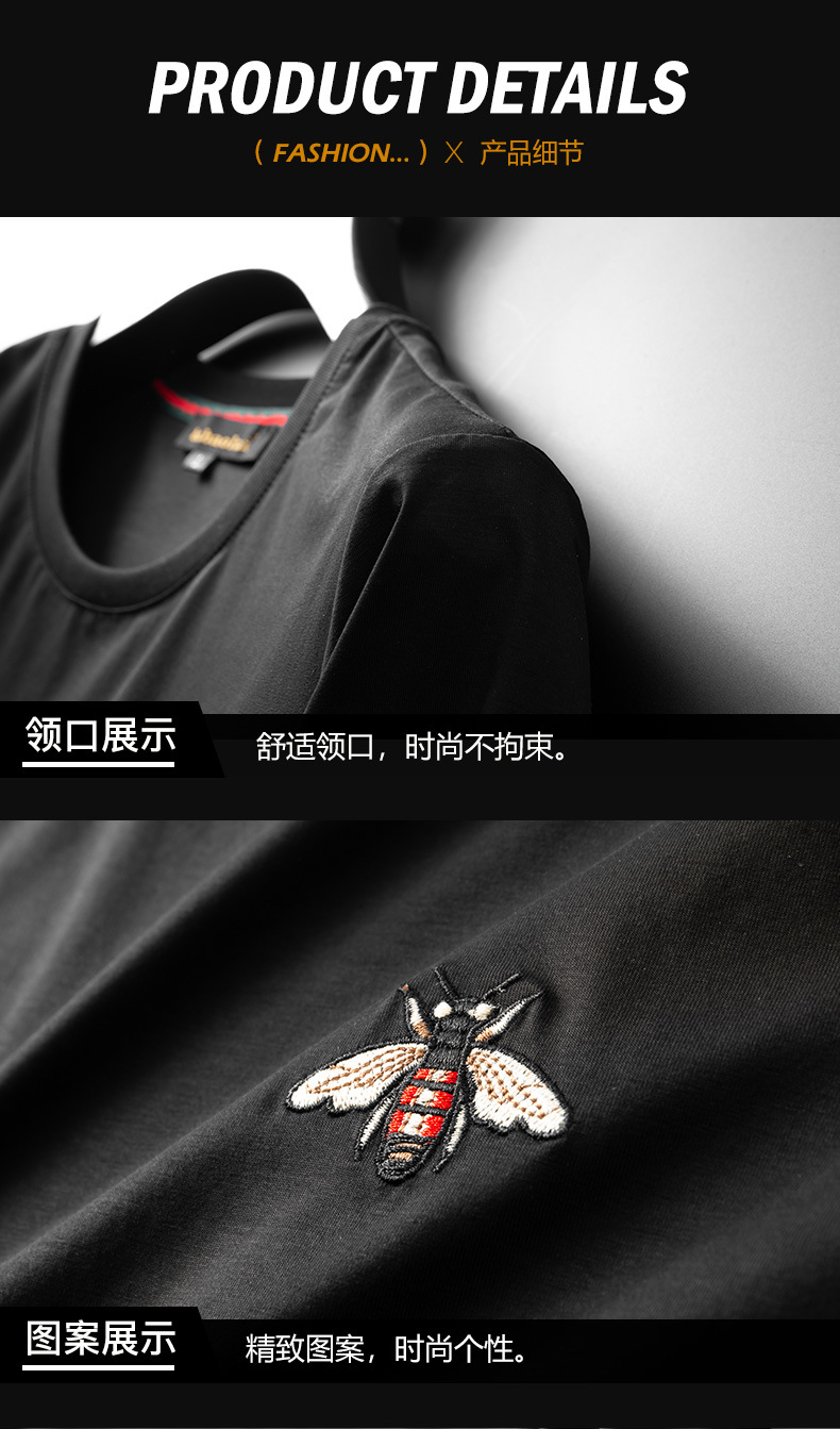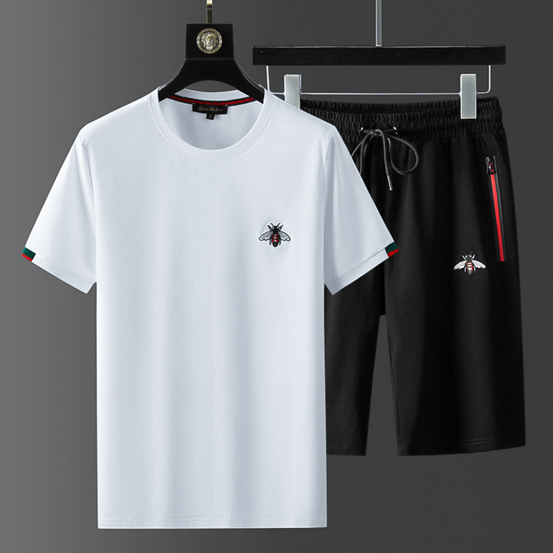 Лето 2024, новый европейский стиль, костюм из двух предметов с вышивкой пчелы, мужская футболка с короткими рукавами, свободные шорты, модный бренд, элегантный