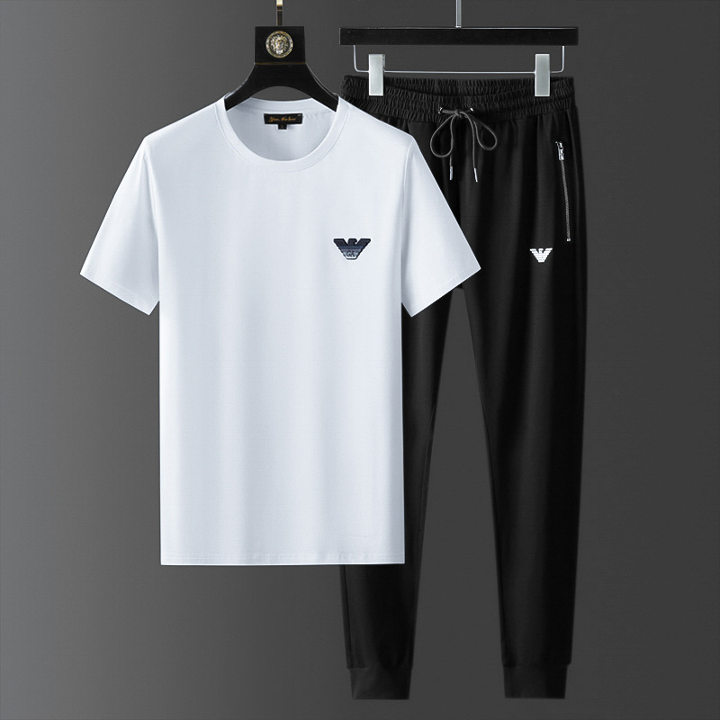 Европейские стационарные роскошные стильные мужские летние костюмы для спорта и отдыха, мужские тонкие модные брендовые флокированные комплекты из двух предметов с короткими рукавами