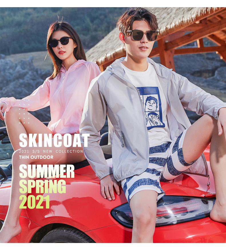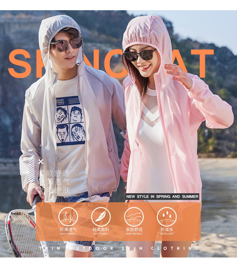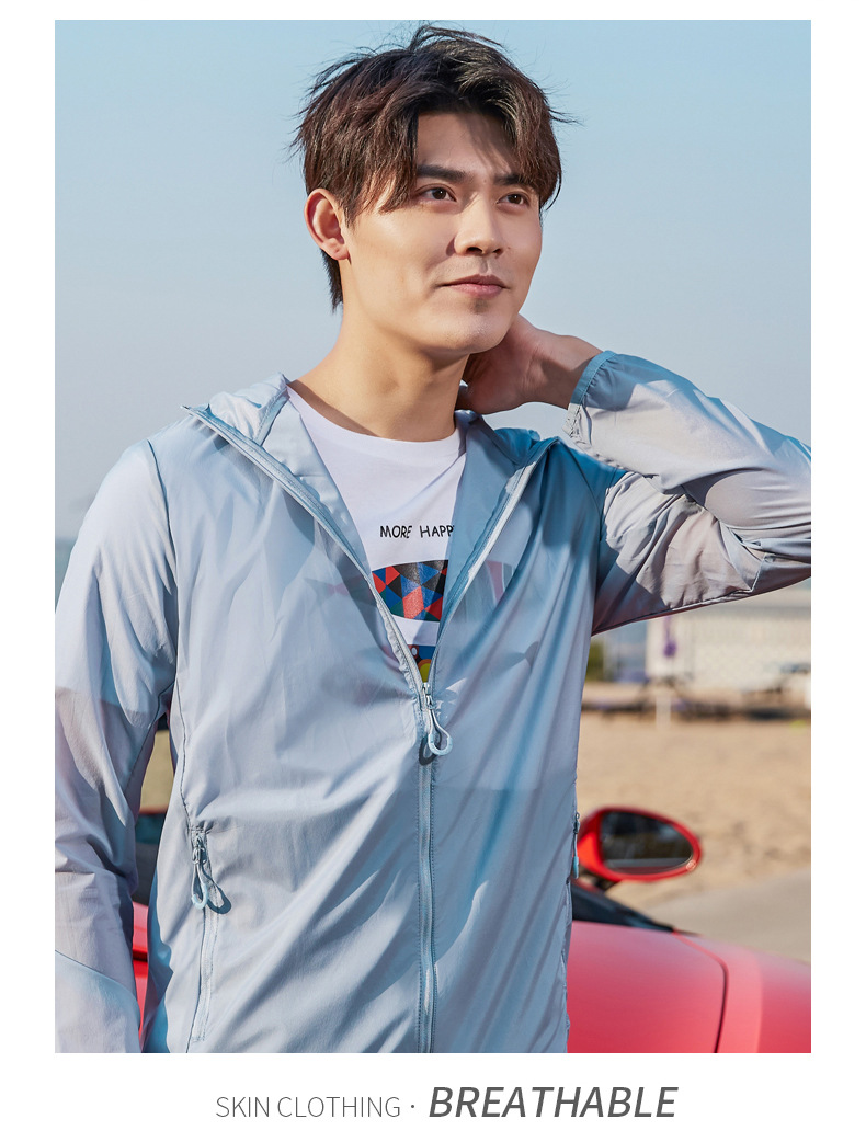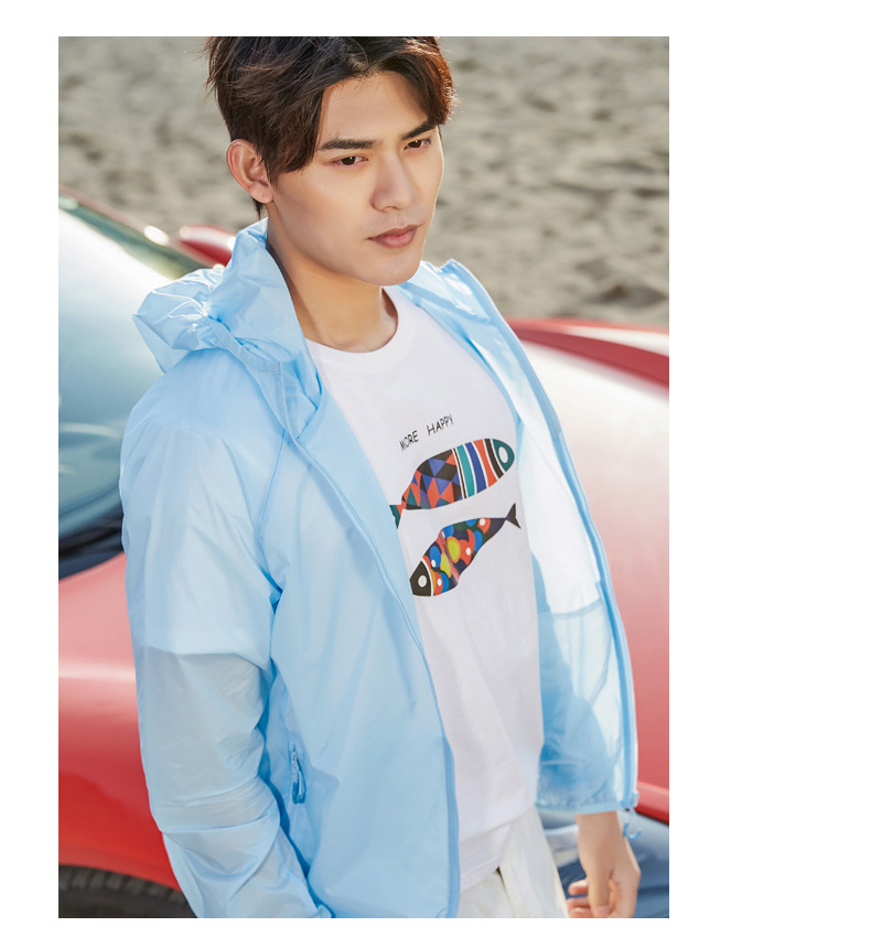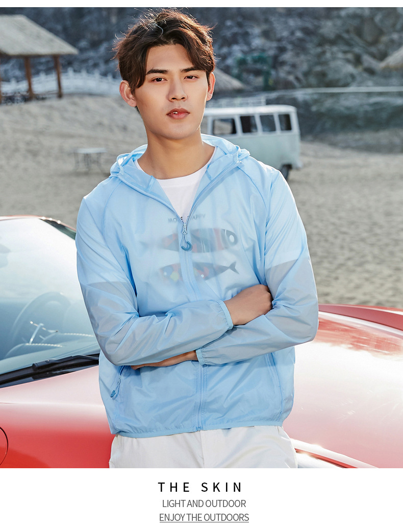 Пара Солнцезащитная одежда UPF50 + летняя одежда с капюшоном со светоотражающей полосой холодная дышащая кожа одежда банан напуган в том же стиле легкий и тонкий