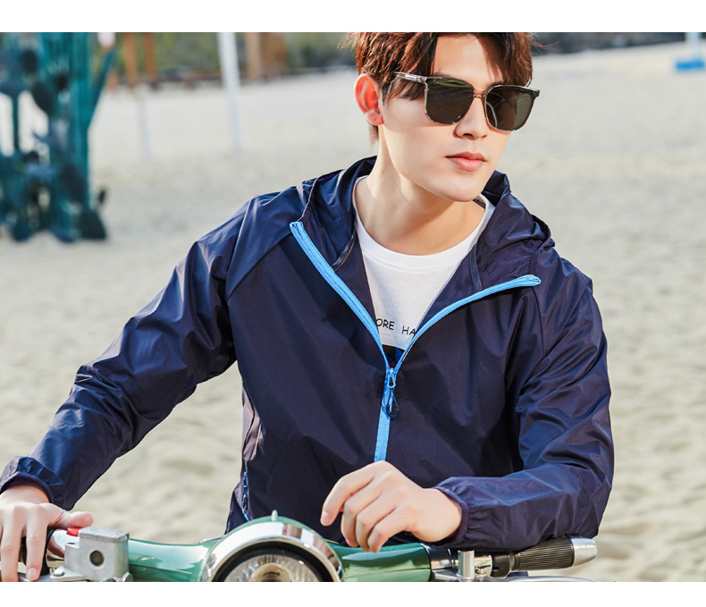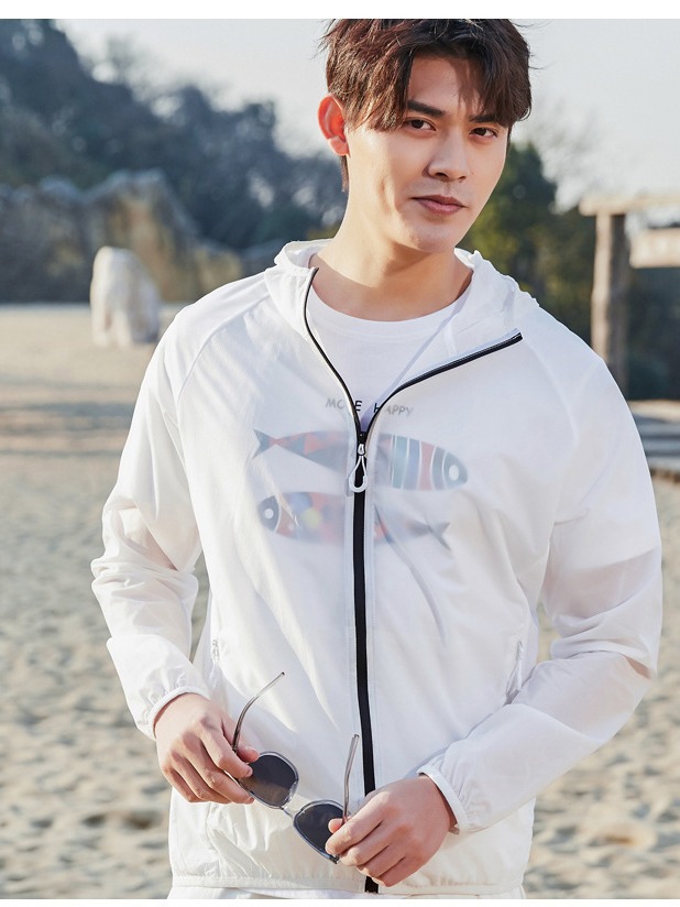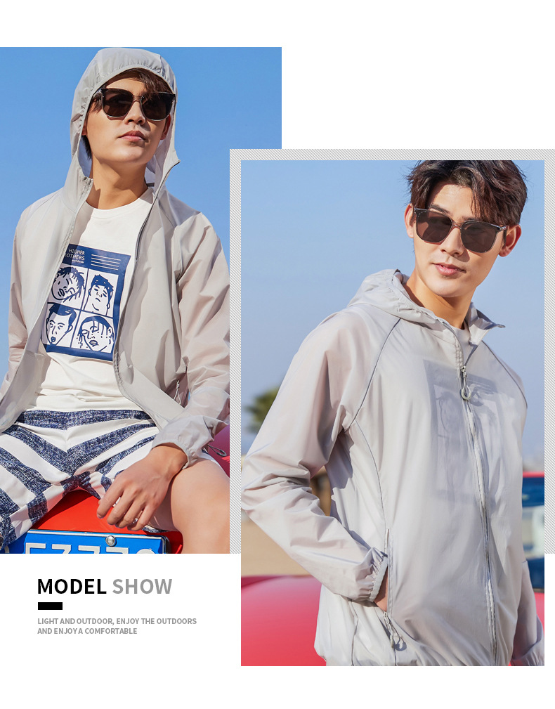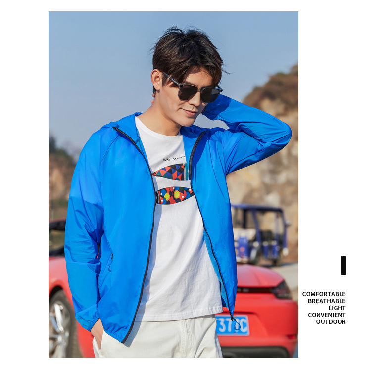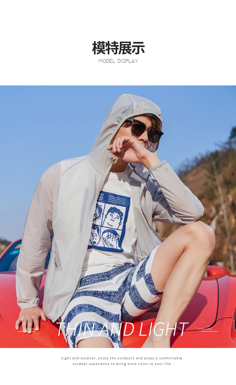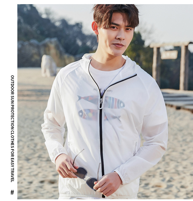 Пара Солнцезащитная одежда UPF50 + летняя одежда с капюшоном со светоотражающей полосой холодная дышащая кожа одежда банан напуган в том же стиле легкий и тонкий