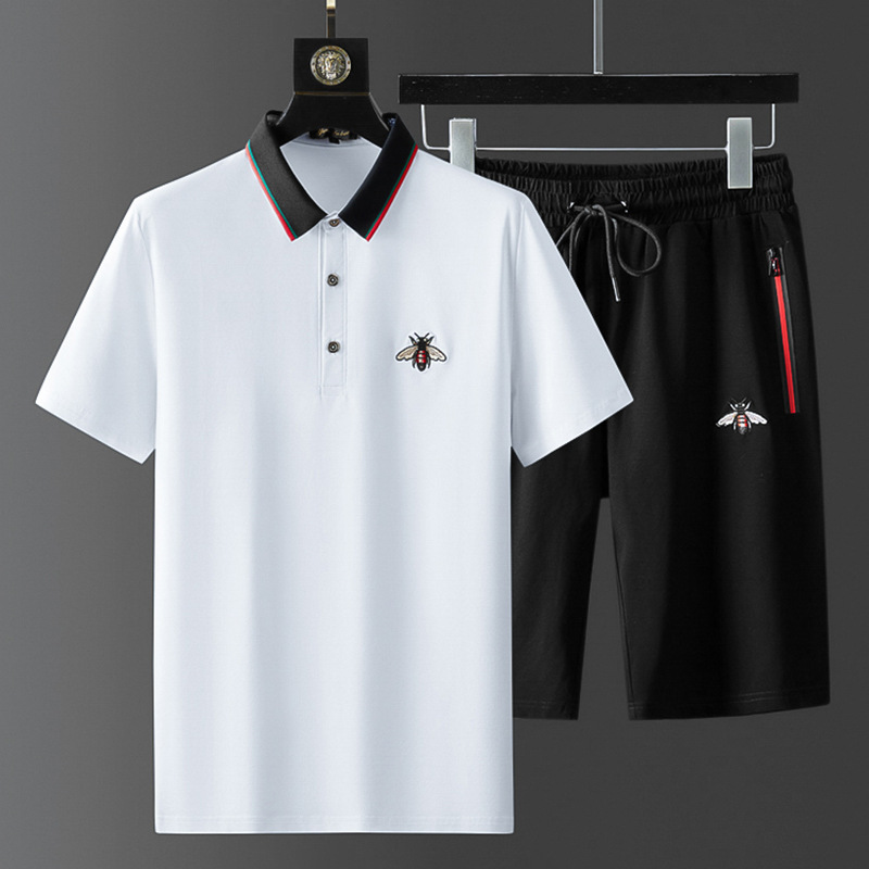 Лето 2023, мужская модная европейская станция, европейская маленькая пчелка с вышивкой, мужская футболка с короткими рукавами, шорты, костюм из двух предметов