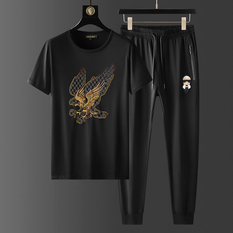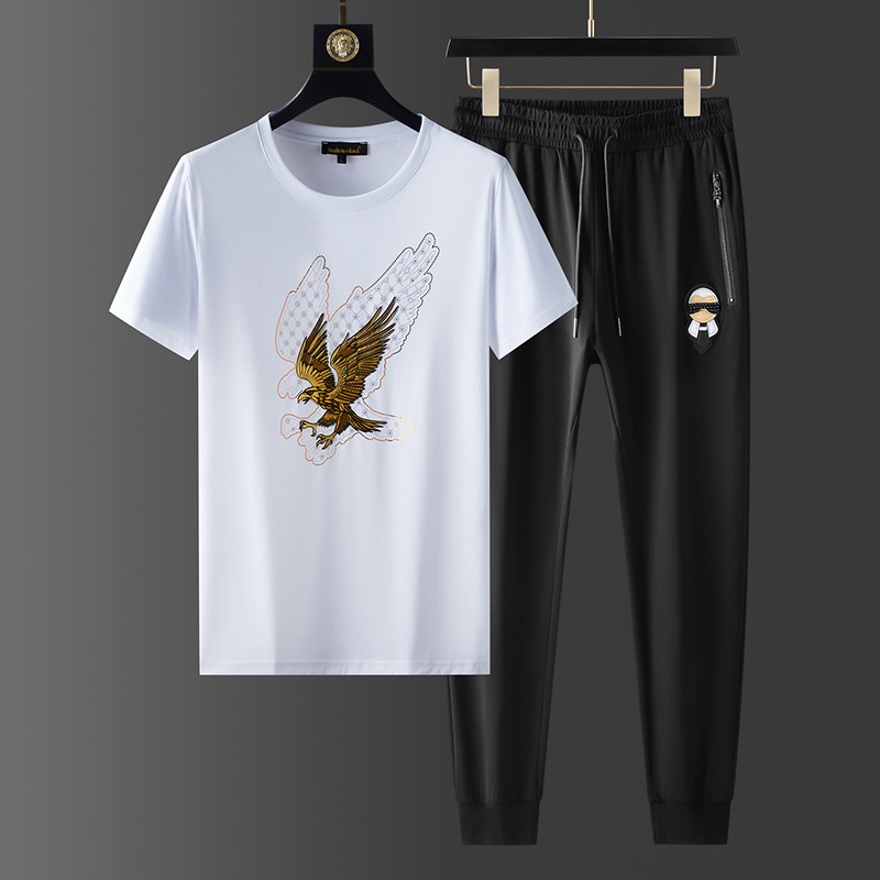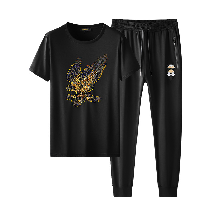 Европейская станция из мерсеризованного хлопка, мужская летняя новая футболка с короткими рукавами, костюм Dapeng, повседневные брюки с горячими бриллиантами, комплект из двух предметов