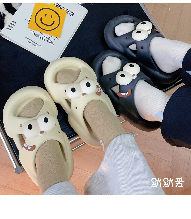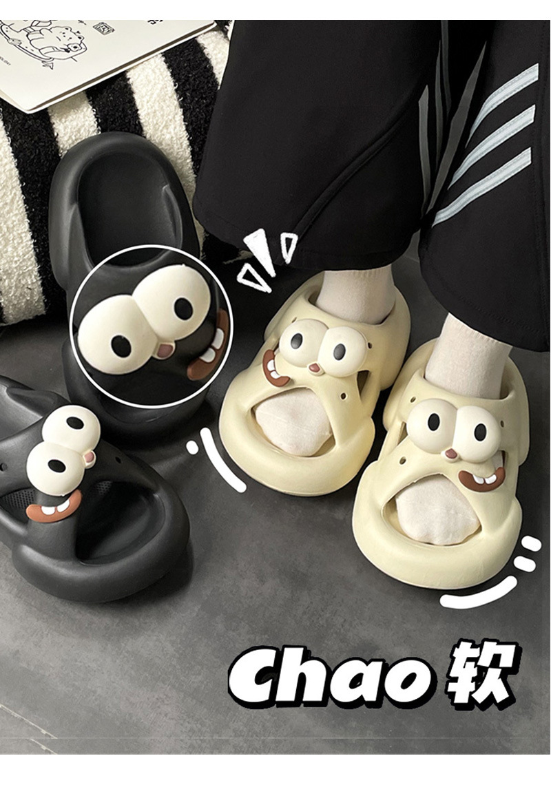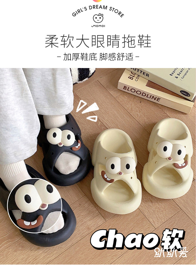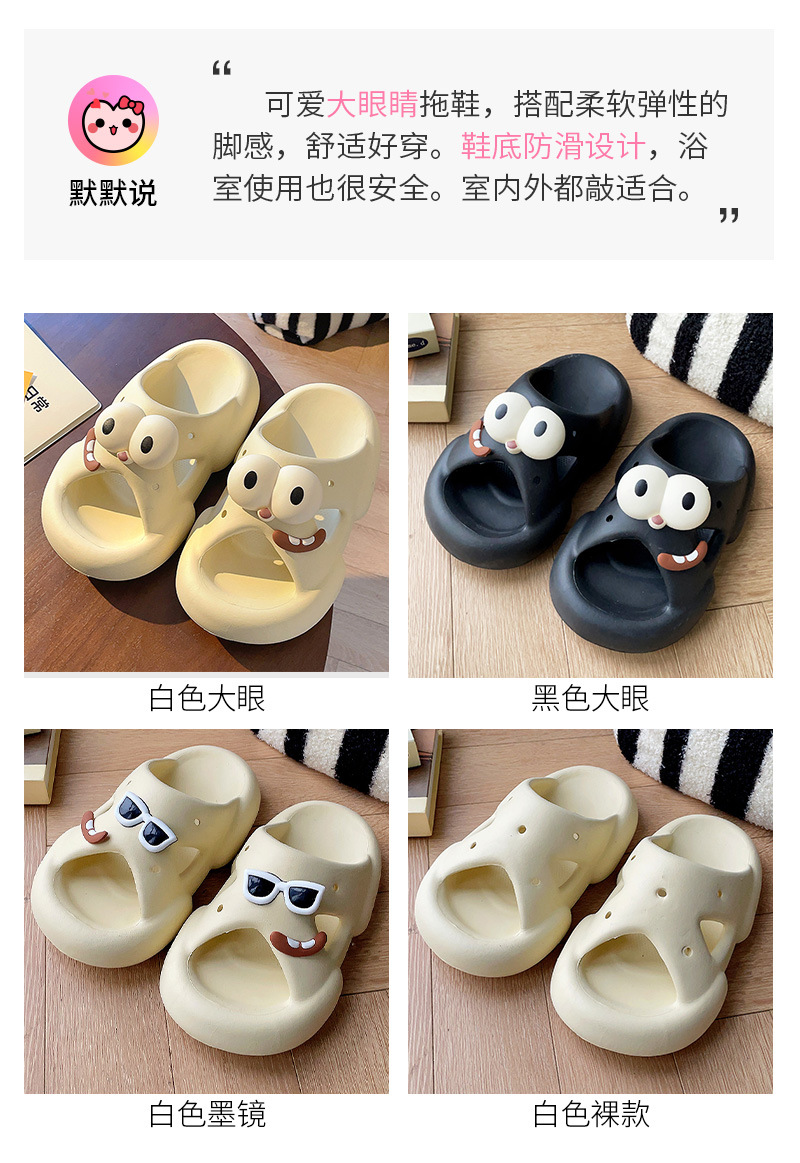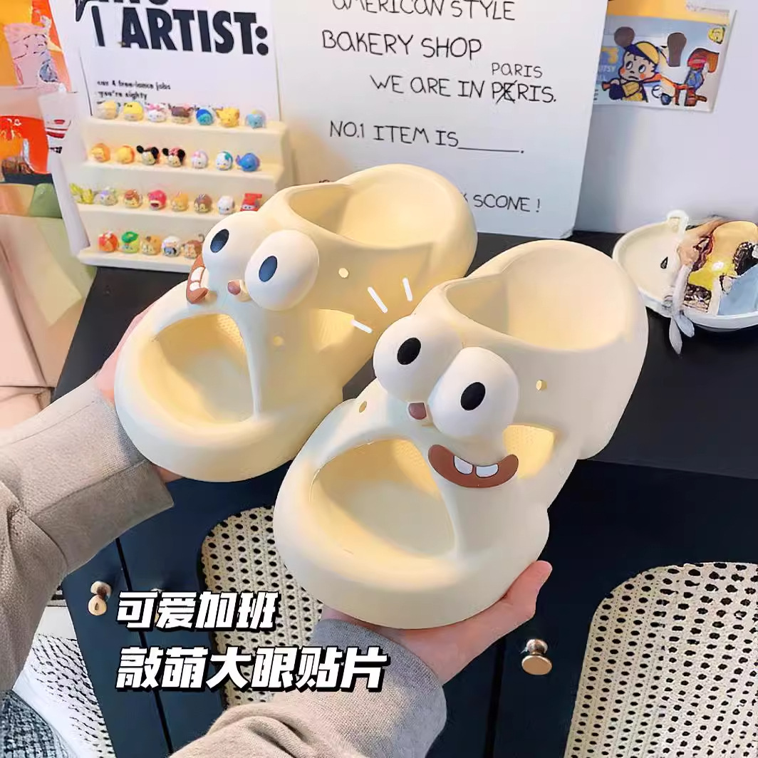 Забавные милые тапочки с большими глазами, Женские Летние слипоны с толстой подошвой, нескользящий дезодорант, домашняя одежда EVA